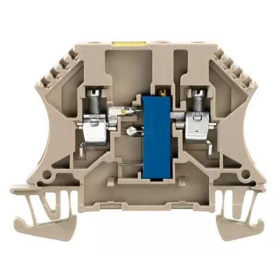 Blok zacisków z elementami elektronicznymi.