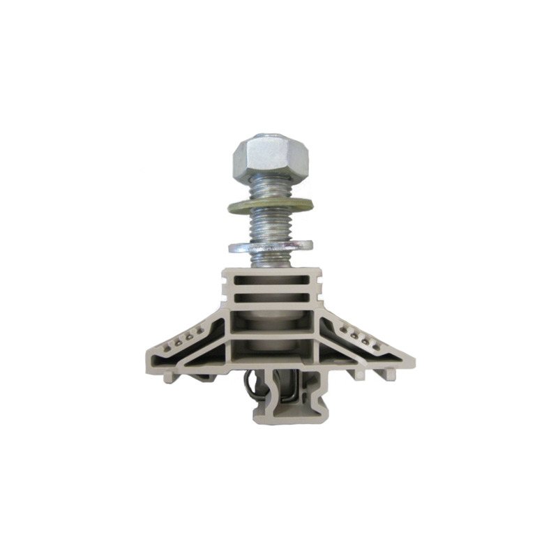 Zaciski dla obecnej transmisji. Przewodnik, który ma zostać podłączony jest zaprasowany z końcówką kablową i przymocowany do gwaintowanej śruby zasicku.