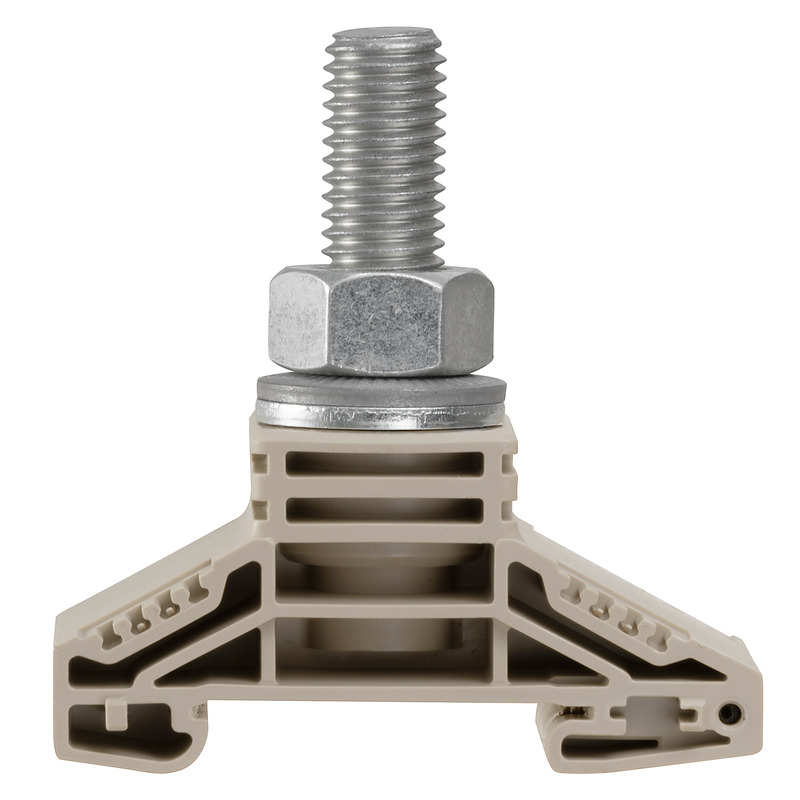 Zaciski dla obecnej transmisji. Przewodnik, który ma zostać podłączony jest zaprasowany z końcówką kablową i przymocowany do gwaintowanej śruby zasicku.