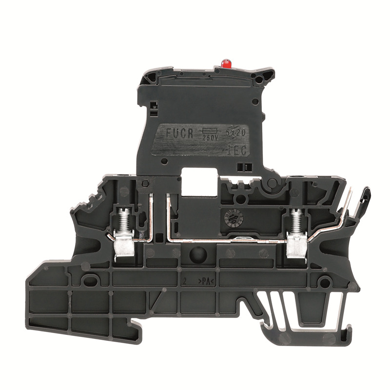 Blok zaciskowy służący do podłączenia lub łączenia przewodników ze stale zabezpieczonym kontaktem. Hartowana stal wytrzyma przeciążenia, miedź powlekana cyną zapewnia najlepsze przewodnictwo. Z wyciąganym nośnikiem na bezpiecznik.