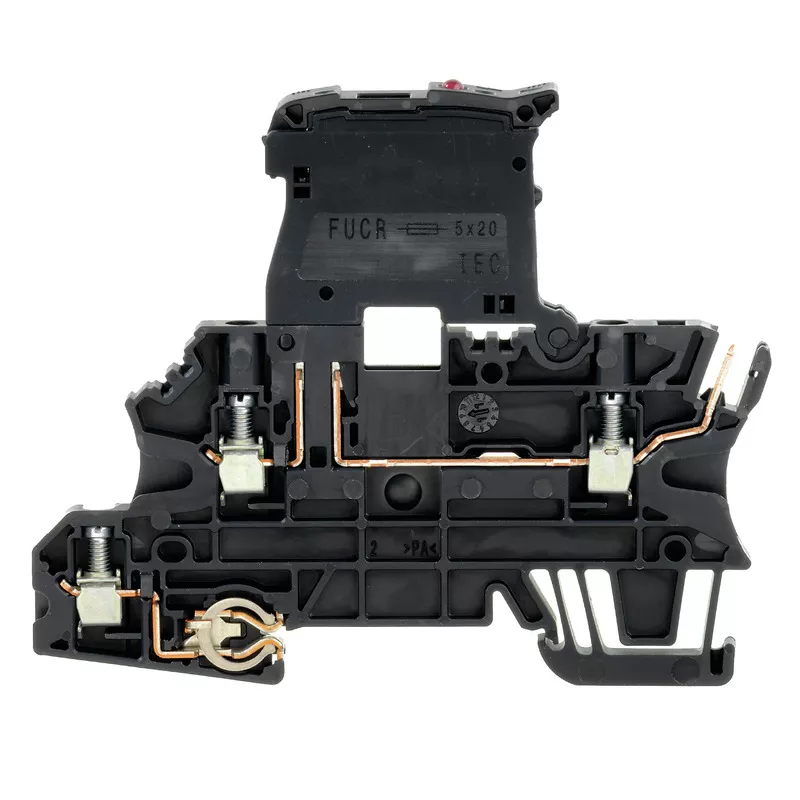 Blok zaciskowy służący do podłączenia lub łączenia przewodników ze stale zabezpieczonym kontaktem. Hartowana stal wytrzyma przeciążenia, miedź powlekana cyną zapewnia najlepsze przewodnictwo. Z wyciąganym nośnikiem na bezpiecznik.
