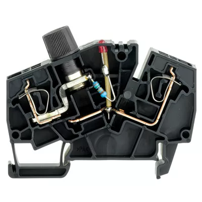 Złączka szynowa z bezpiecznikiem