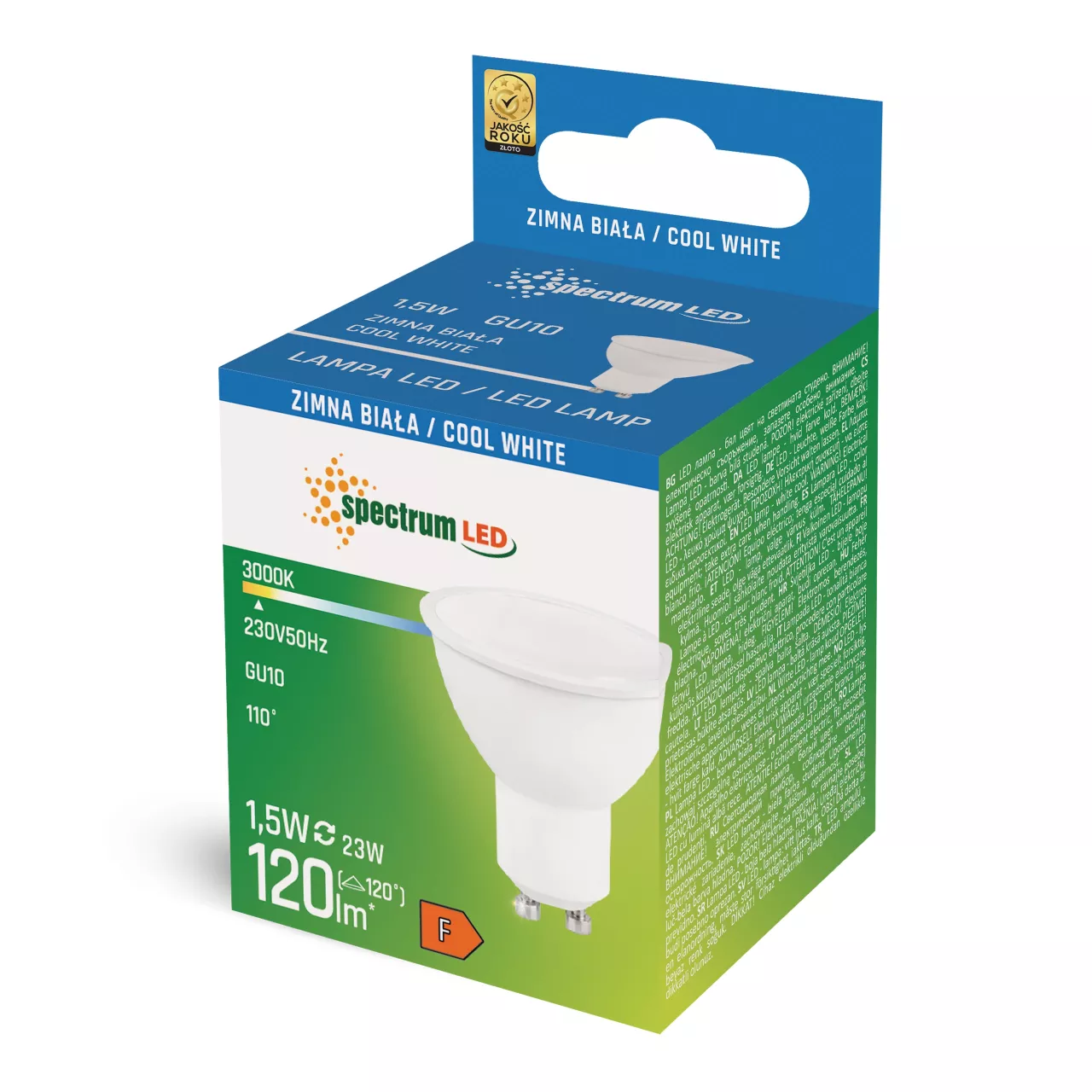 LED GU10 230V 1.5W SMD CW z MATOWĄ SZYBKĄ SPECTRUM