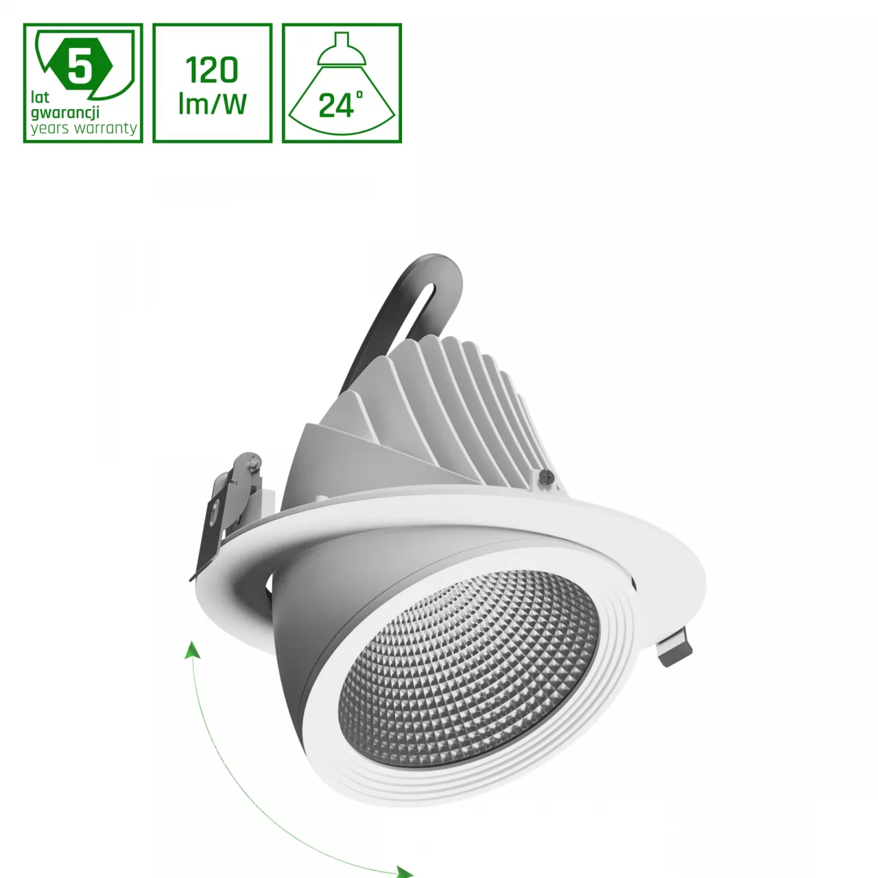 Parametr Wartość Moc 19 W Prąd znamionowy 90 mA Napięcie wejściowe 230 V Częstotliwość 50HZ Hz Limeny 1520 lm Kolor światła WW Wymiary A x B x C 187x150 mm Kąt światła 24 ° Klasa EEI EPREL F Klasa IP IP20 Długość życia 50000 h Gwarancja 5 y Zakres temperatur -20/+40 °C Materiał ALUMINIUM Możliwość ściemniania OPC Kolor BIAŁY Otwór montażowy O175 mm Zastosowanie WEW Dołączone źródło zasilania + Temperatura barwowa 3000 K Oprawa zawiera źródło światła + Klasa ochrony II Sposób montażu PODTYNKOWY Box length 200 mm Box width 200 mm Box height 170 mm Useful luminous flux 2280 lm Useful luminous flux angle 360 °