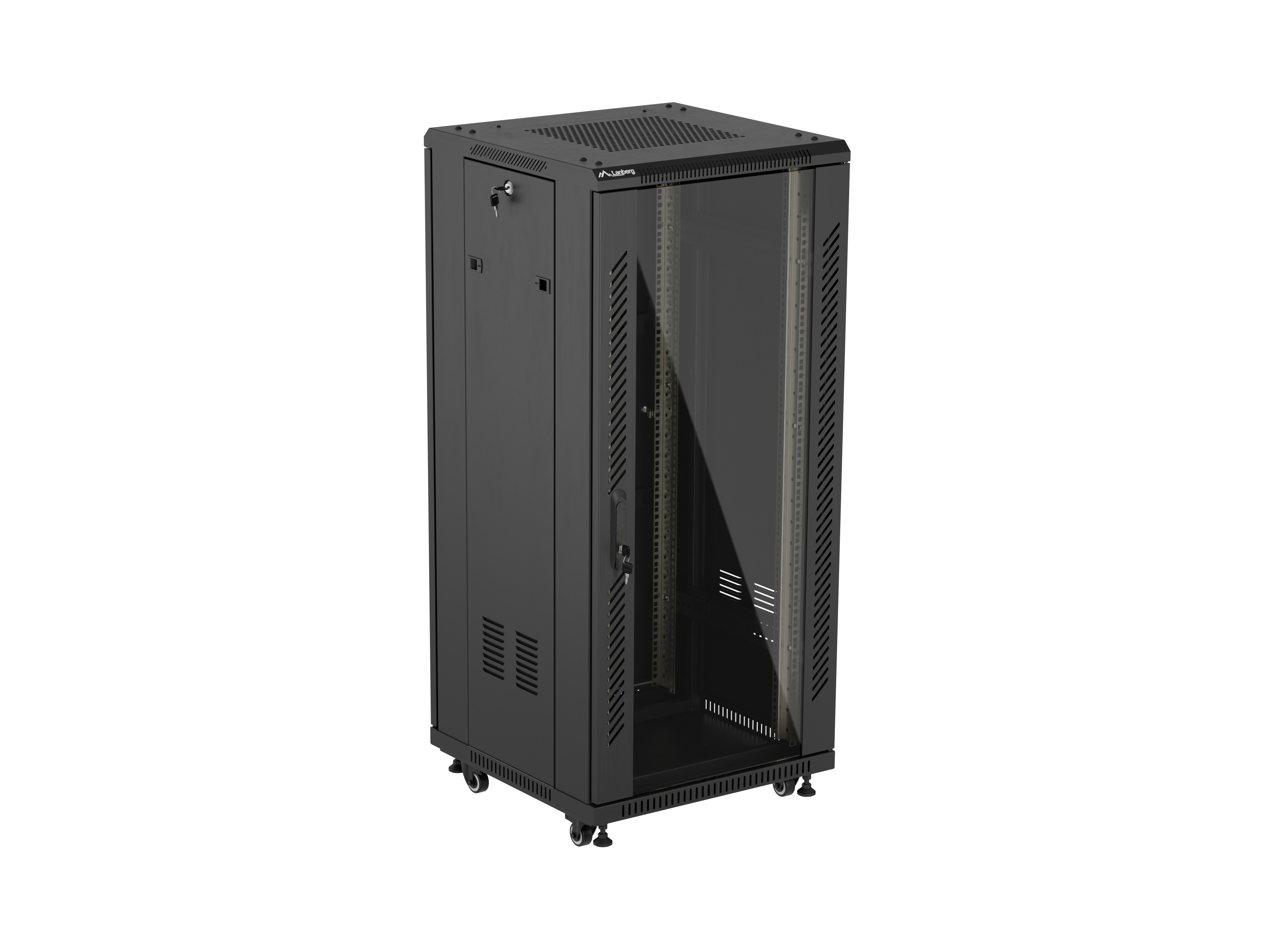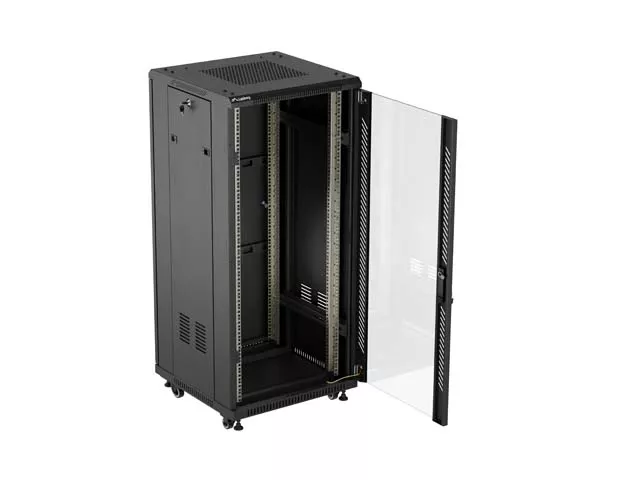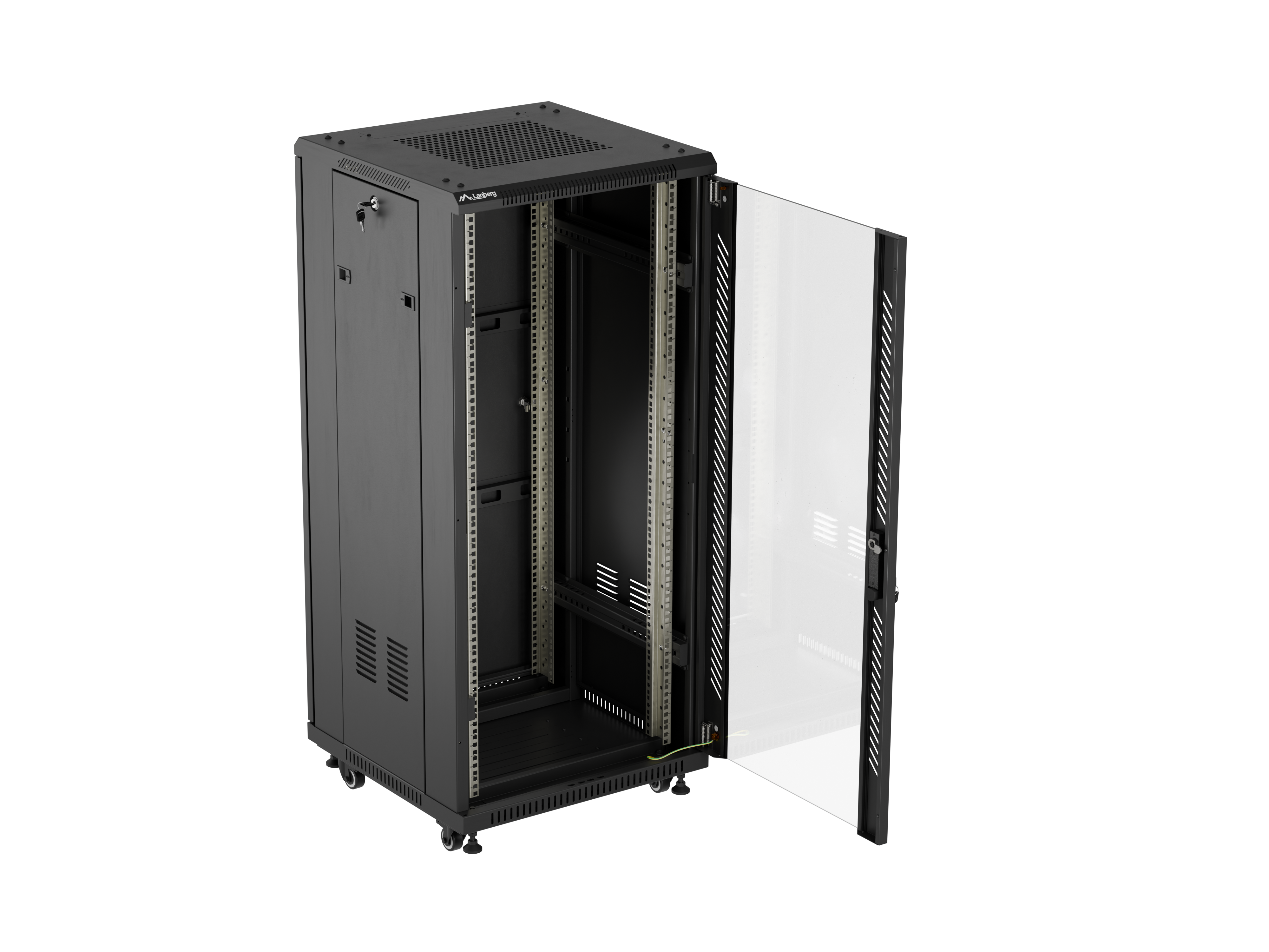 SZAFA INSTALACYJNA RACK STOJĄCA 19" 27U 600X600 CZARNA DRZWI PRZESZKLONE LANBERG (FLAT PACK)