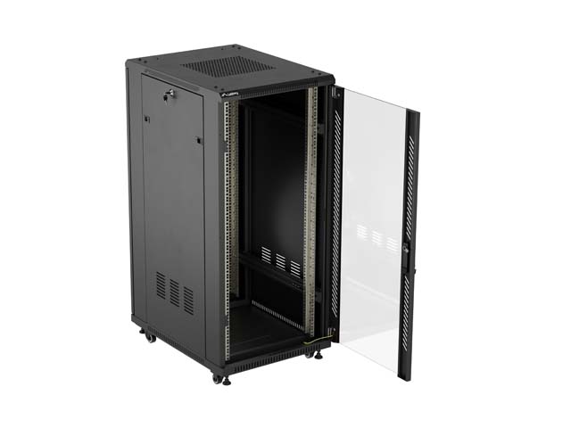 SZAFA INSTALACYJNA RACK STOJĄCA 19" 27U 600X800 CZARNA DRZWI PRZESZKLONE LANBERG (FLAT PACK)
