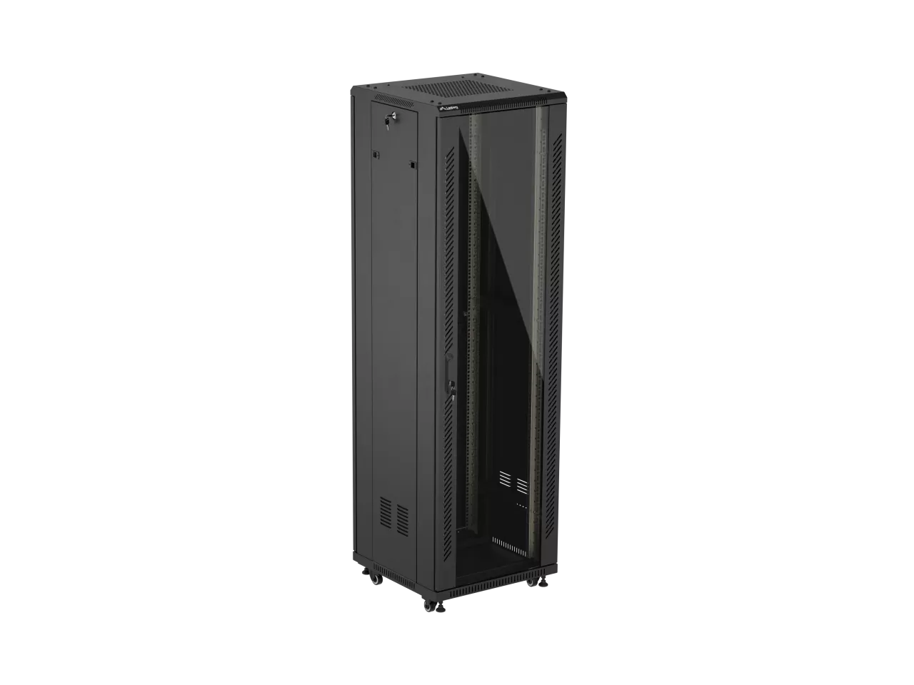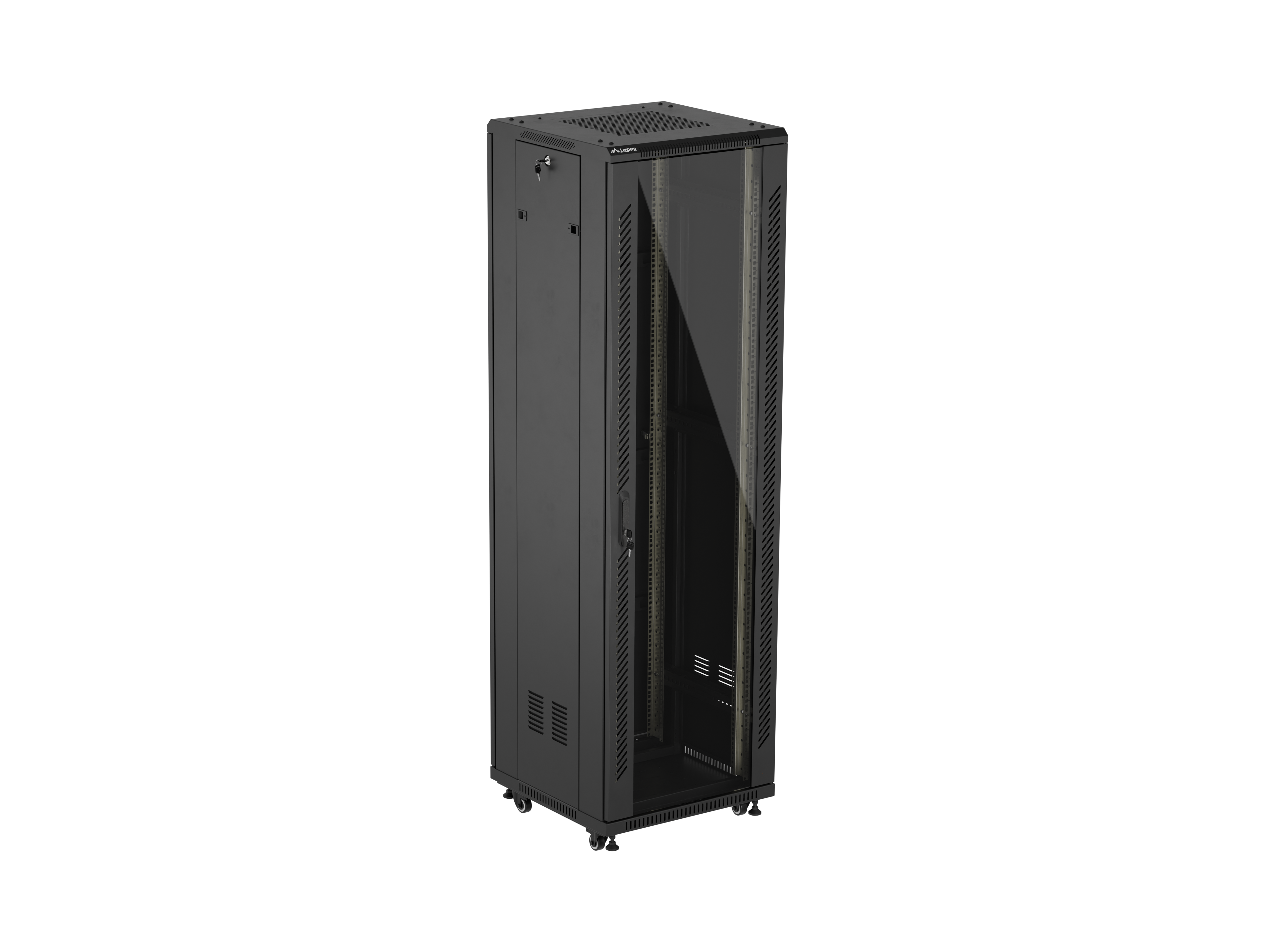 SZAFA INSTALACYJNA RACK STOJĄCA 19" 42U 600X600 CZARNA DRZWI PRZESZKLONE LANBERG (FLAT PACK)