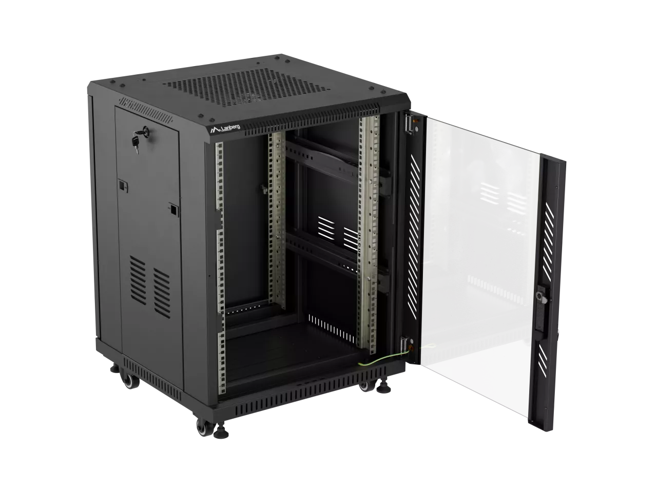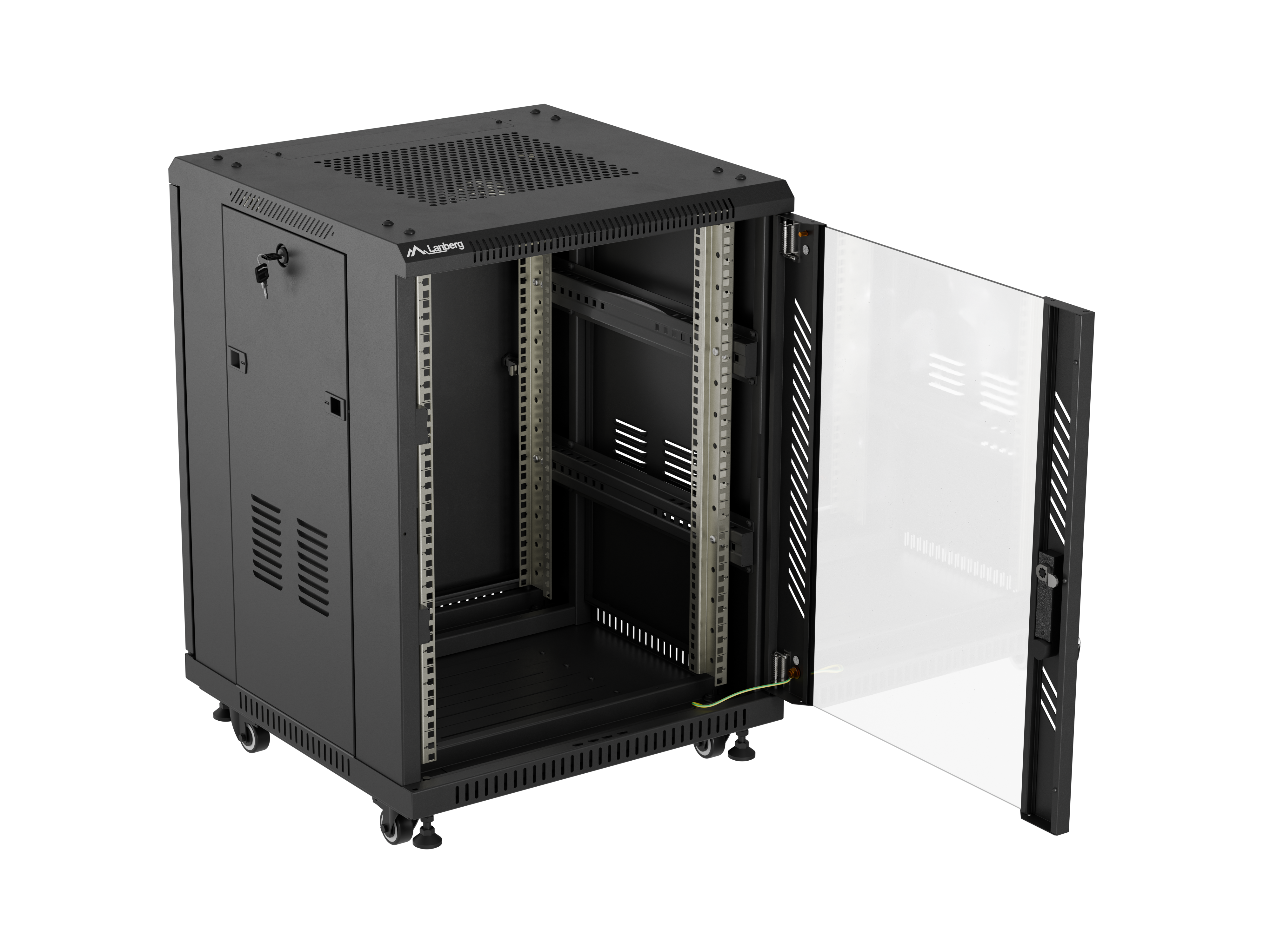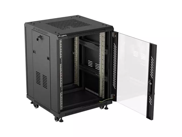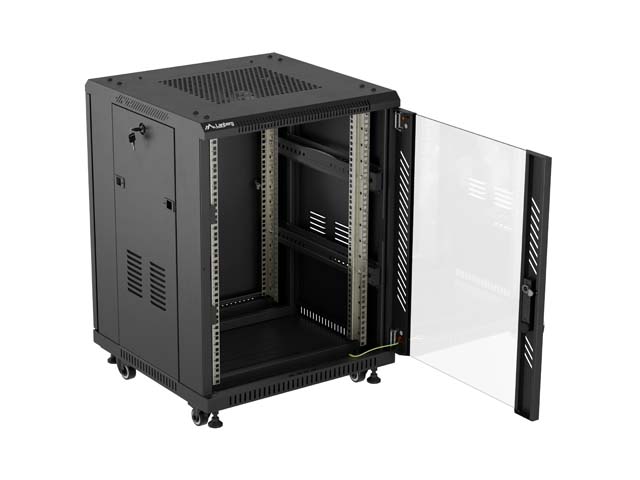 SZAFA INSTALACYJNA RACK STOJĄCA 19" 15U 600X600 CZARNA DRZWI PRZESZKLONE LANBERG (FLAT PACK)