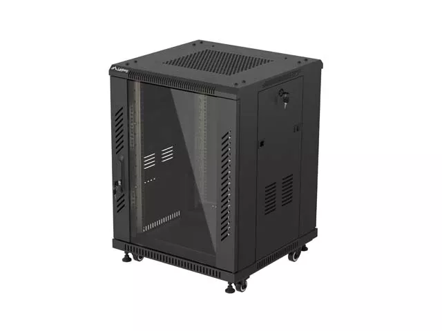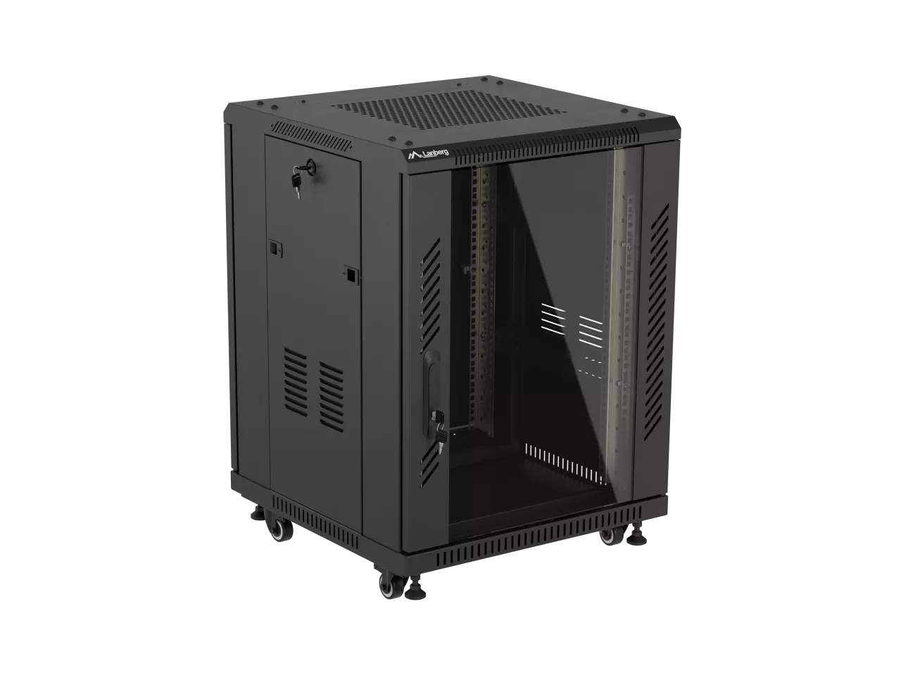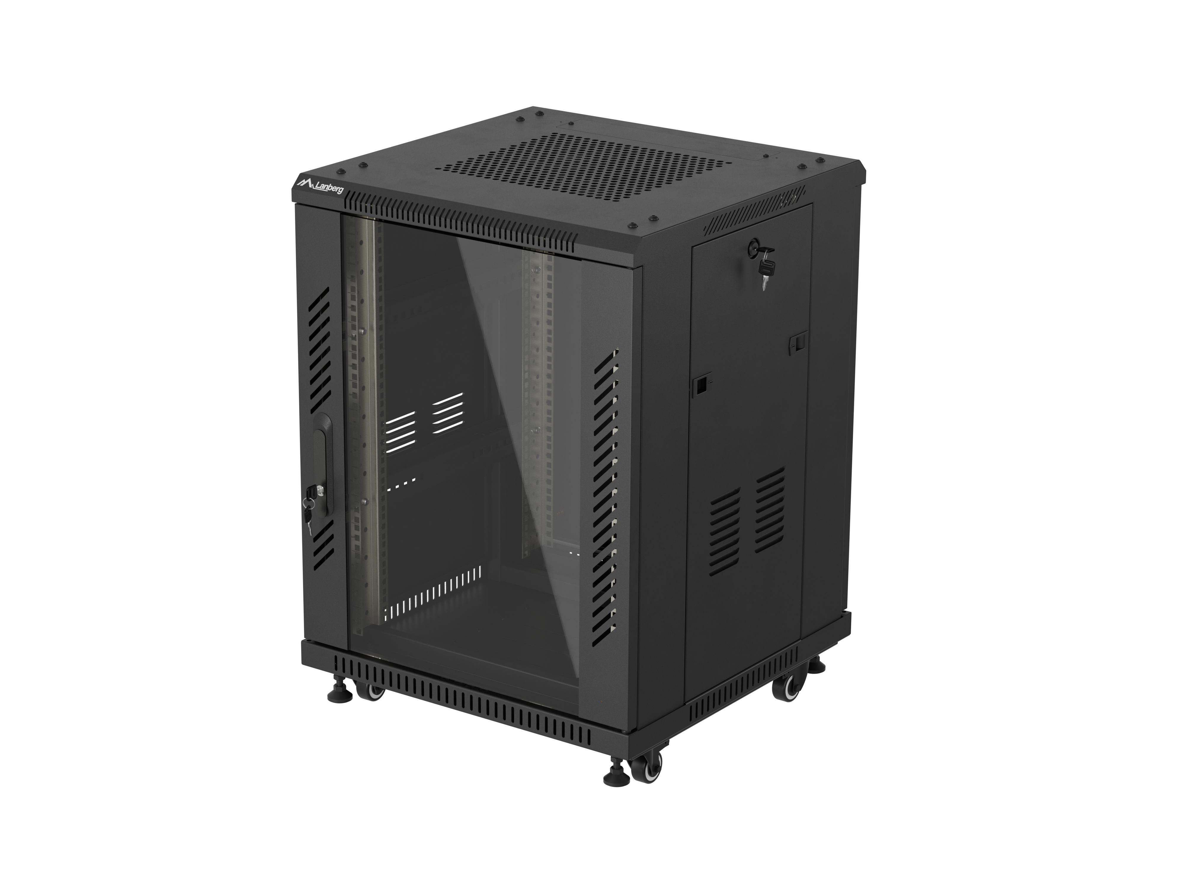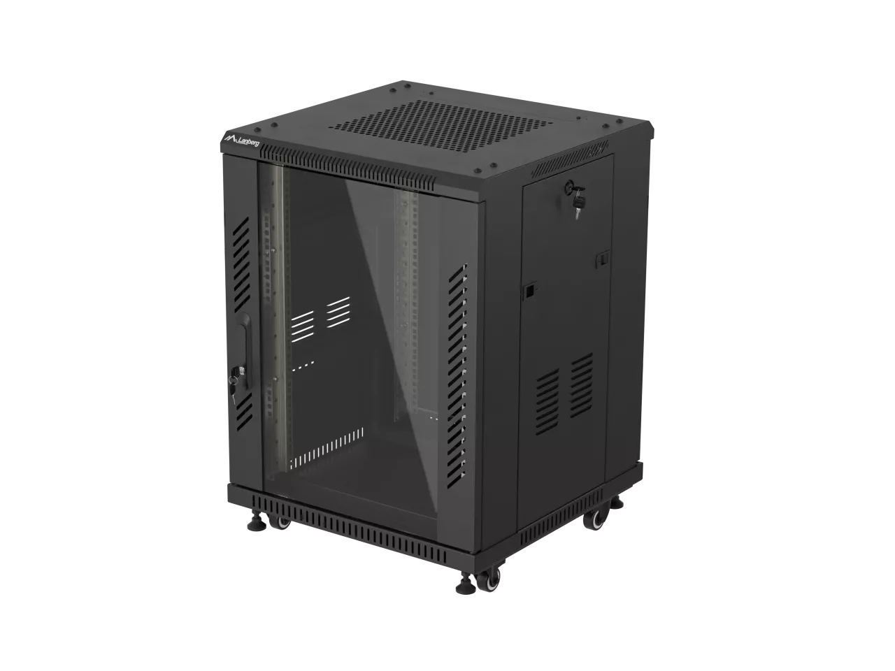 SZAFA INSTALACYJNA RACK STOJĄCA 19" 15U 600X600 CZARNA DRZWI PRZESZKLONE LANBERG (FLAT PACK)