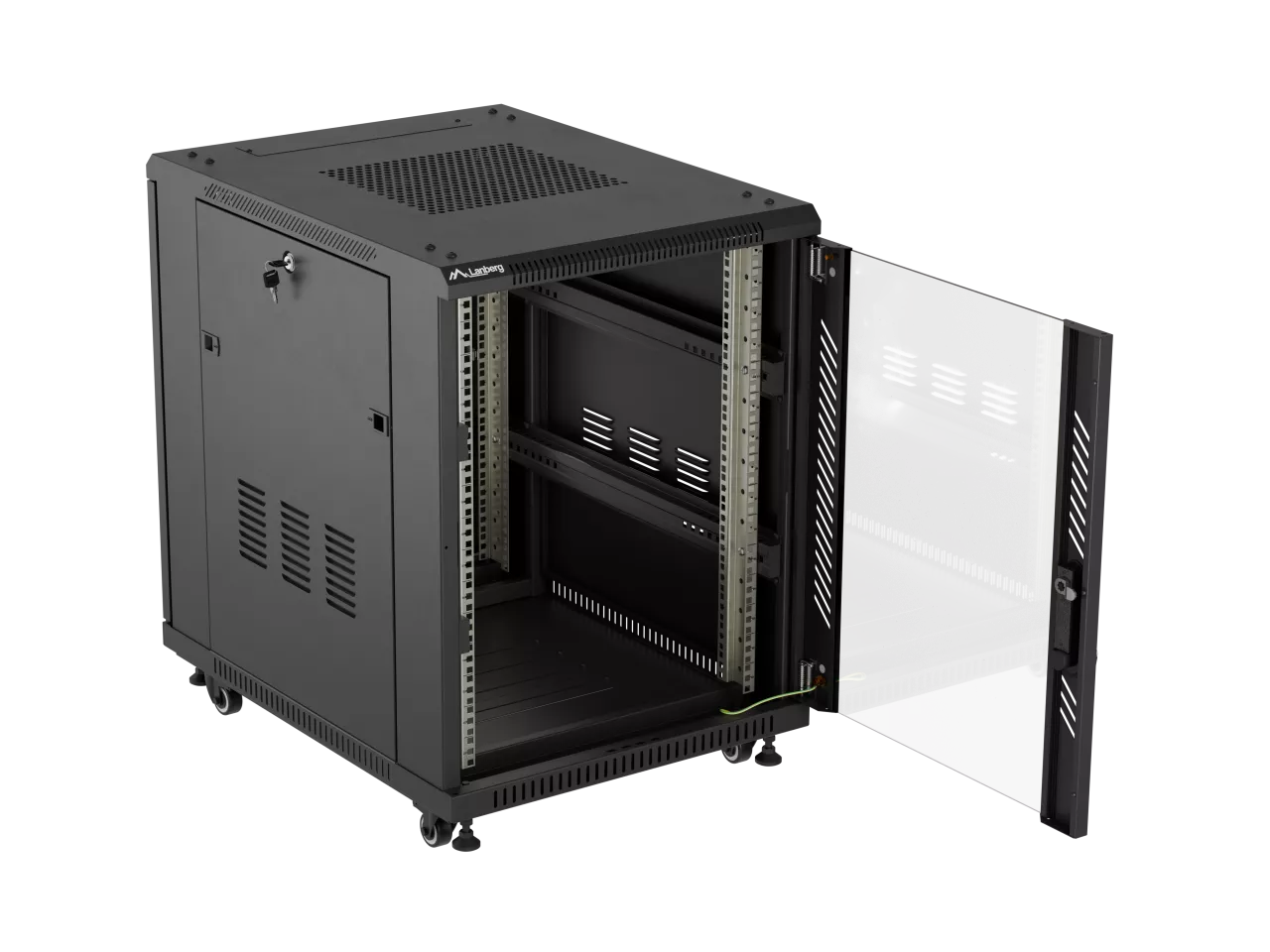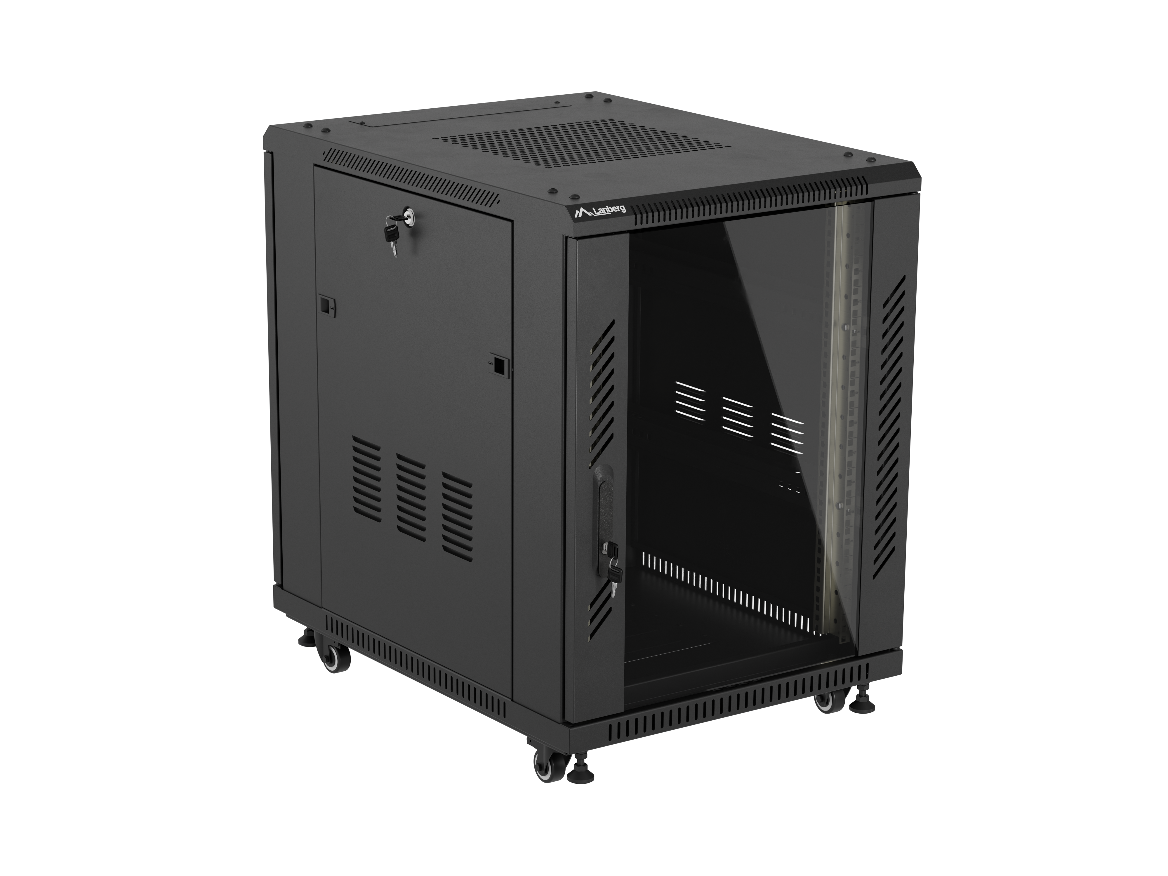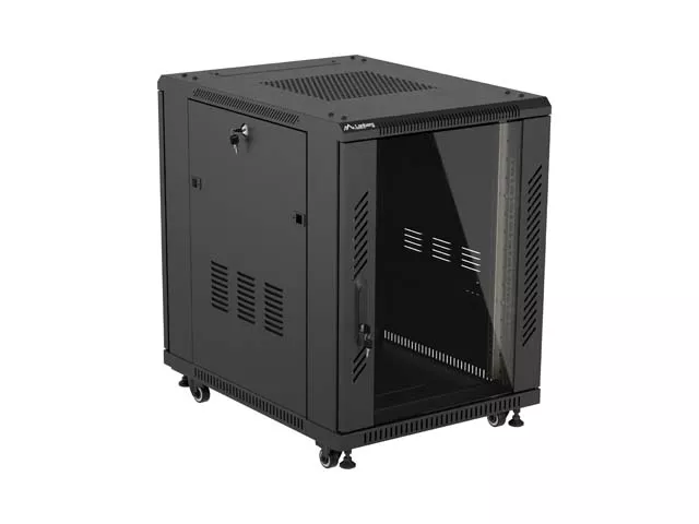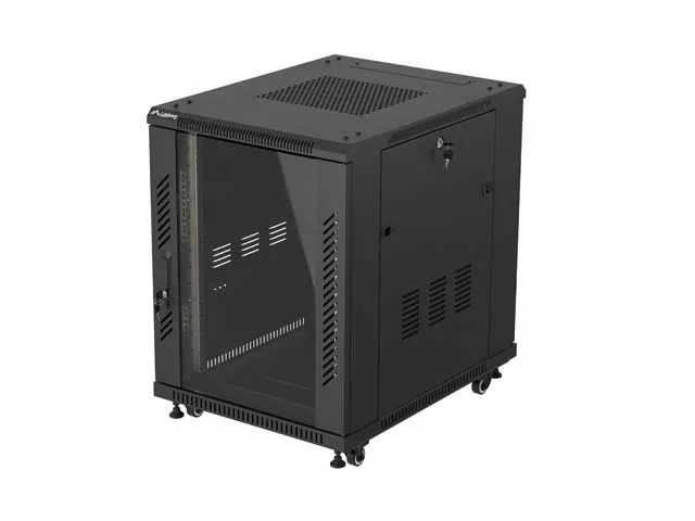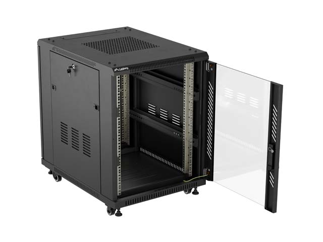 SZAFA INSTALACYJNA RACK STOJĄCA 19" 15U 600X800 CZARNA DRZWI PRZESZKLONE LANBERG (FLAT PACK)