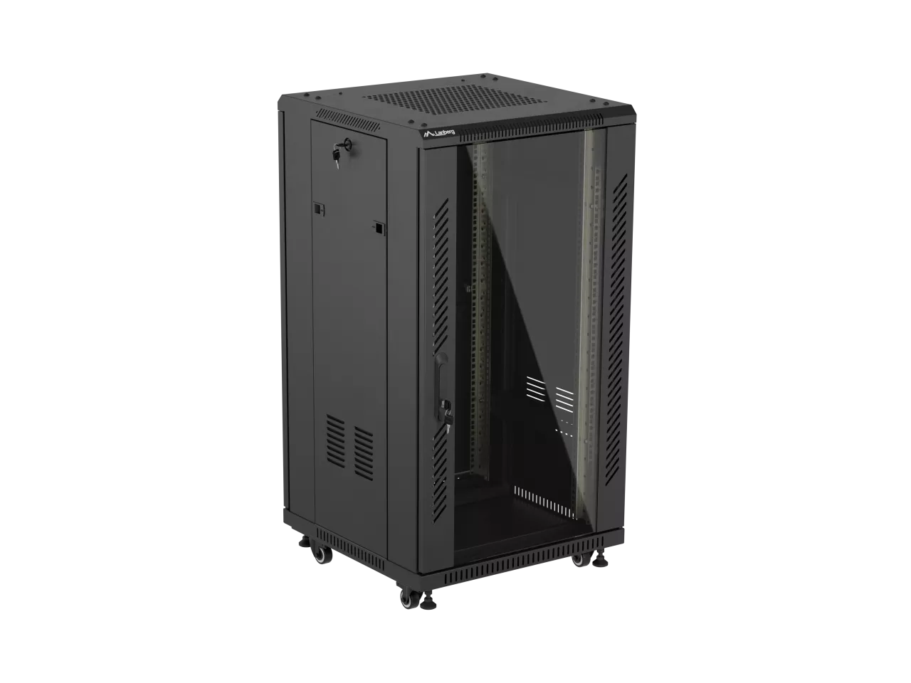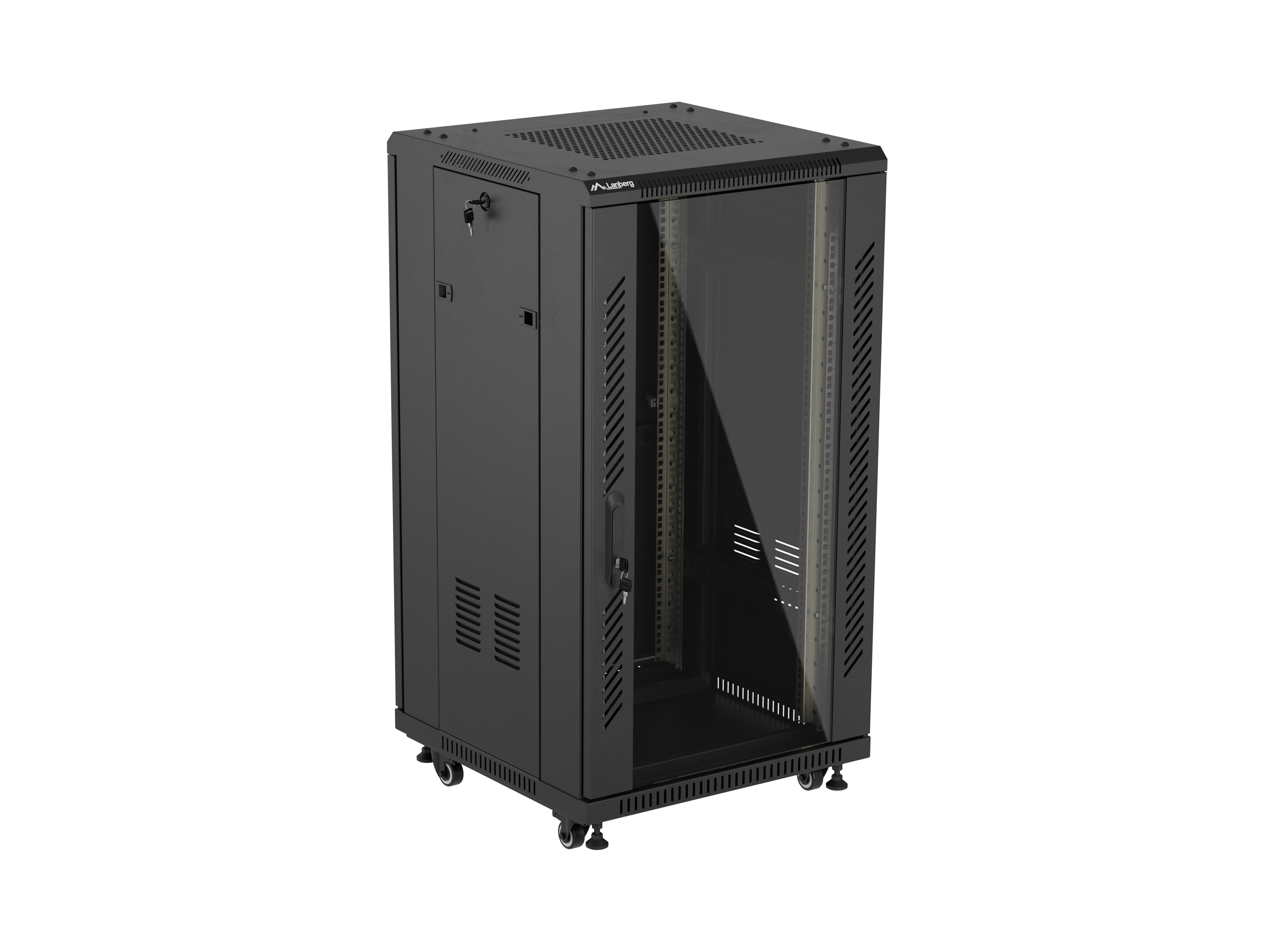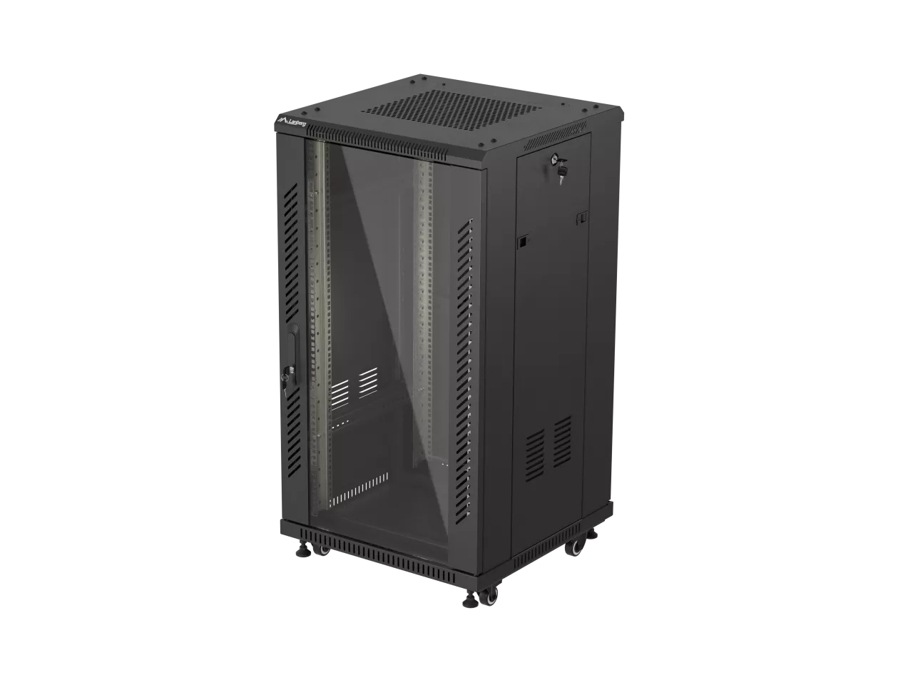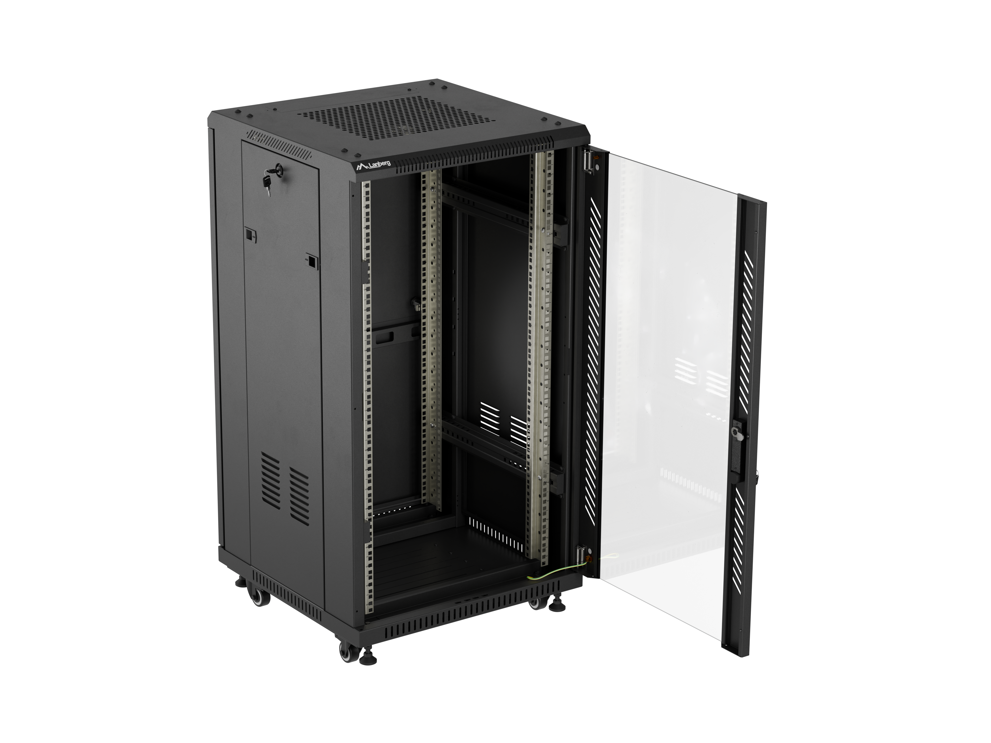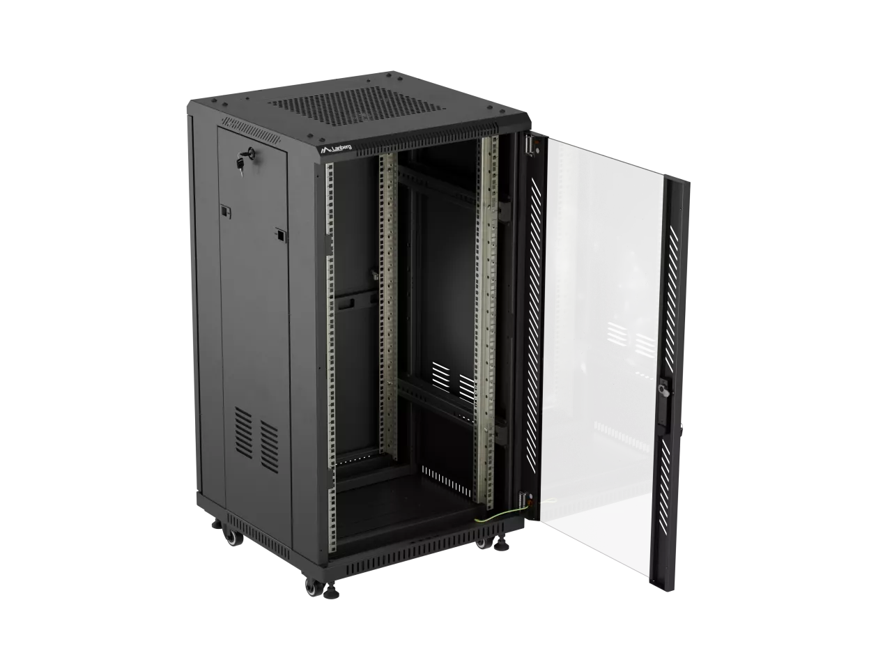 SZAFA INSTALACYJNA RACK STOJĄCA 19" 22U 600X600 CZARNA DRZWI PRZESZKLONE LANBERG (FLAT PACK)