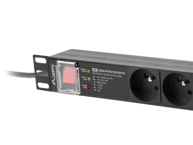 LISTWA ZASILAJĄCA RACK PDU PRO 19" LANBERG 1U 16A 7X 230V PL SPD-3MP 2M CZARNA