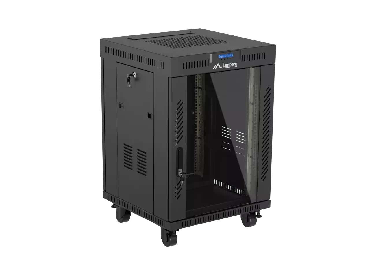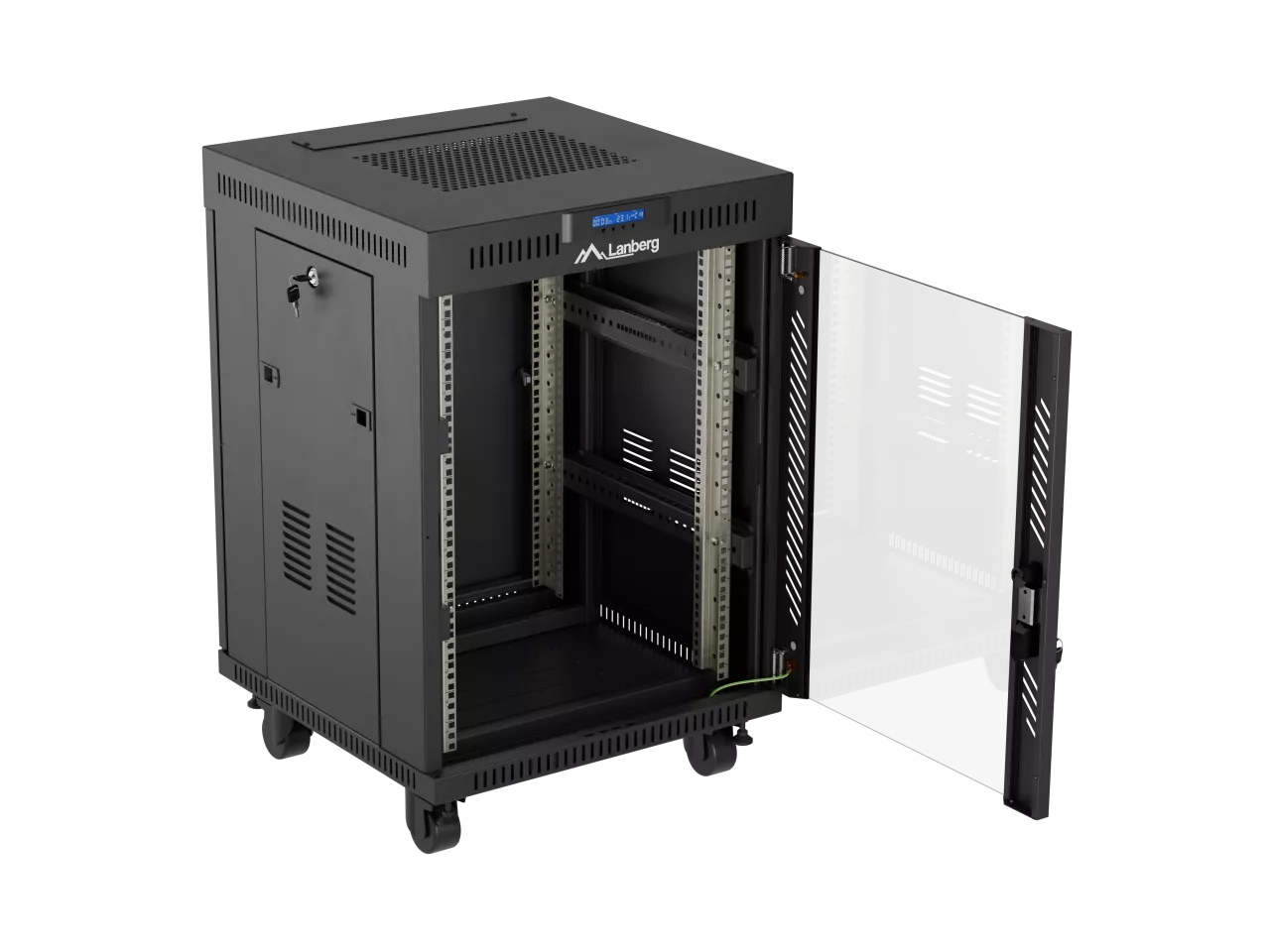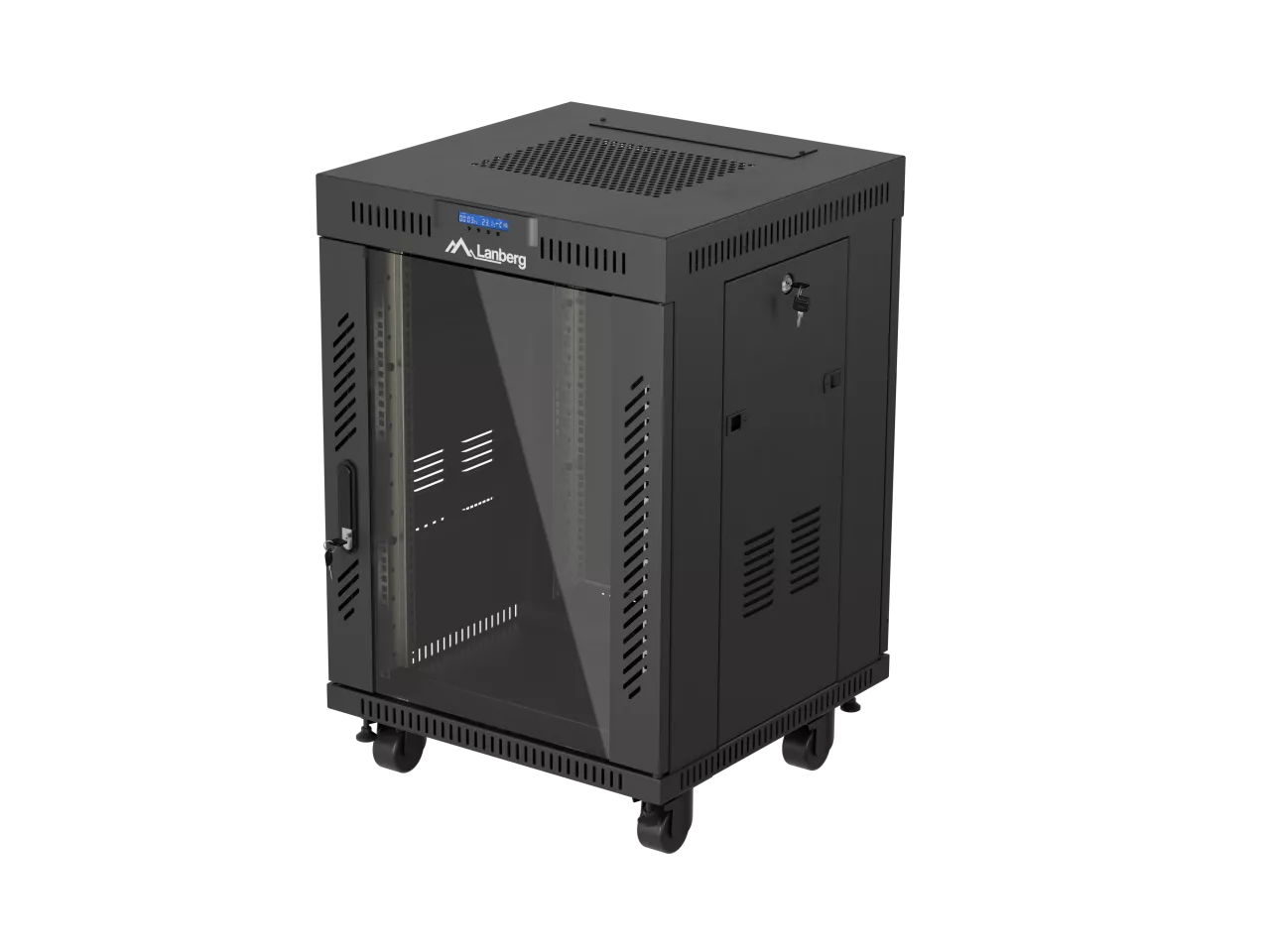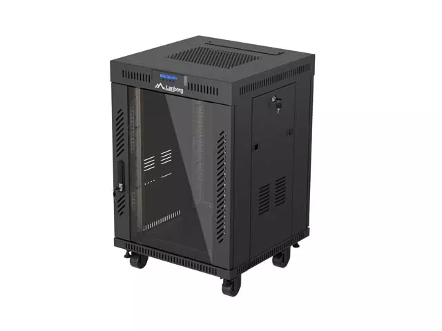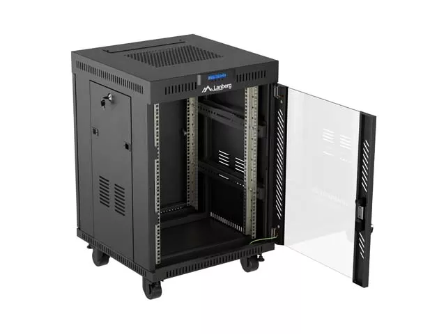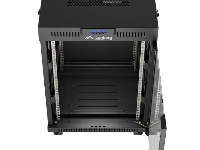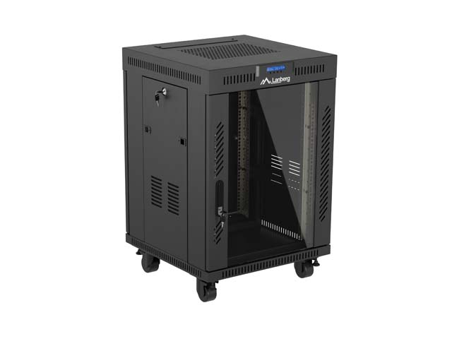 SZAFA INSTALACYJNA RACK STOJĄCA 19" 15U 600X600 CZARNA DRZWI PRZESZKLONE LCD LANBERG (FLAT PACK) V2