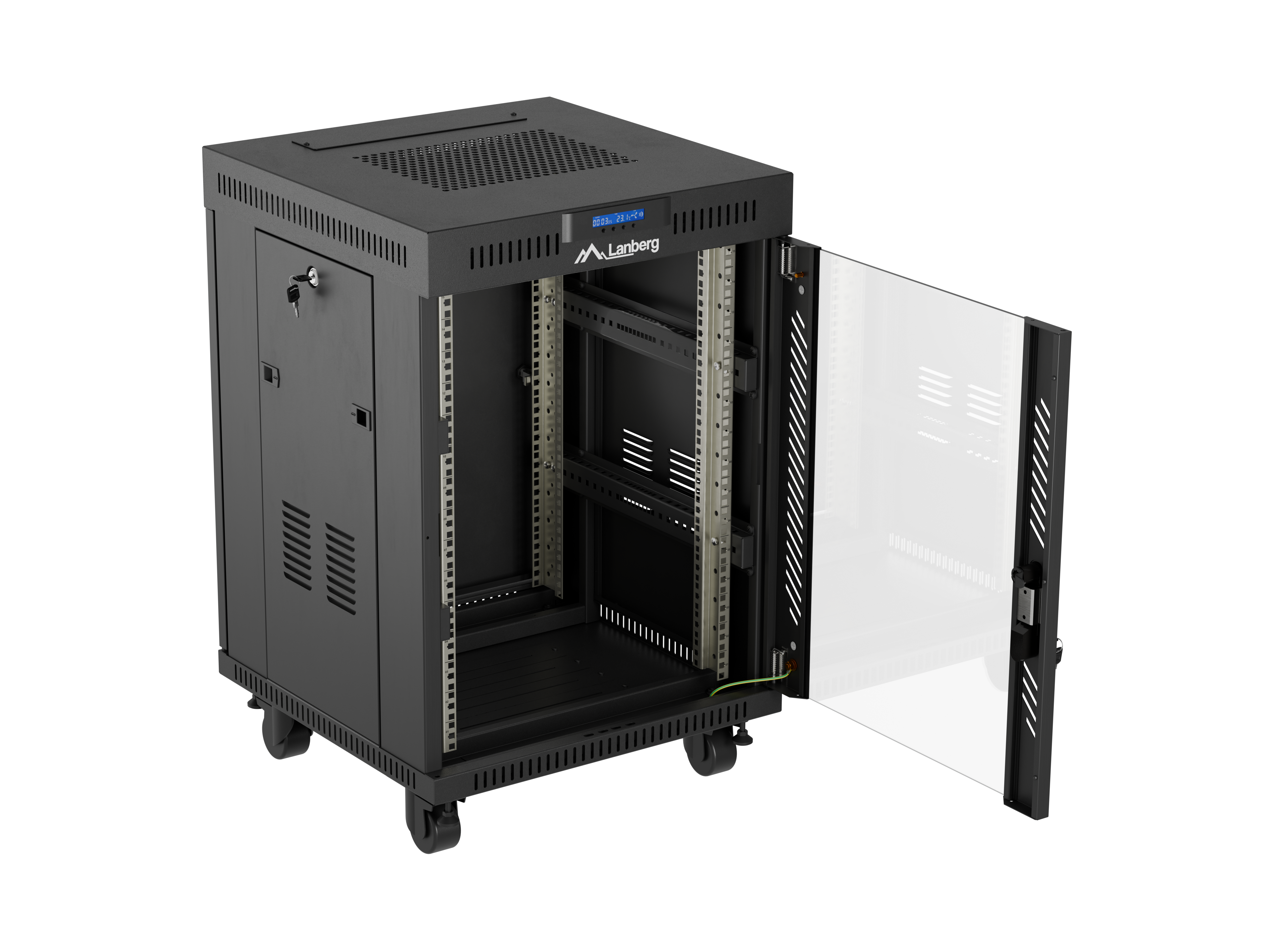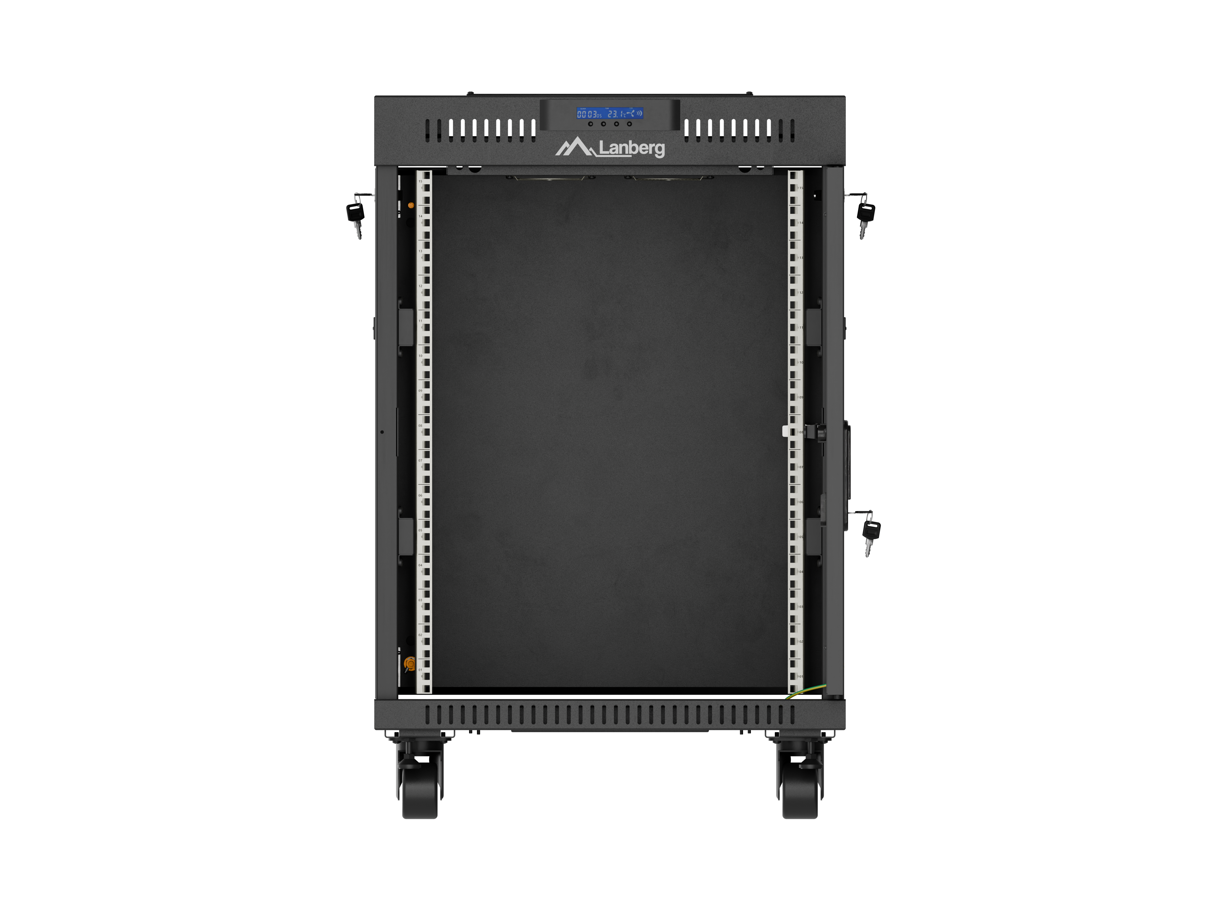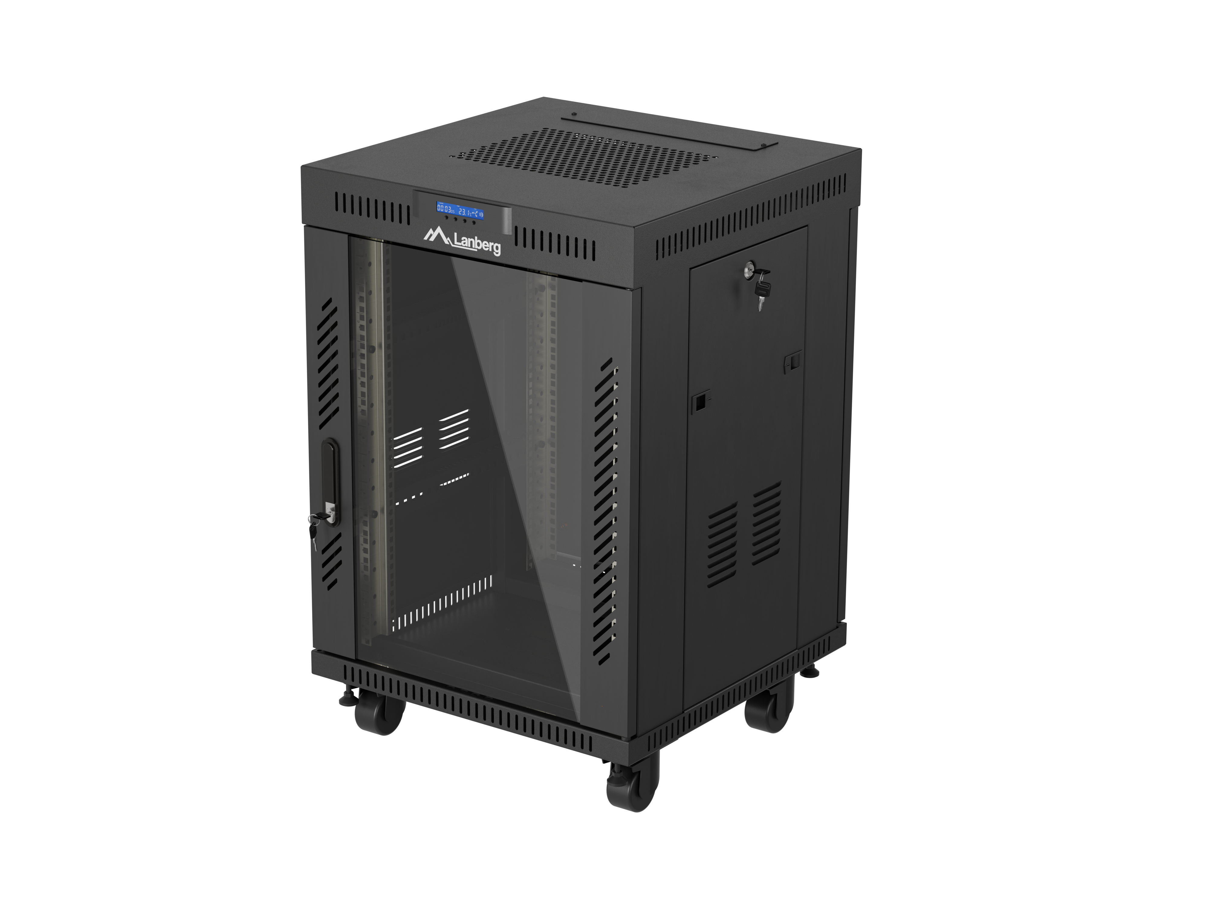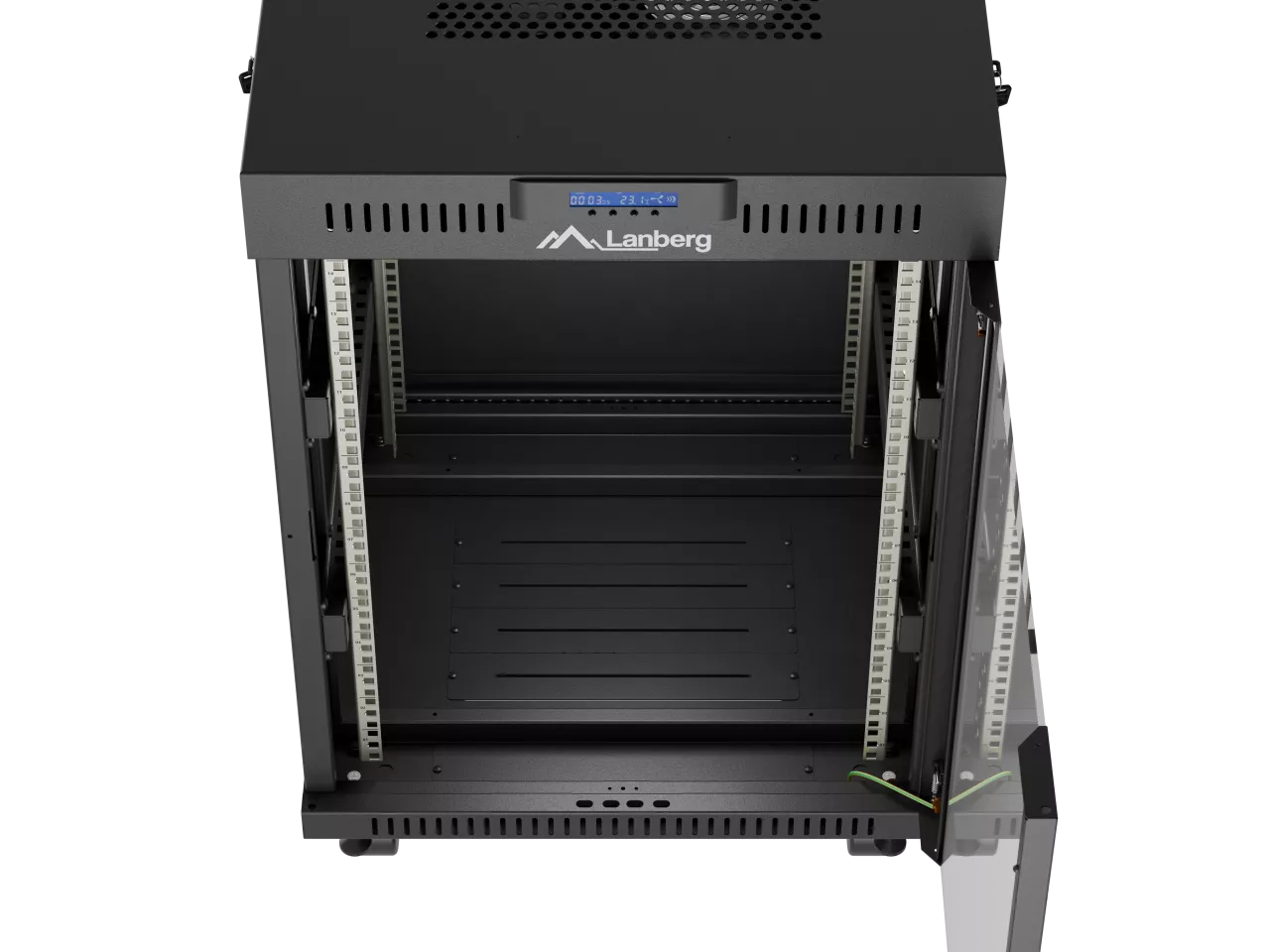 SZAFA INSTALACYJNA RACK STOJĄCA 19" 15U 600X600 CZARNA DRZWI PRZESZKLONE LCD LANBERG (FLAT PACK) V2