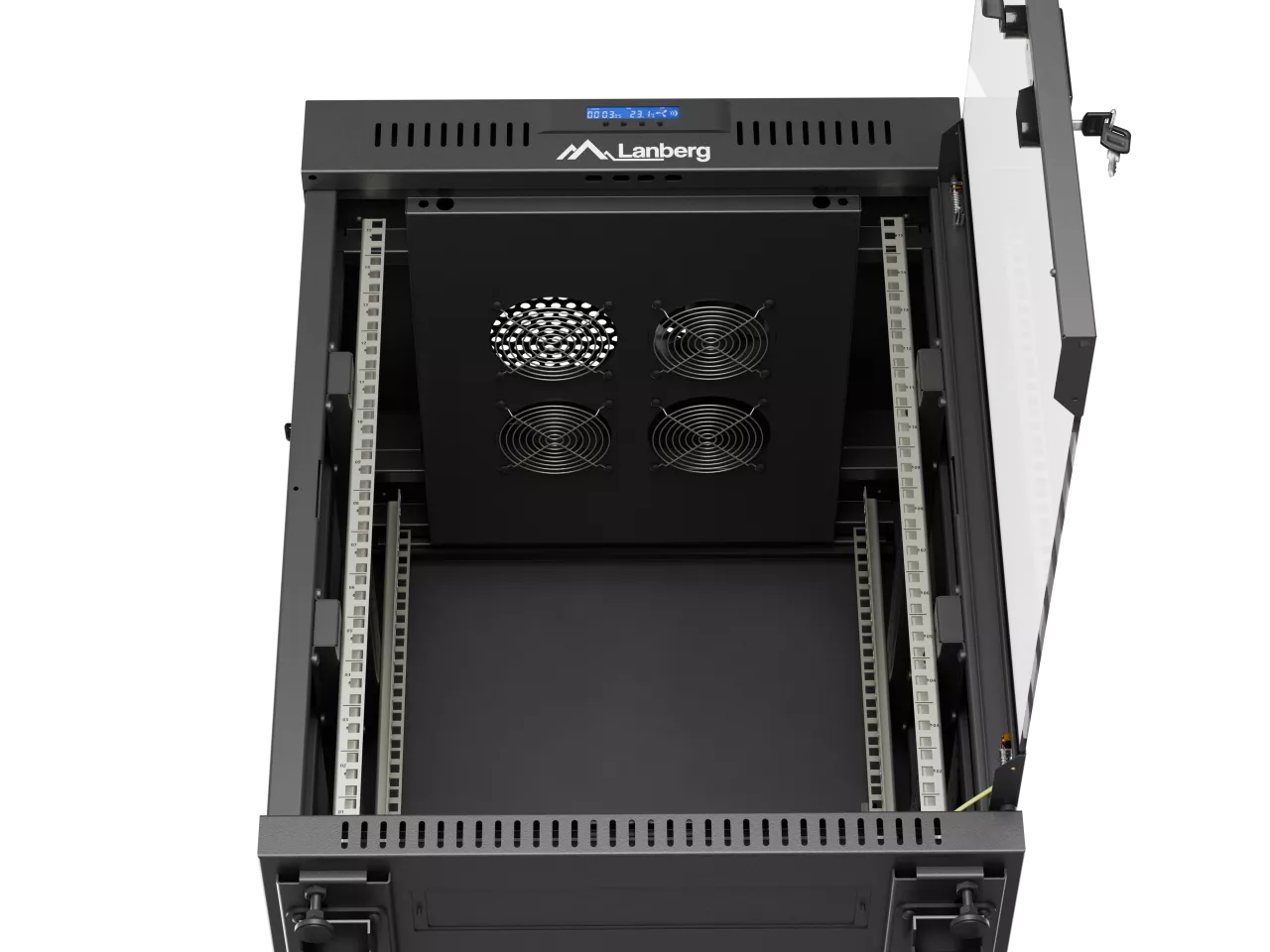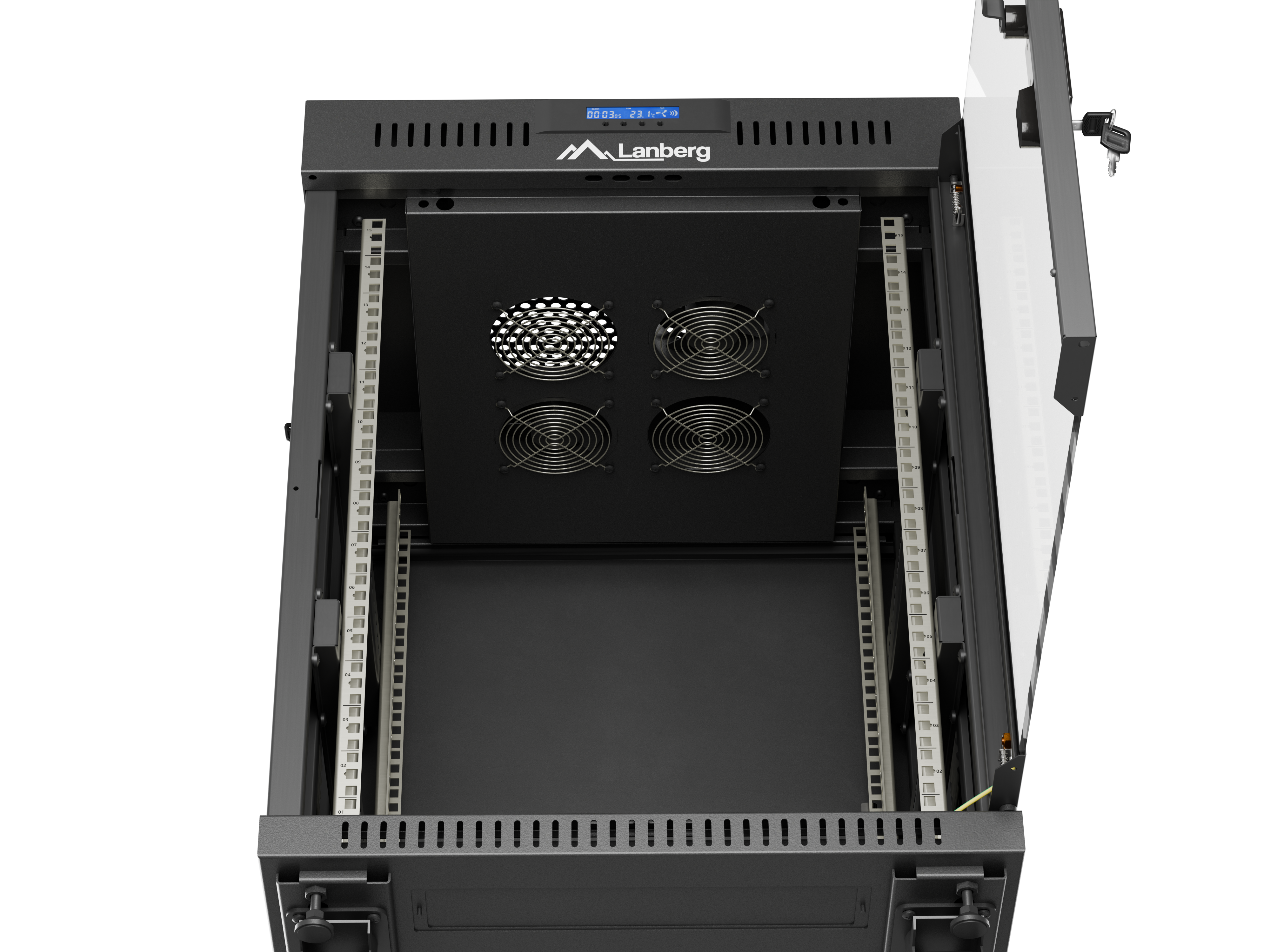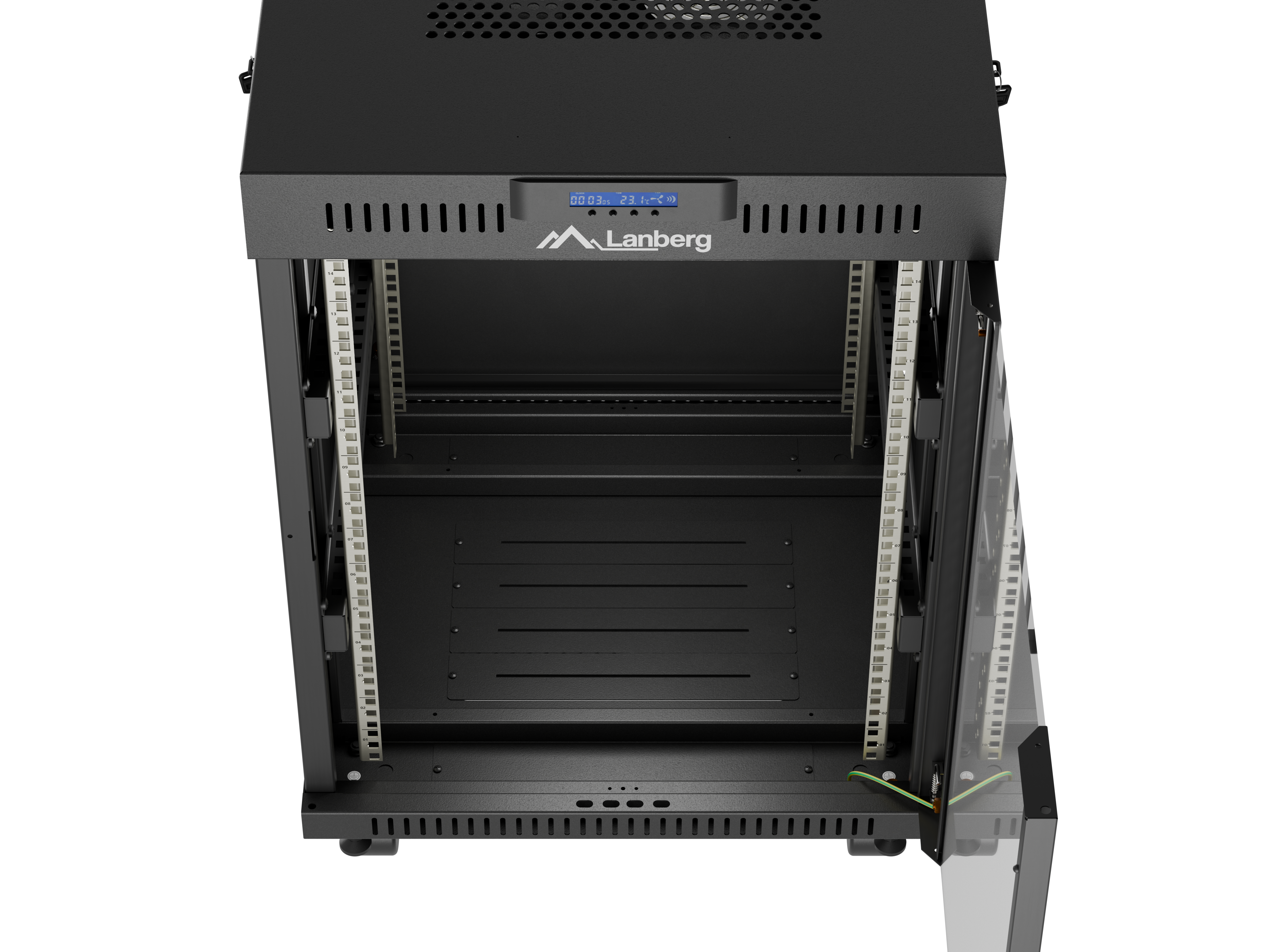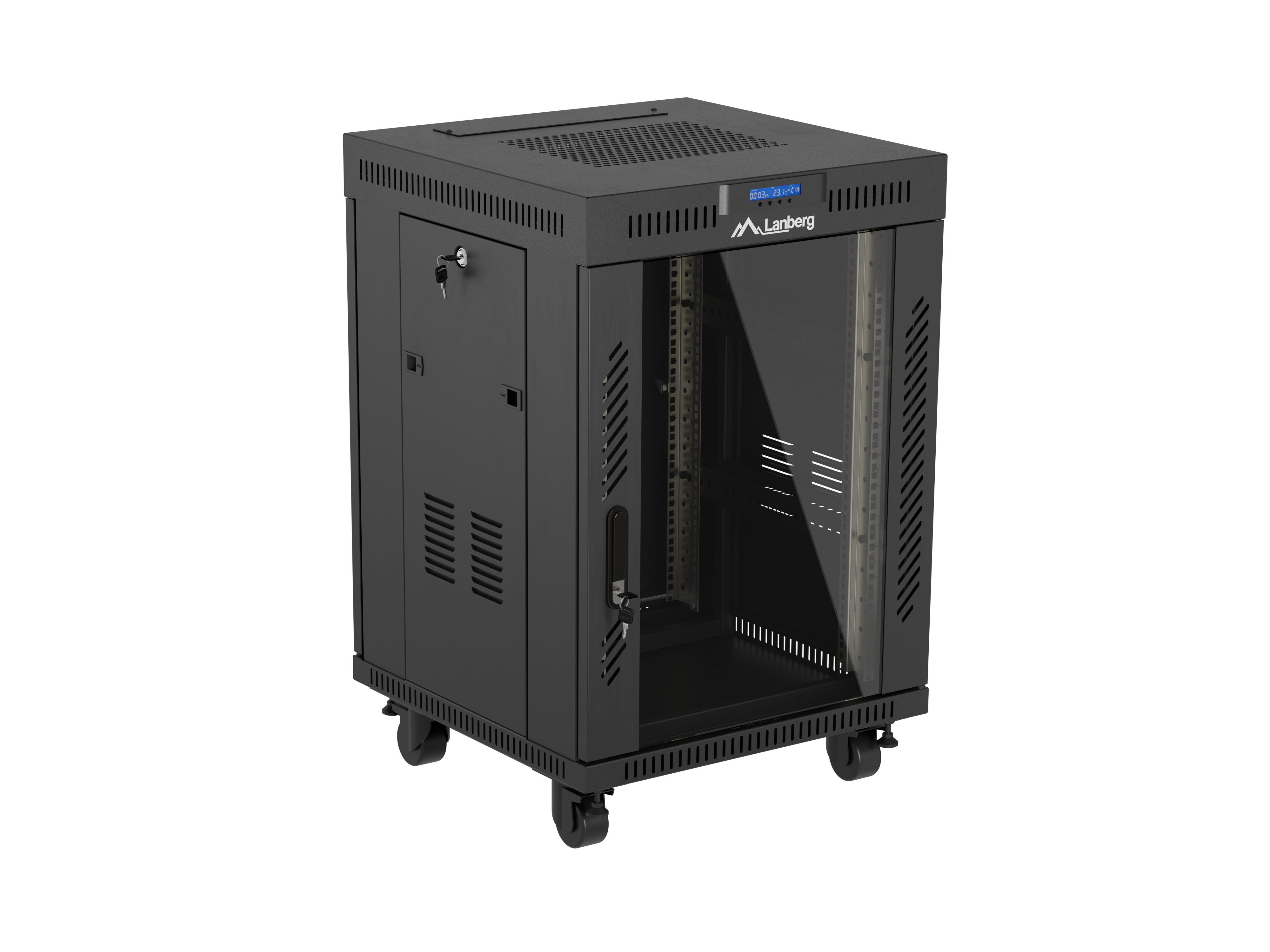 SZAFA INSTALACYJNA RACK STOJĄCA 19" 15U 600X600 CZARNA DRZWI PRZESZKLONE LCD LANBERG (FLAT PACK) V2