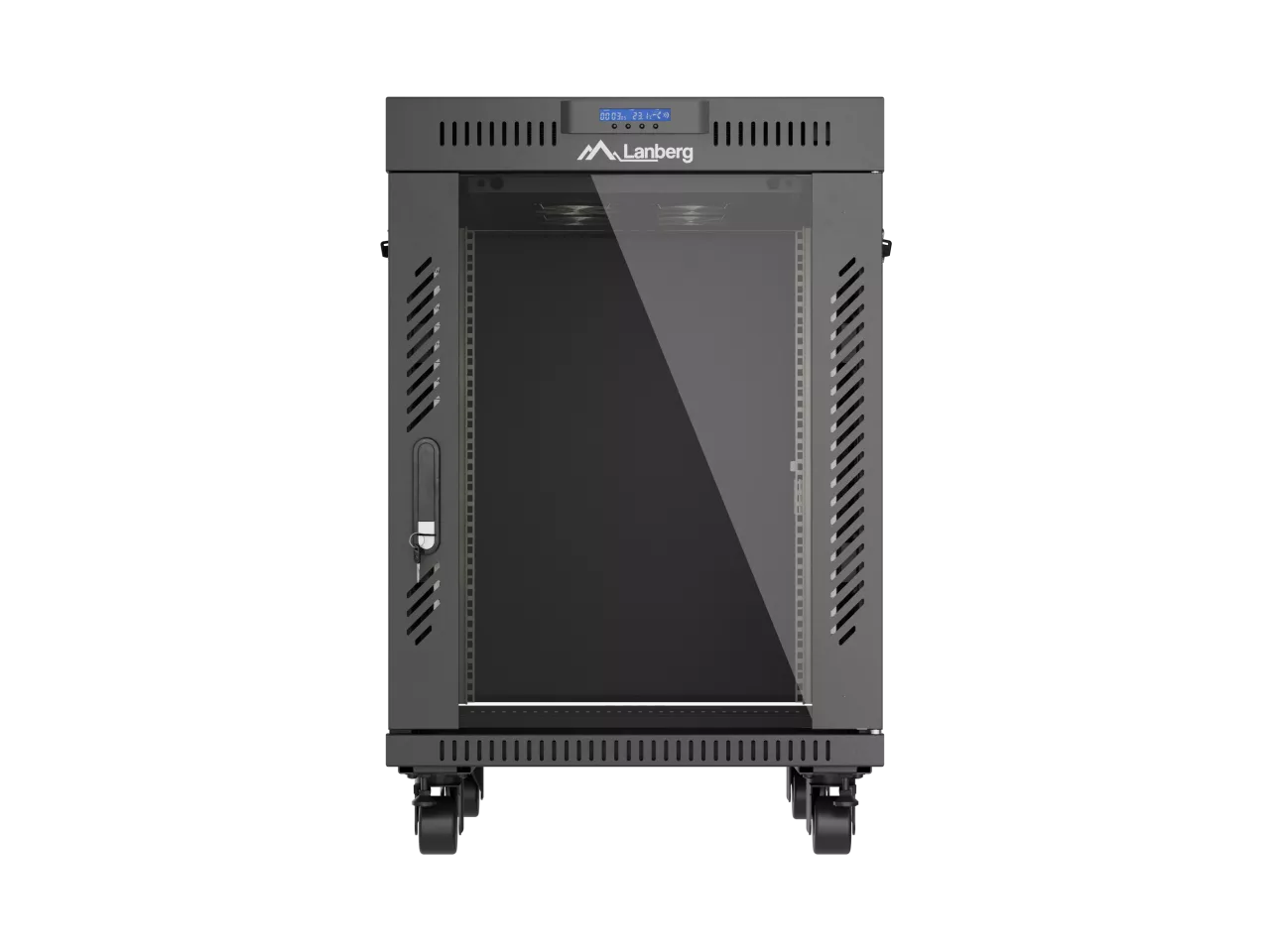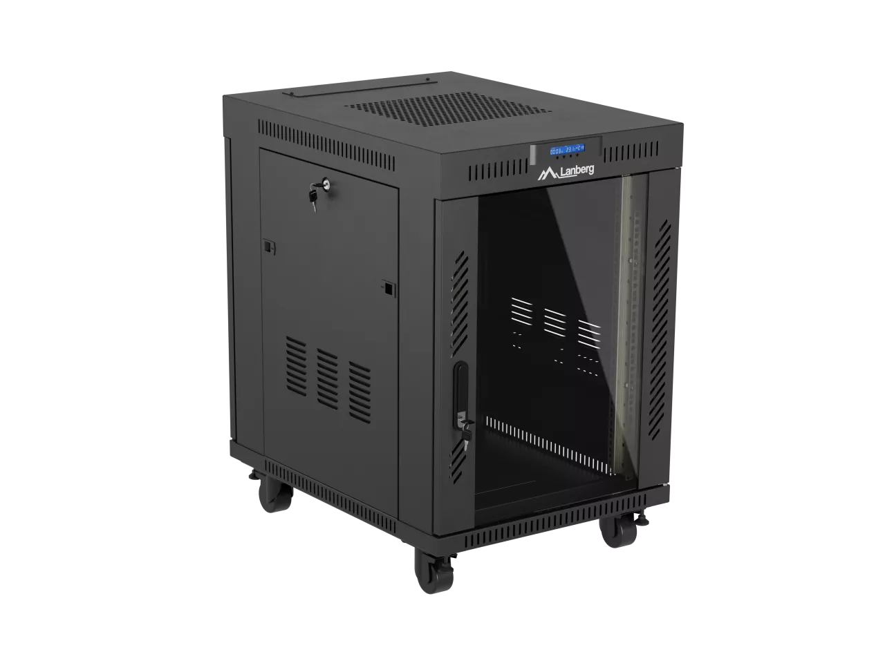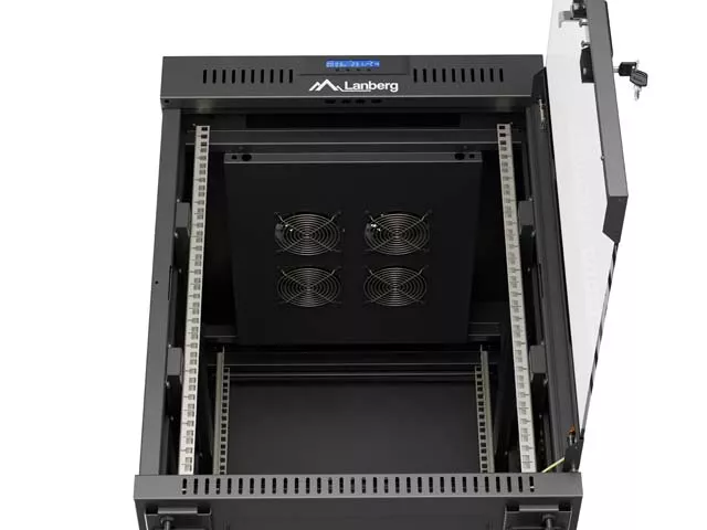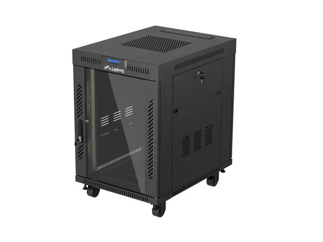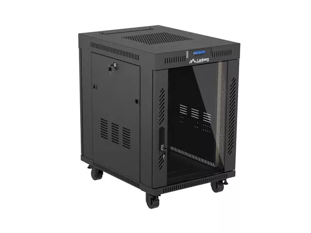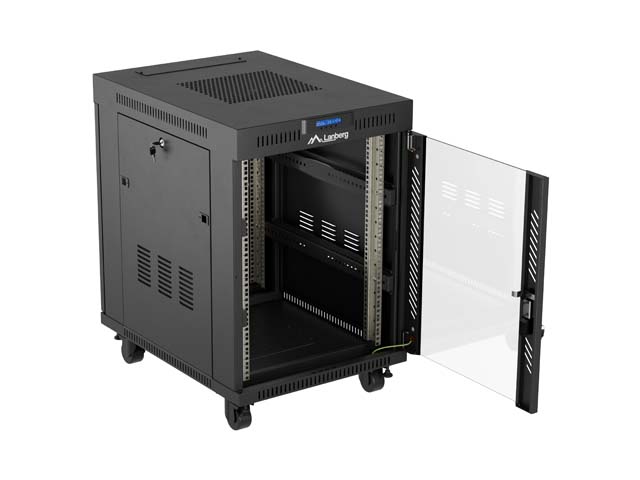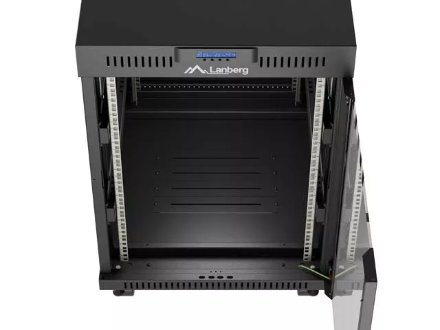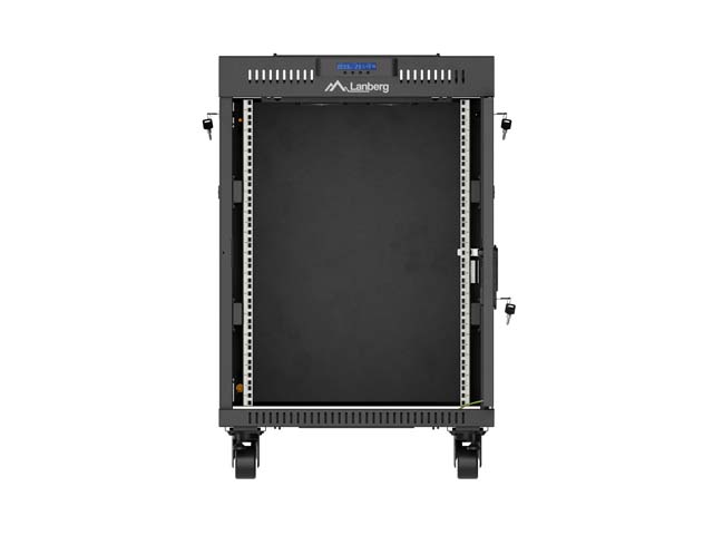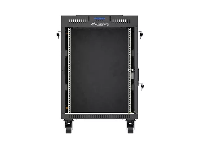 SZAFA INSTALACYJNA RACK STOJĄCA 19" 15U 600X800 CZARNA DRZWI PRZESZKLONE LCD LANBERG (FLAT PACK) V2
