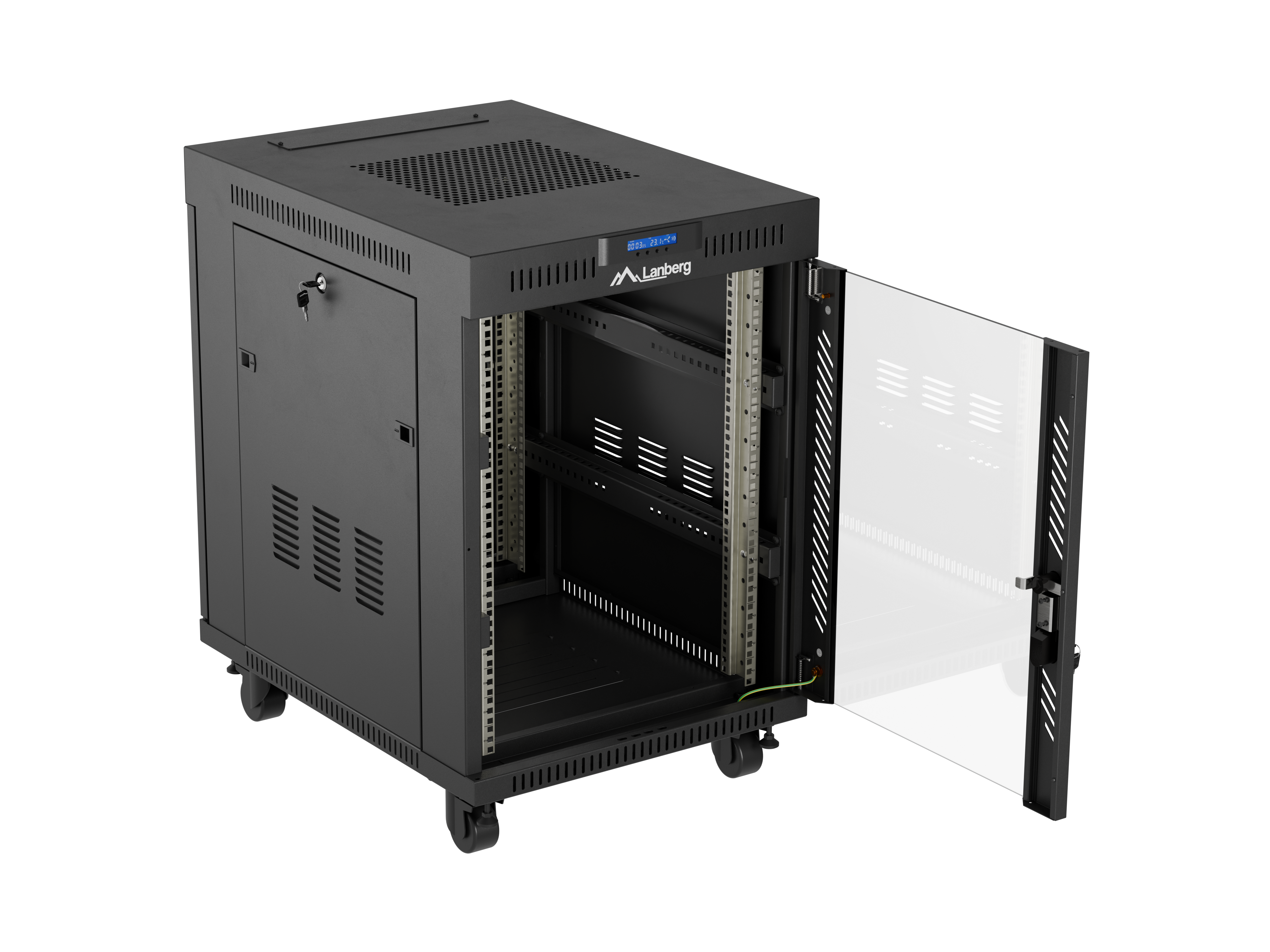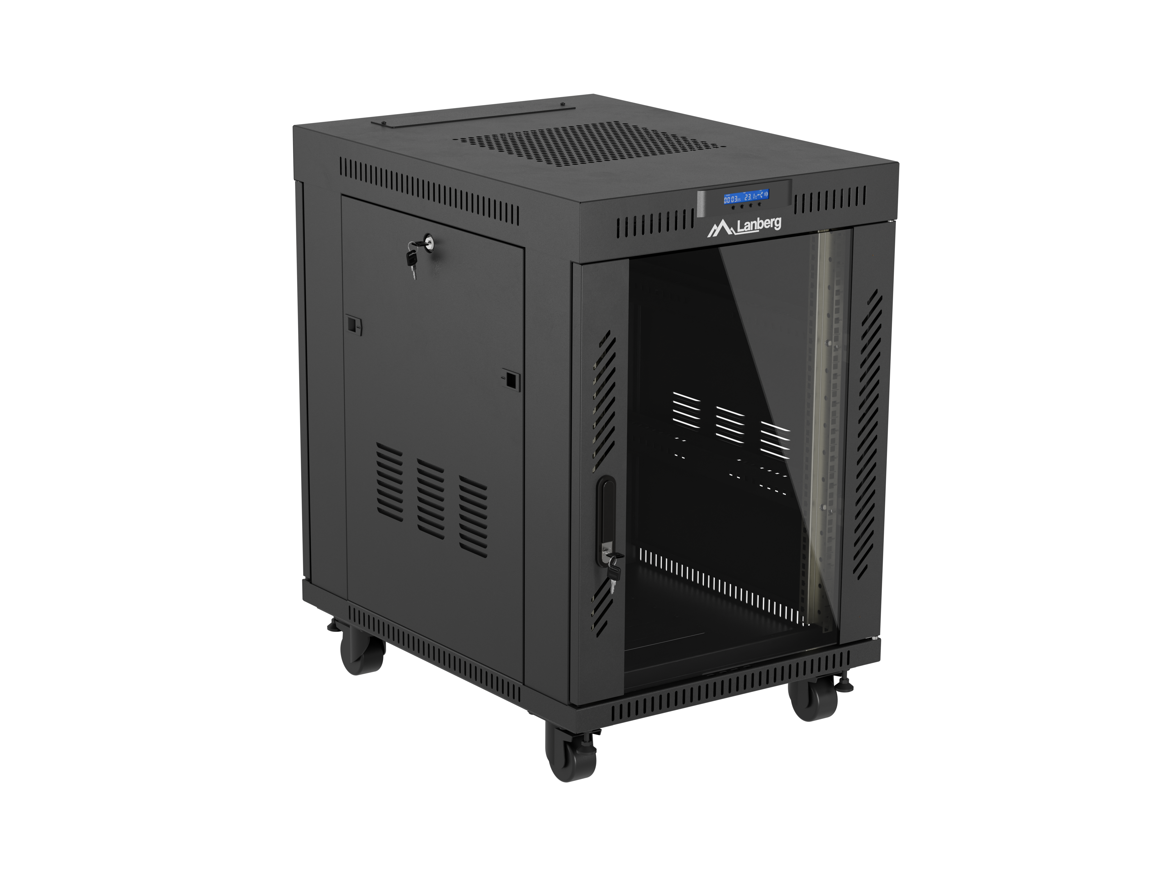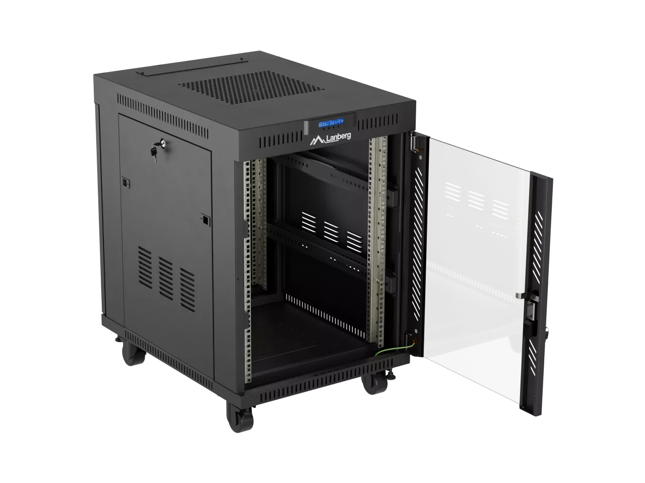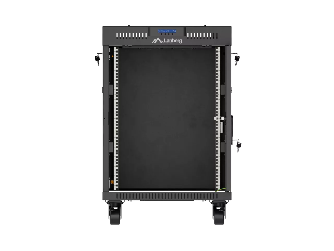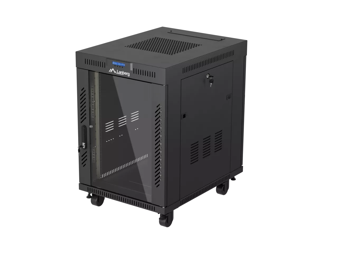SZAFA INSTALACYJNA RACK STOJĄCA 19" 15U 600X800 CZARNA DRZWI PRZESZKLONE LCD LANBERG (FLAT PACK) V2