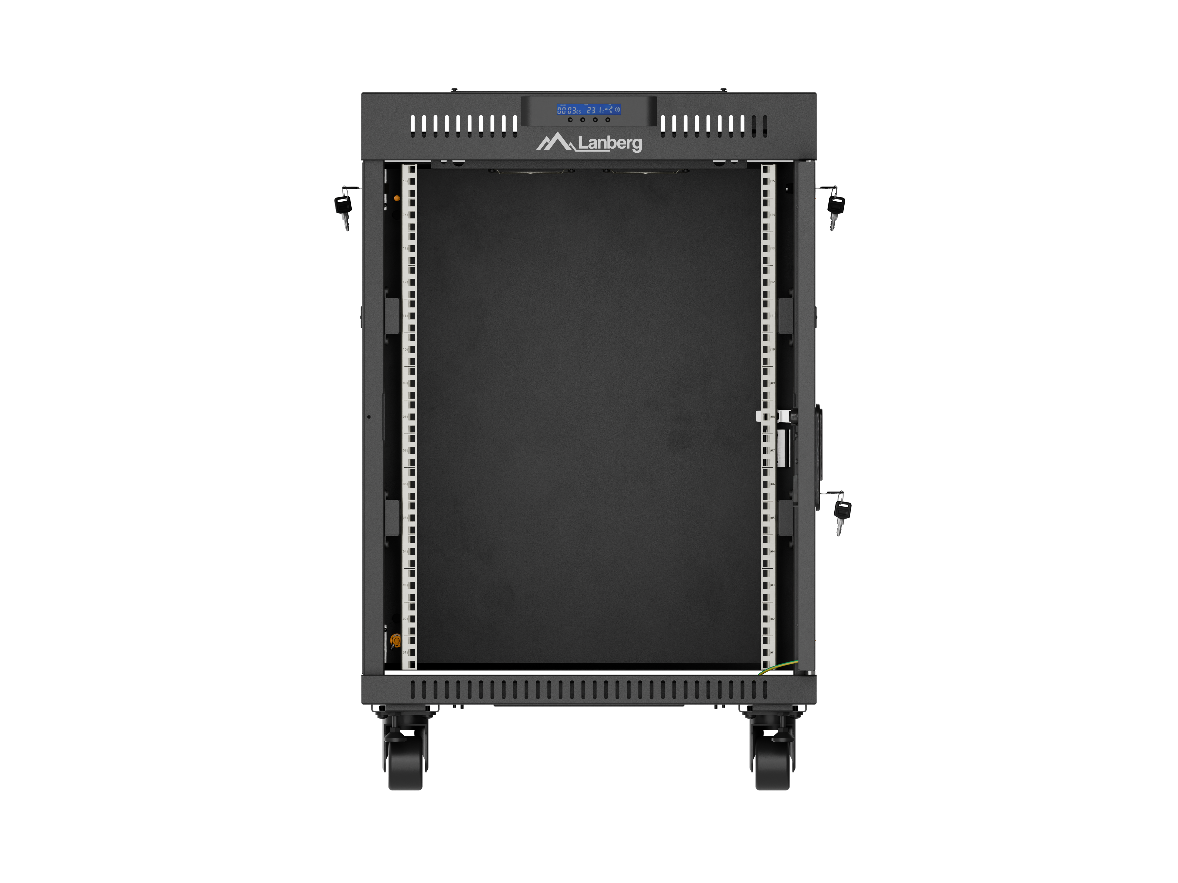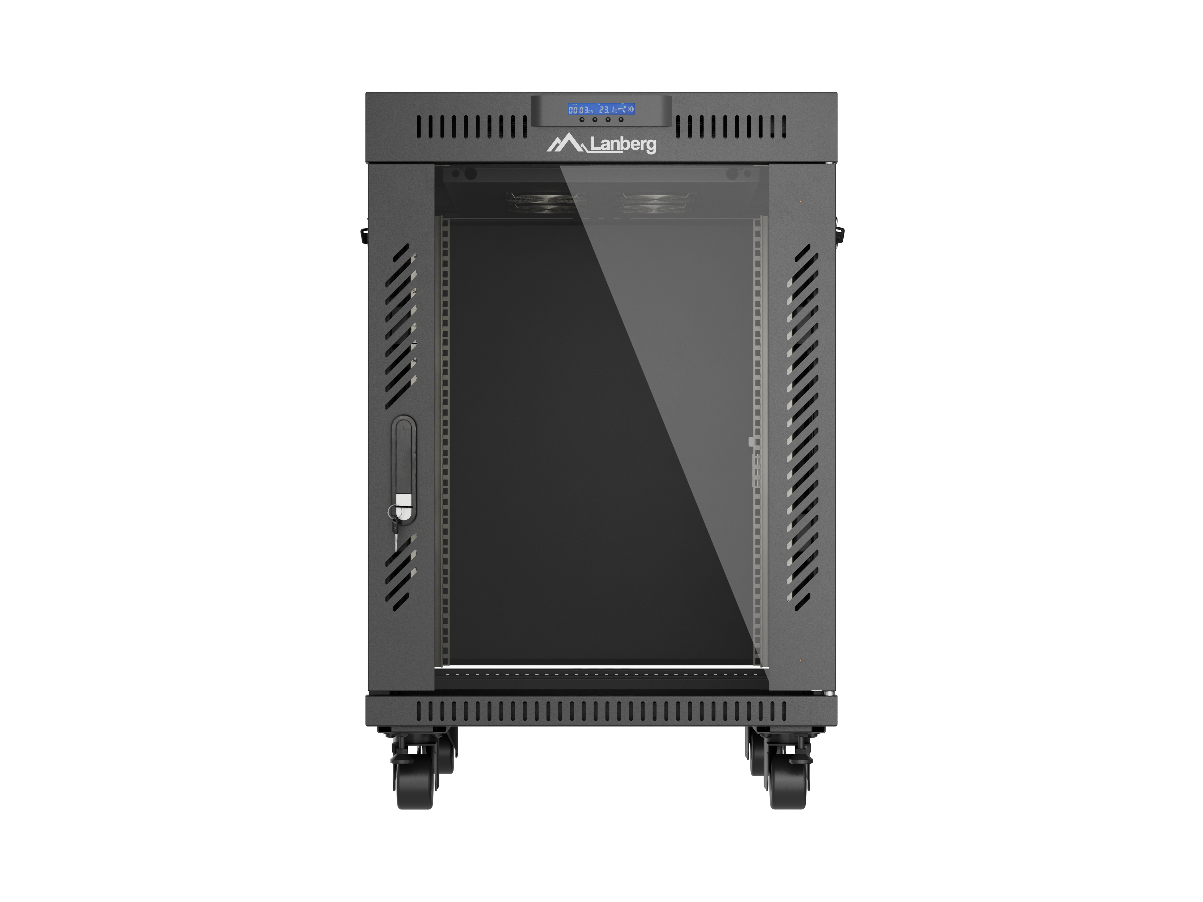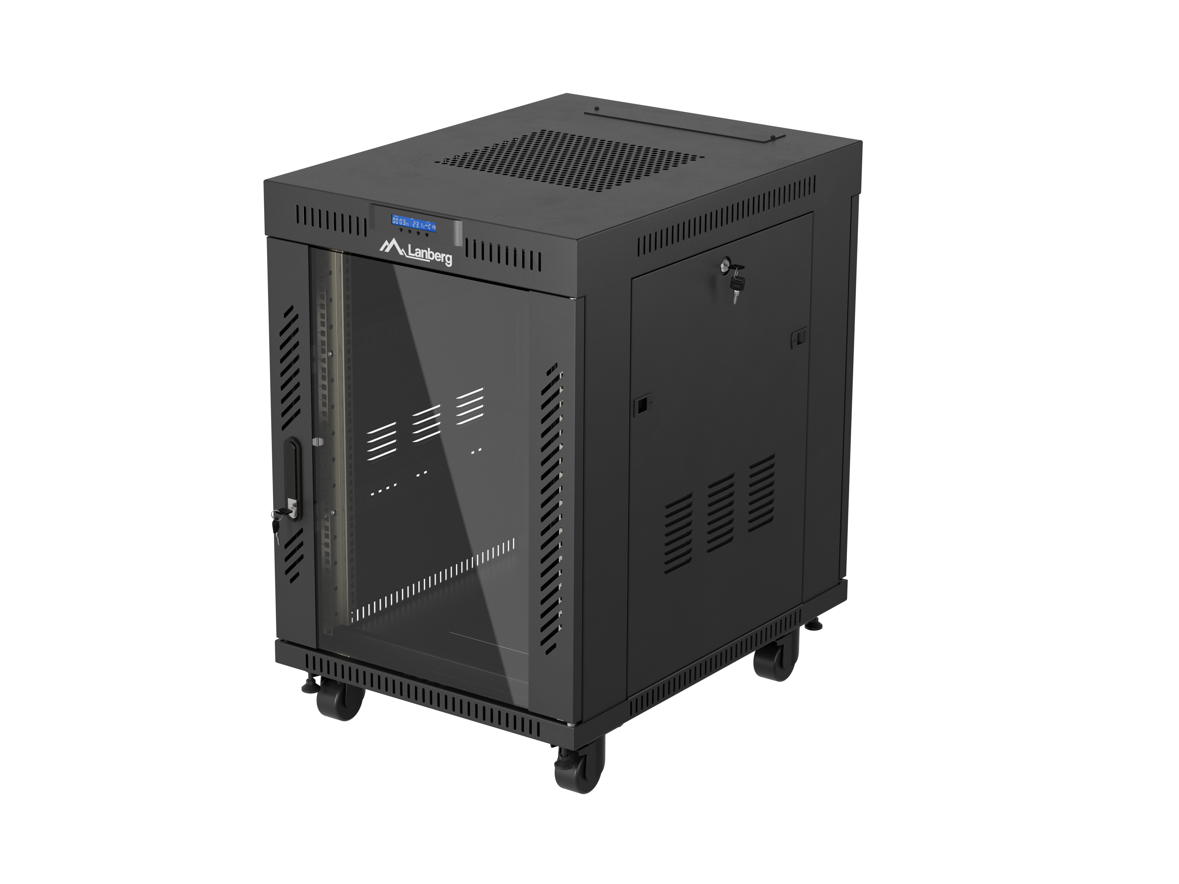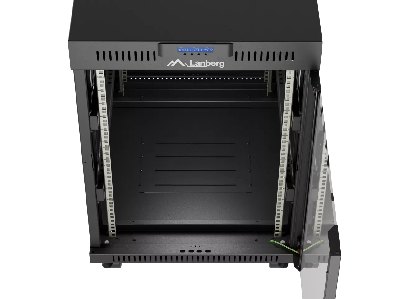 SZAFA INSTALACYJNA RACK STOJĄCA 19" 15U 600X800 CZARNA DRZWI PRZESZKLONE LCD LANBERG (FLAT PACK) V2