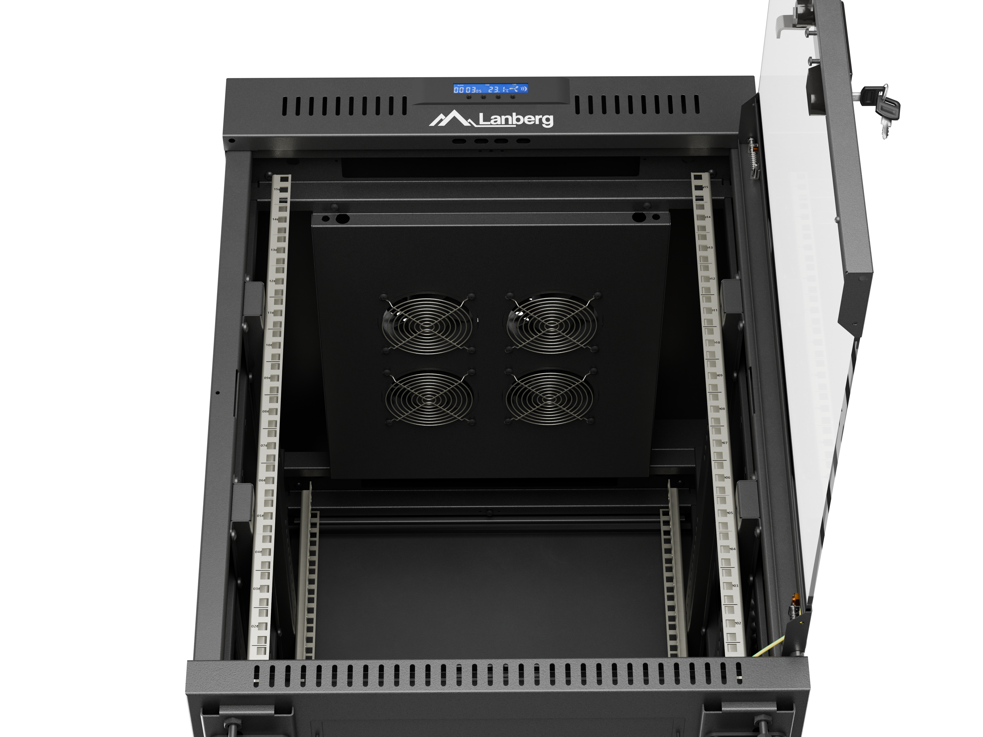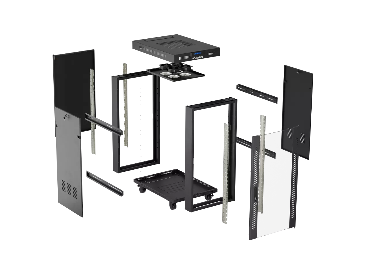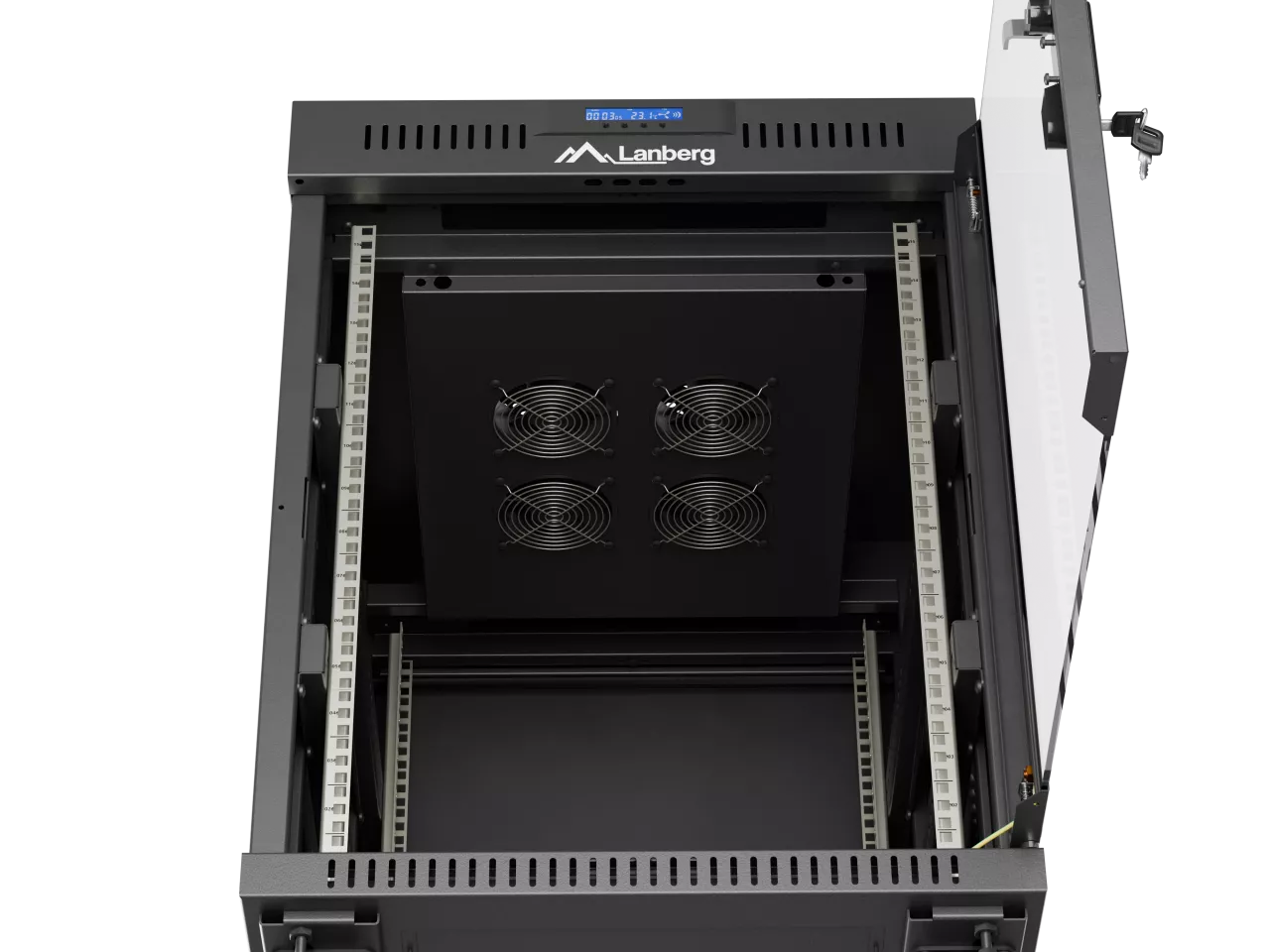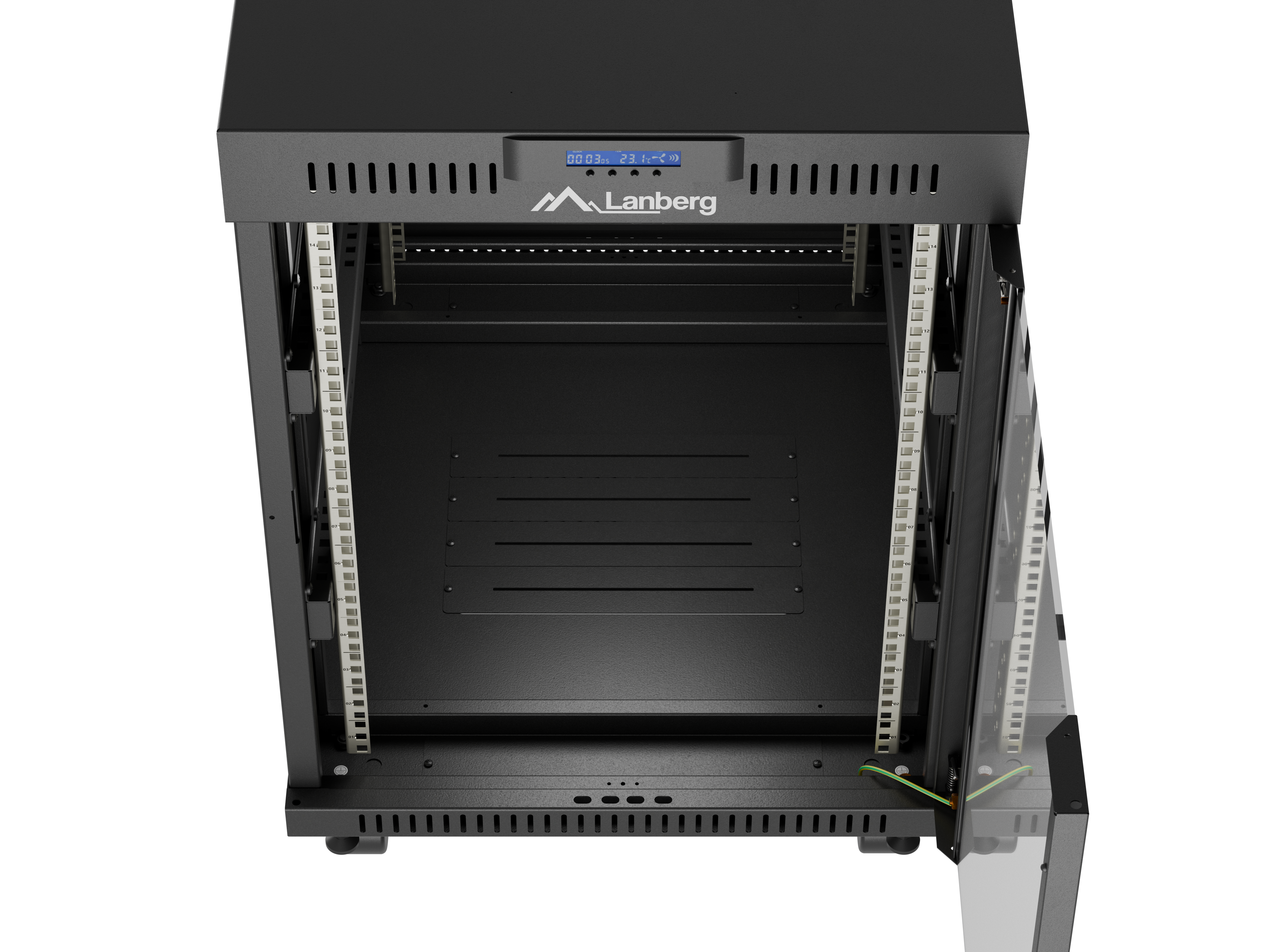 SZAFA INSTALACYJNA RACK STOJĄCA 19" 15U 600X800 CZARNA DRZWI PRZESZKLONE LCD LANBERG (FLAT PACK) V2