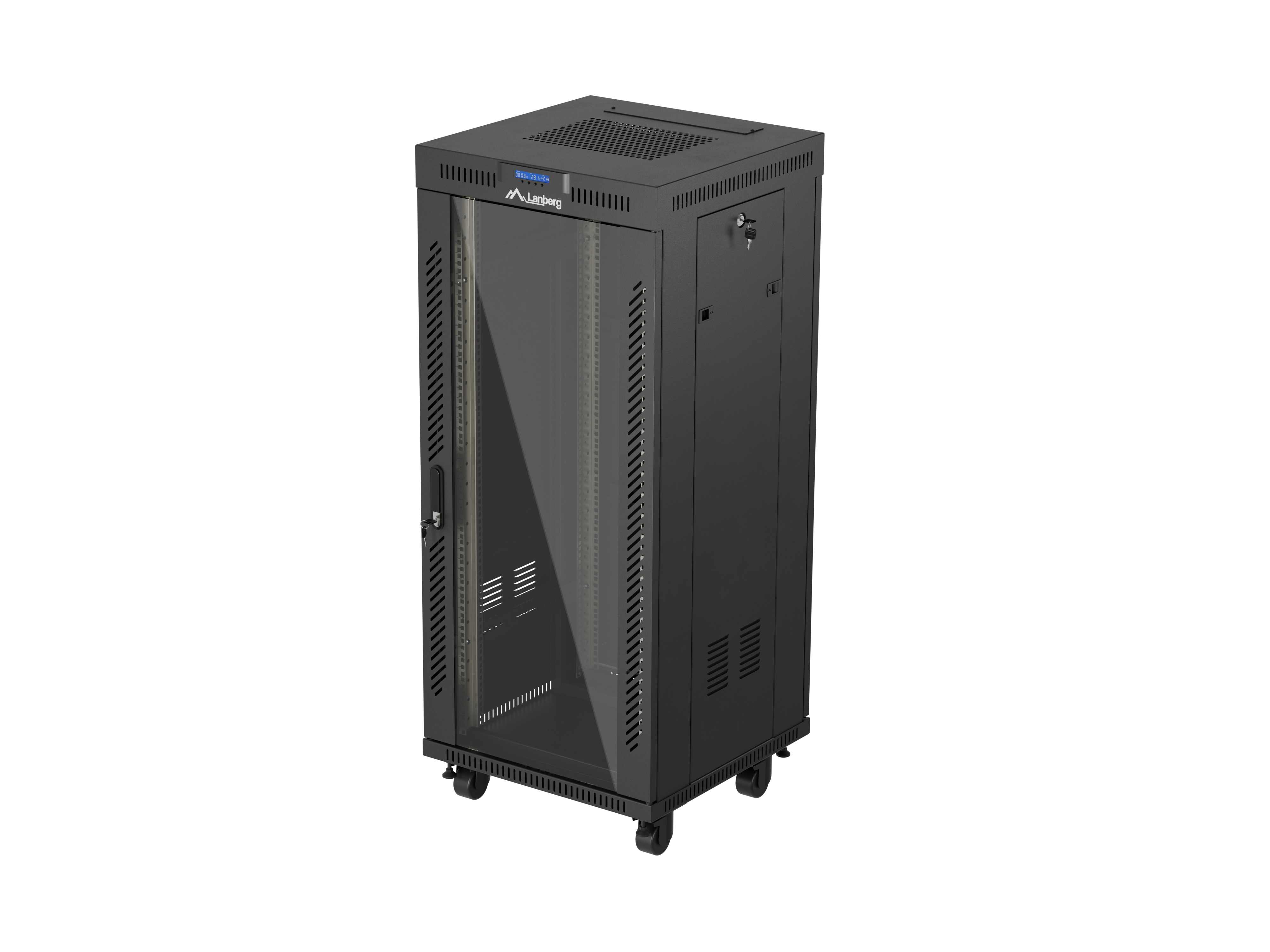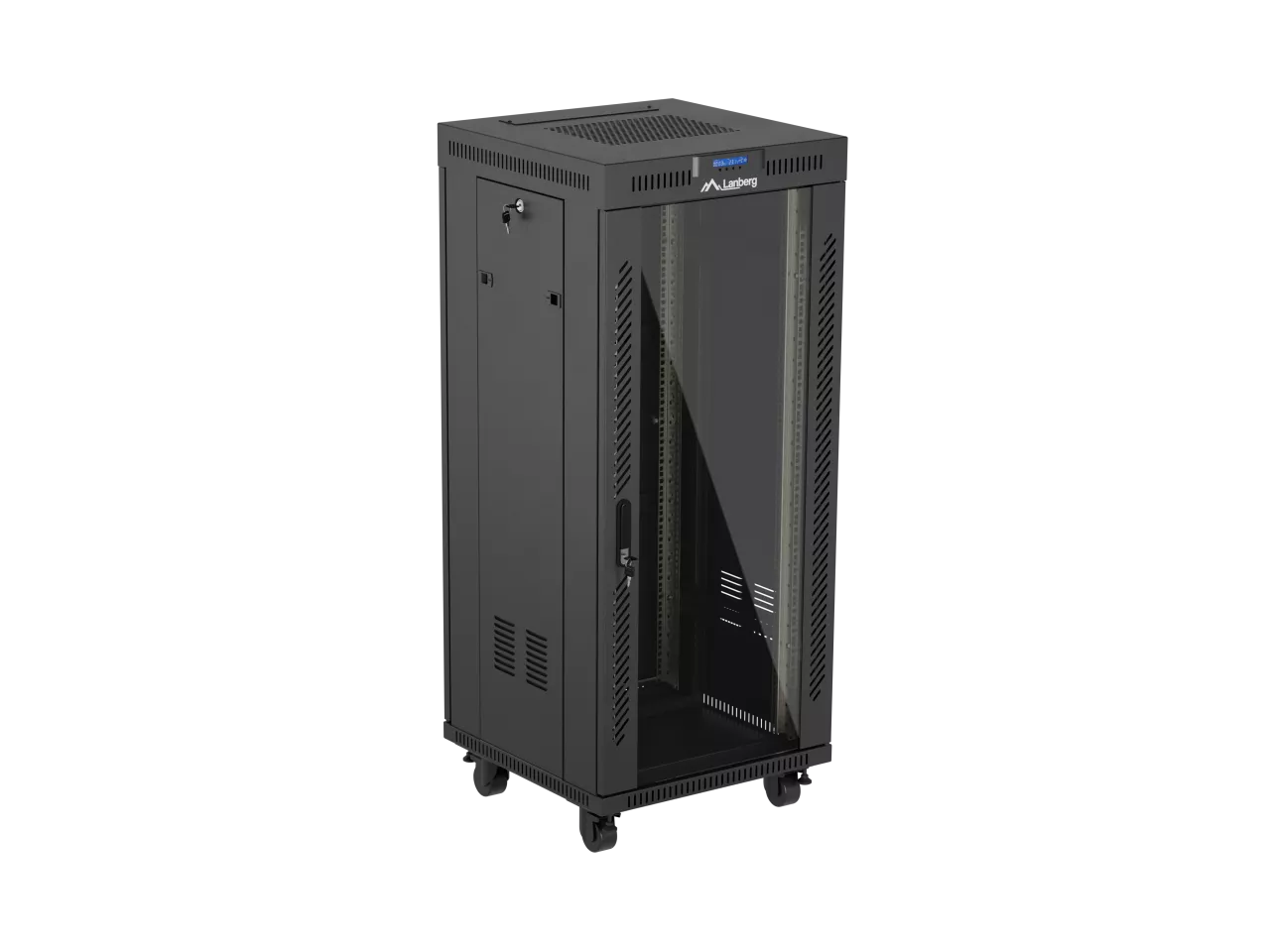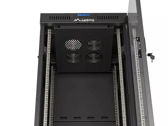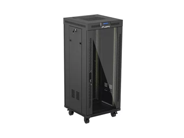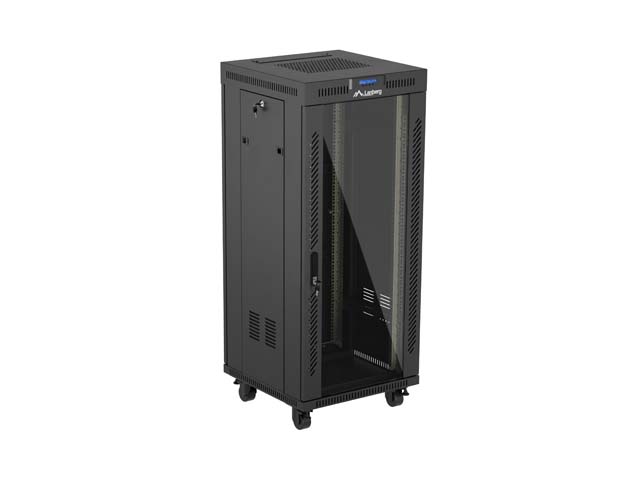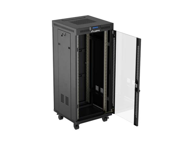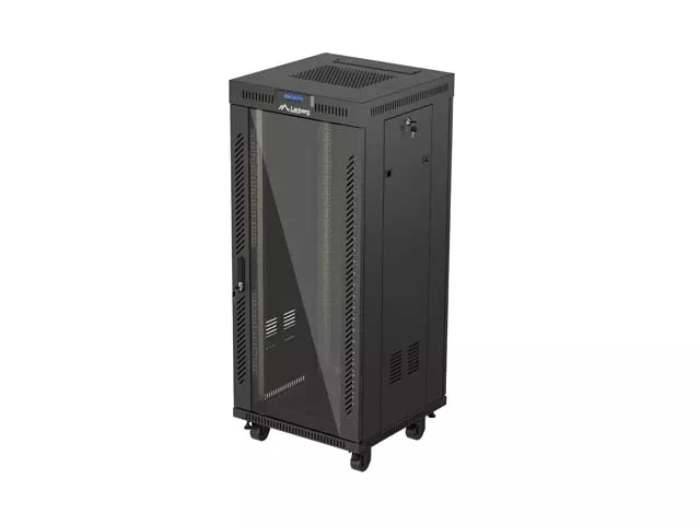 SZAFA INSTALACYJNA RACK STOJĄCA 19" 27U 600X600 CZARNA DRZWI PRZESZKLONE LCD LANBERG (FLAT PACK) V2