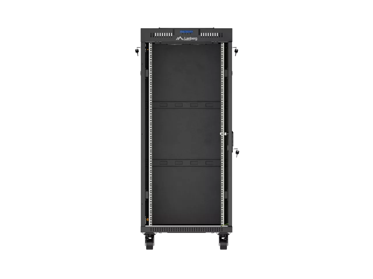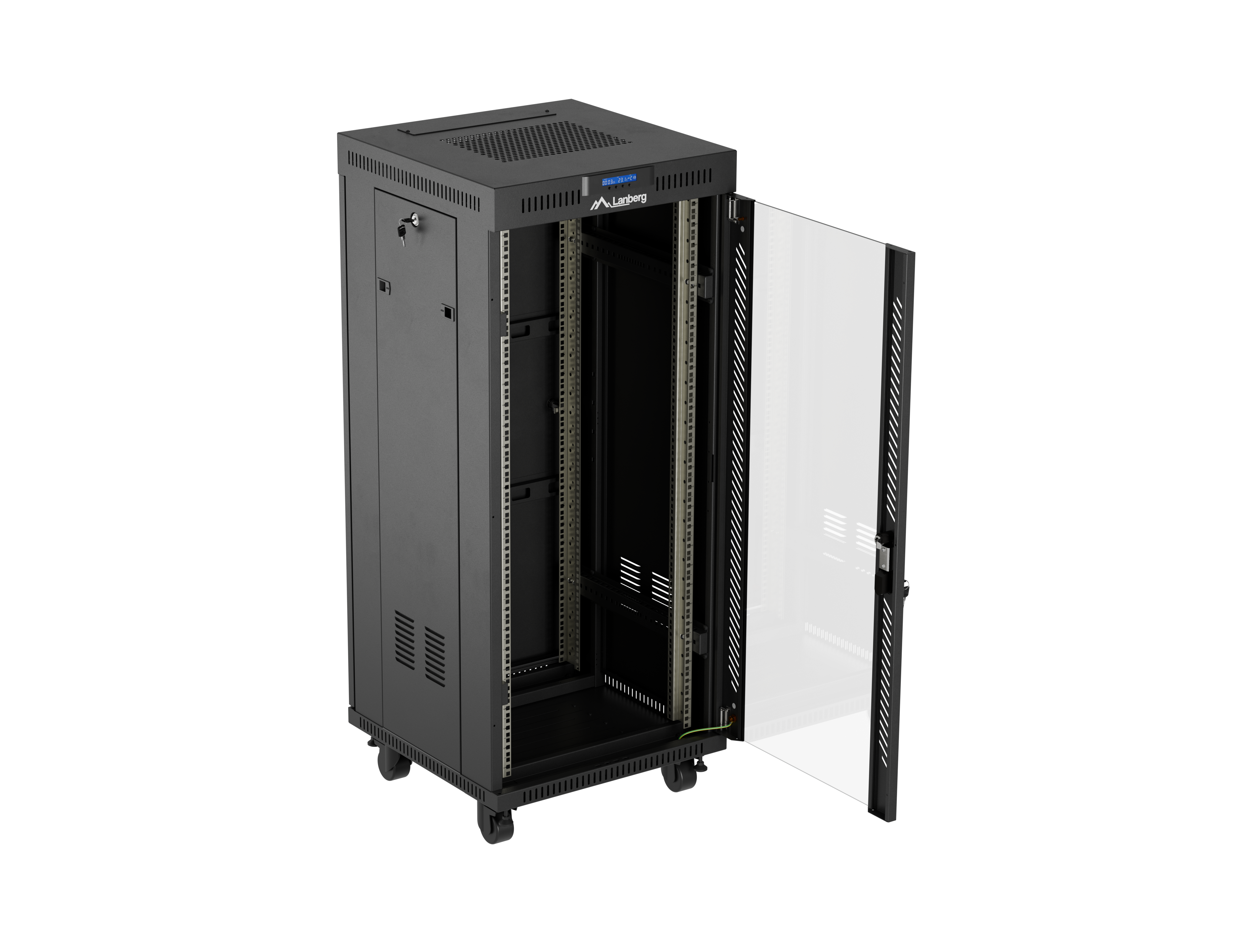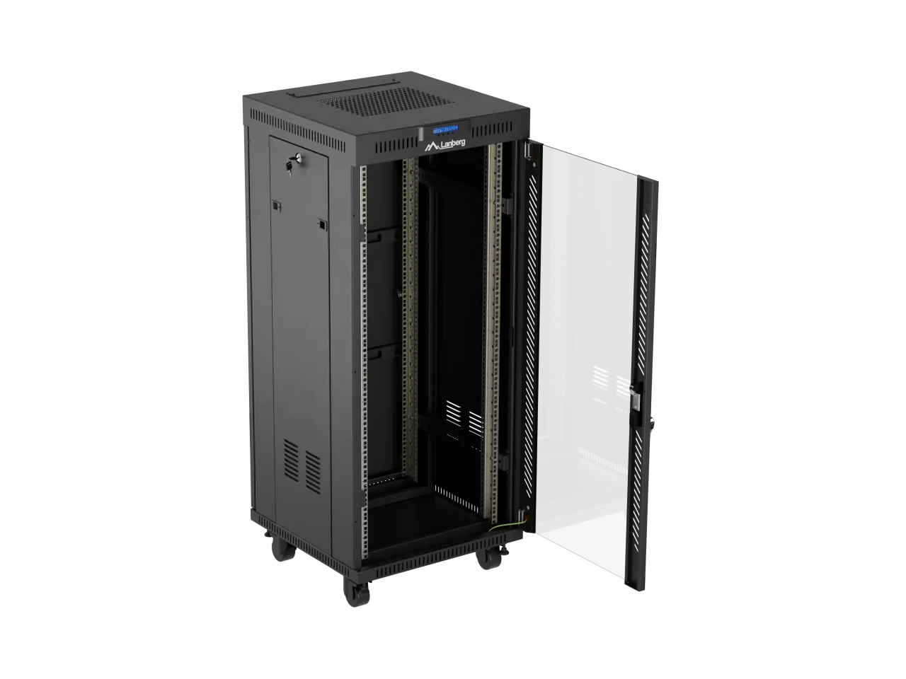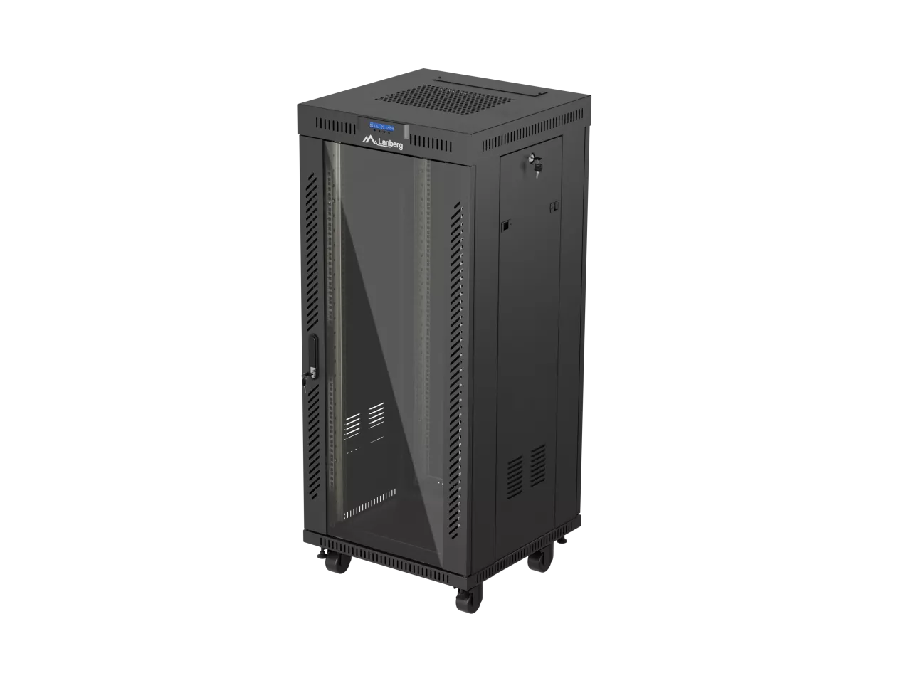 SZAFA INSTALACYJNA RACK STOJĄCA 19" 27U 600X600 CZARNA DRZWI PRZESZKLONE LCD LANBERG (FLAT PACK) V2
