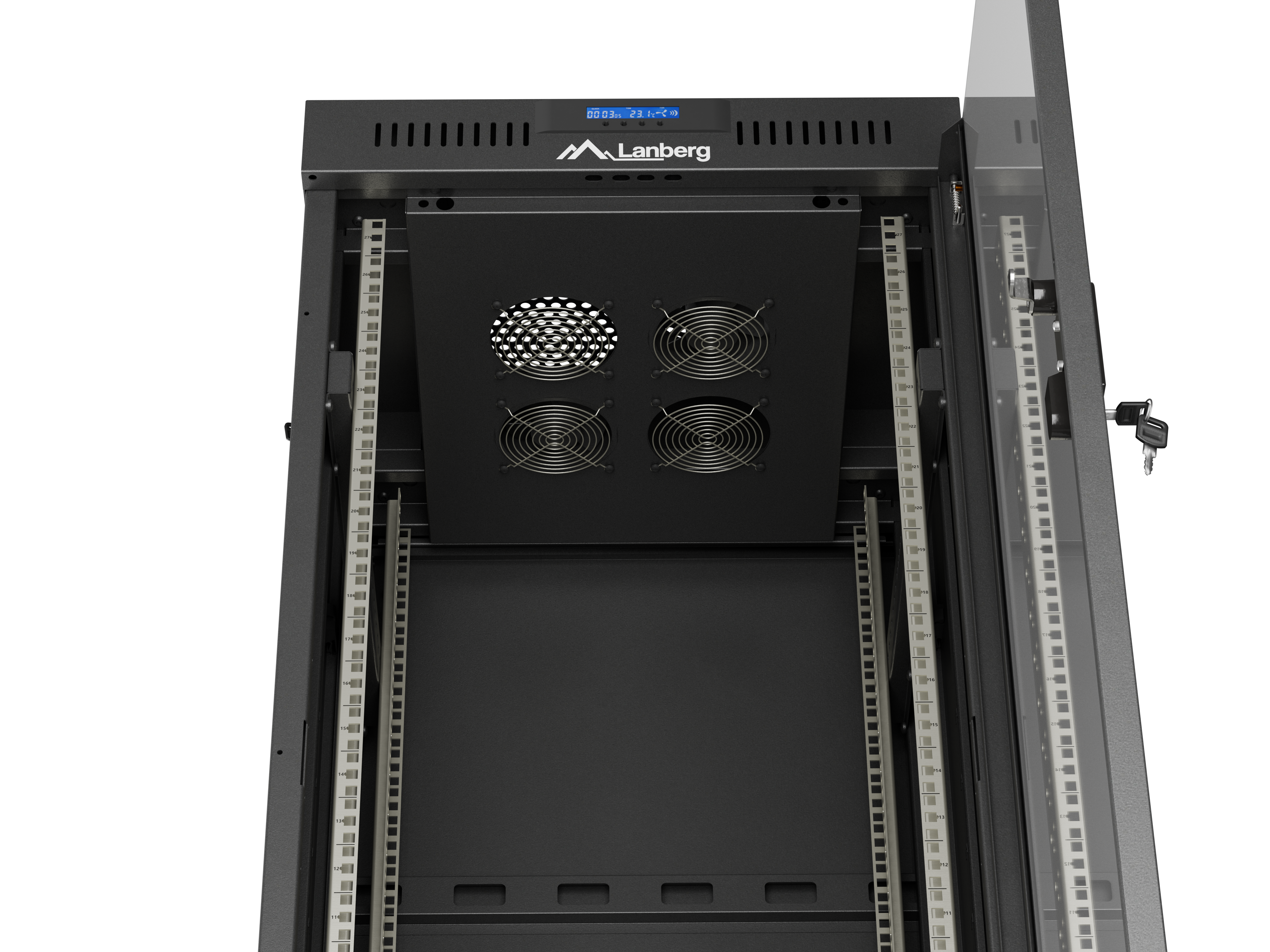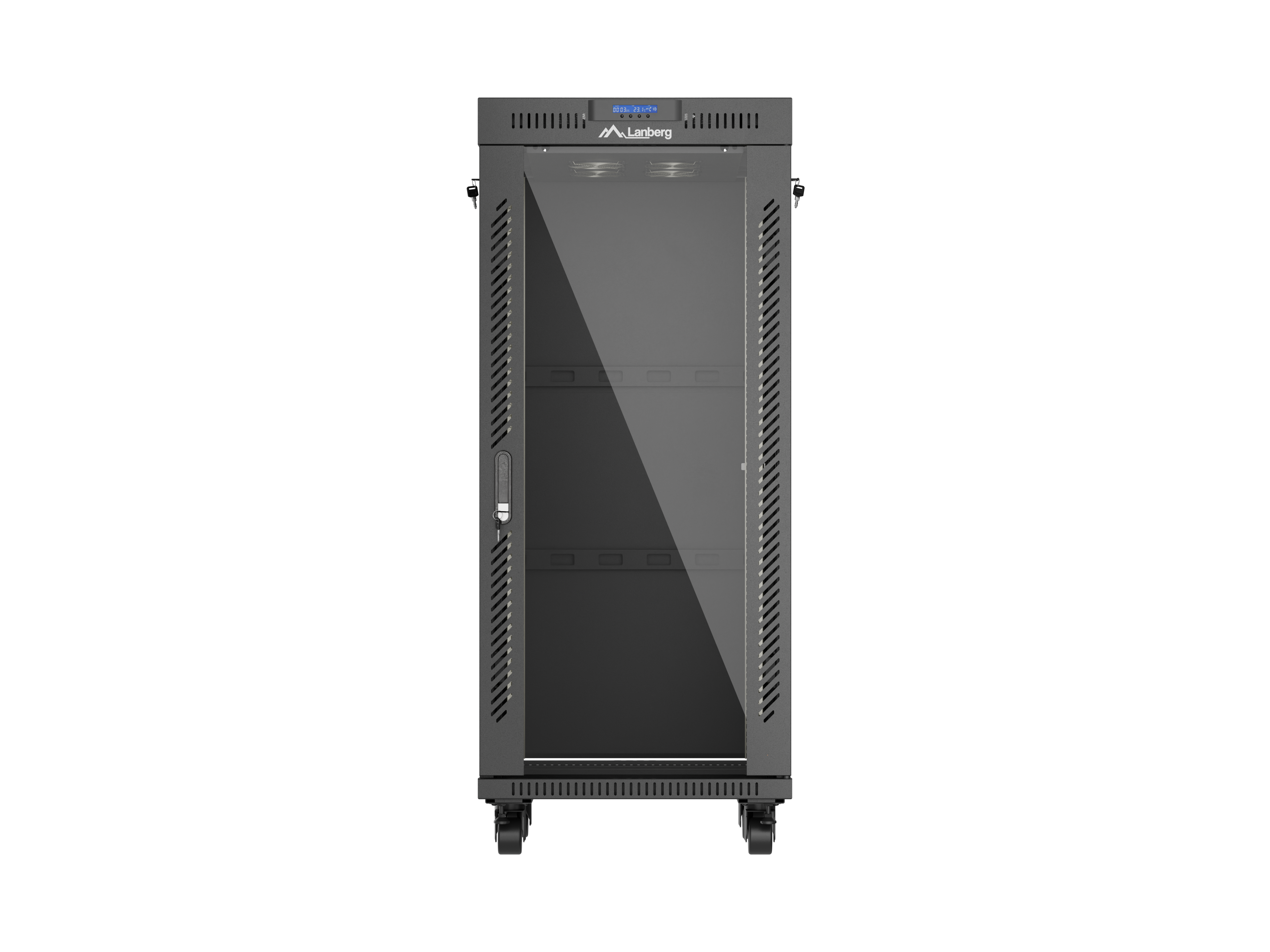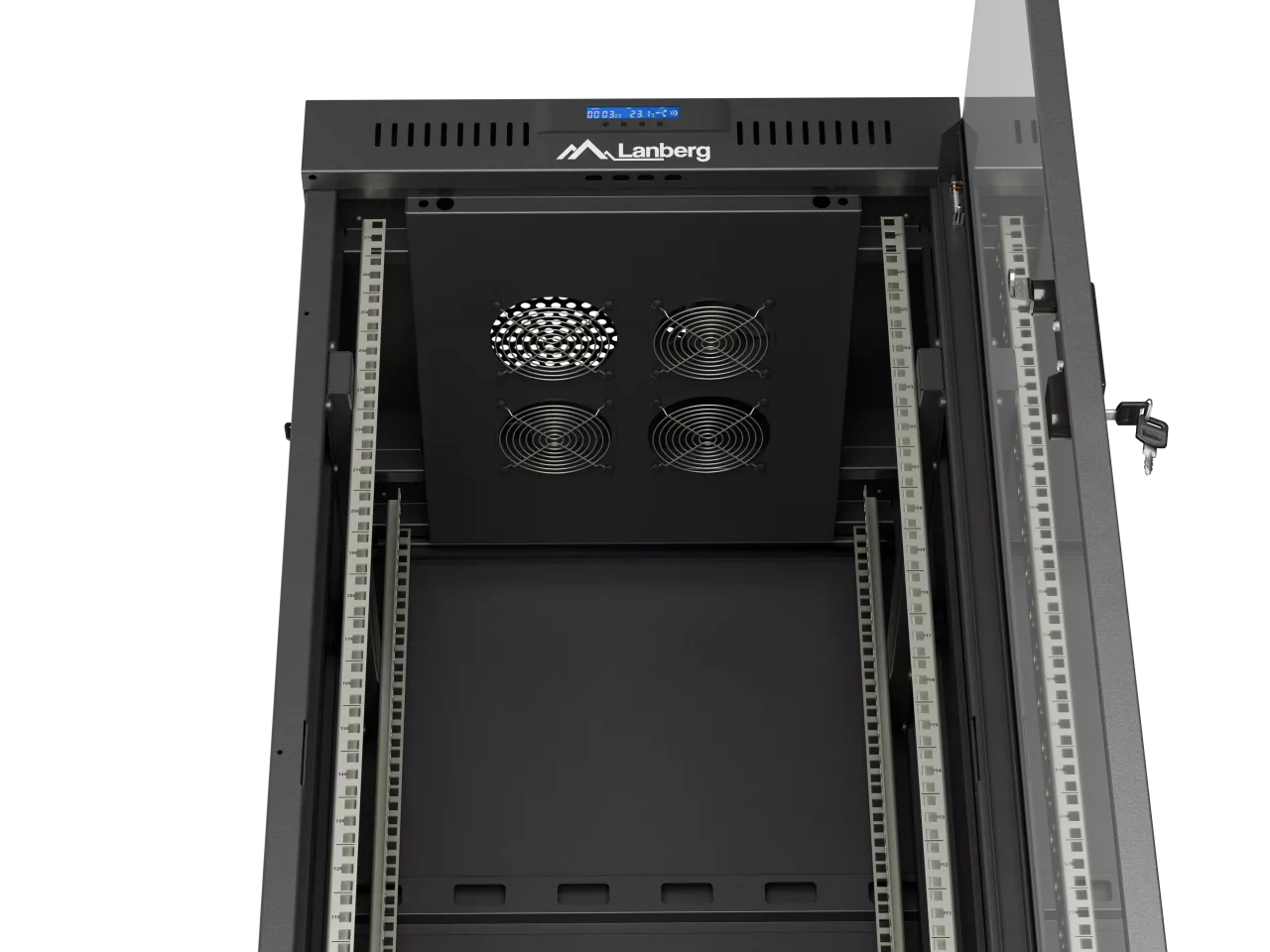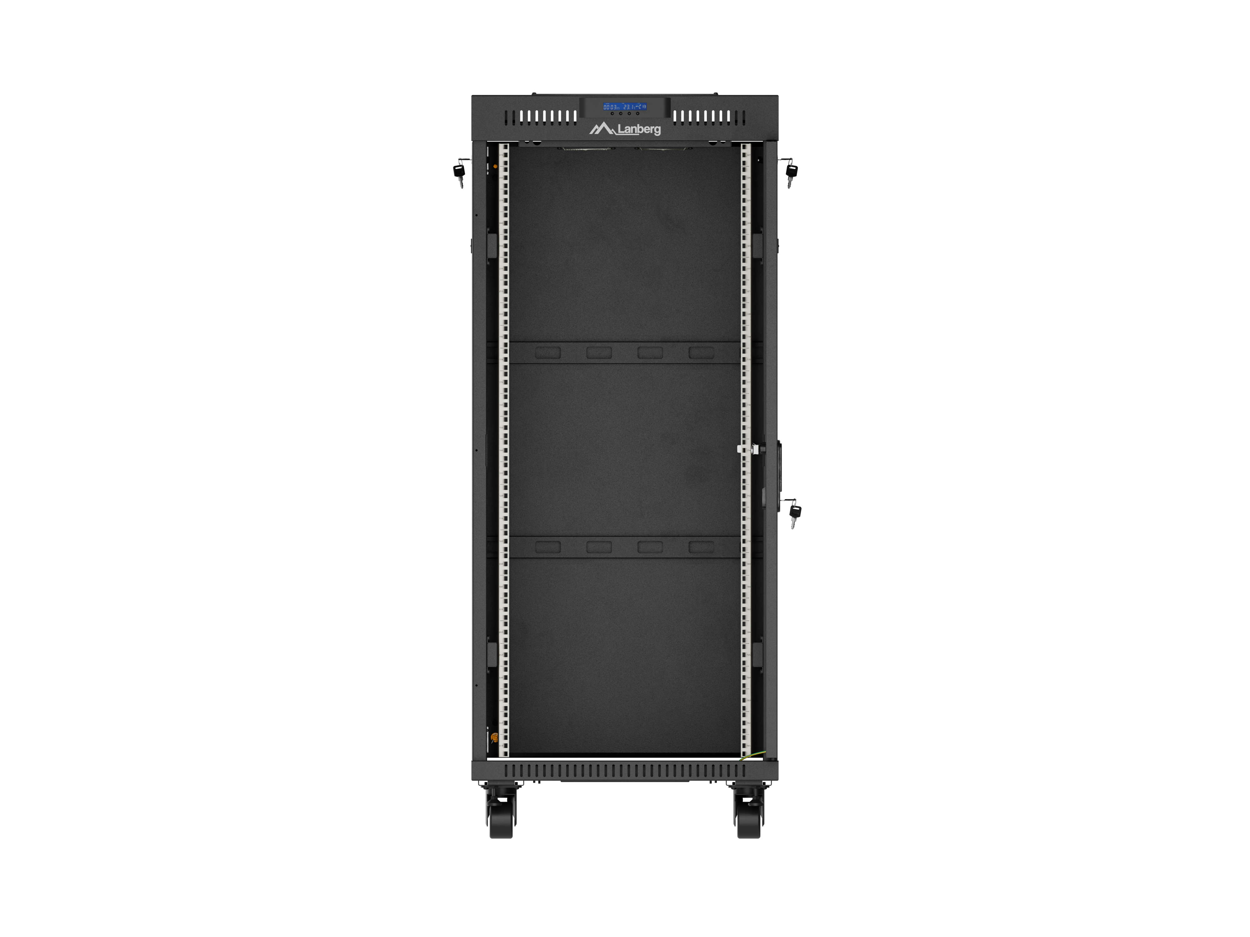 SZAFA INSTALACYJNA RACK STOJĄCA 19" 27U 600X600 CZARNA DRZWI PRZESZKLONE LCD LANBERG (FLAT PACK) V2