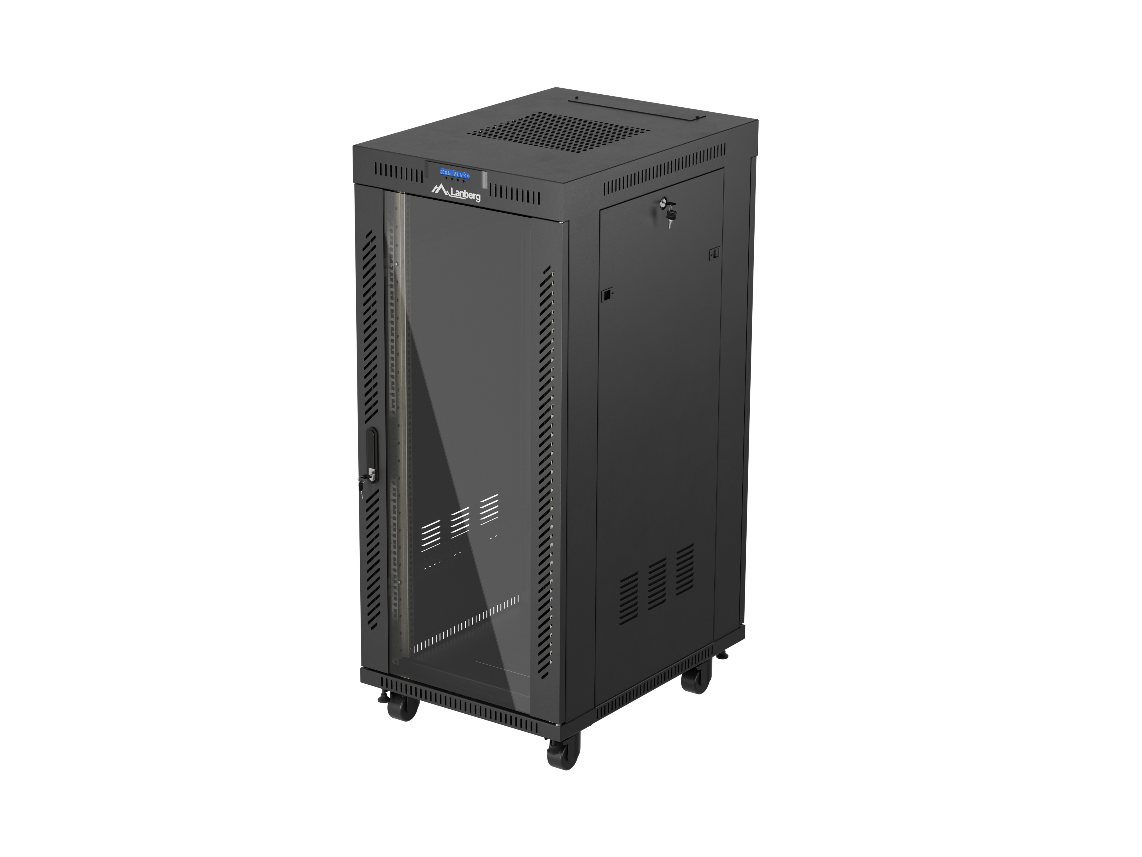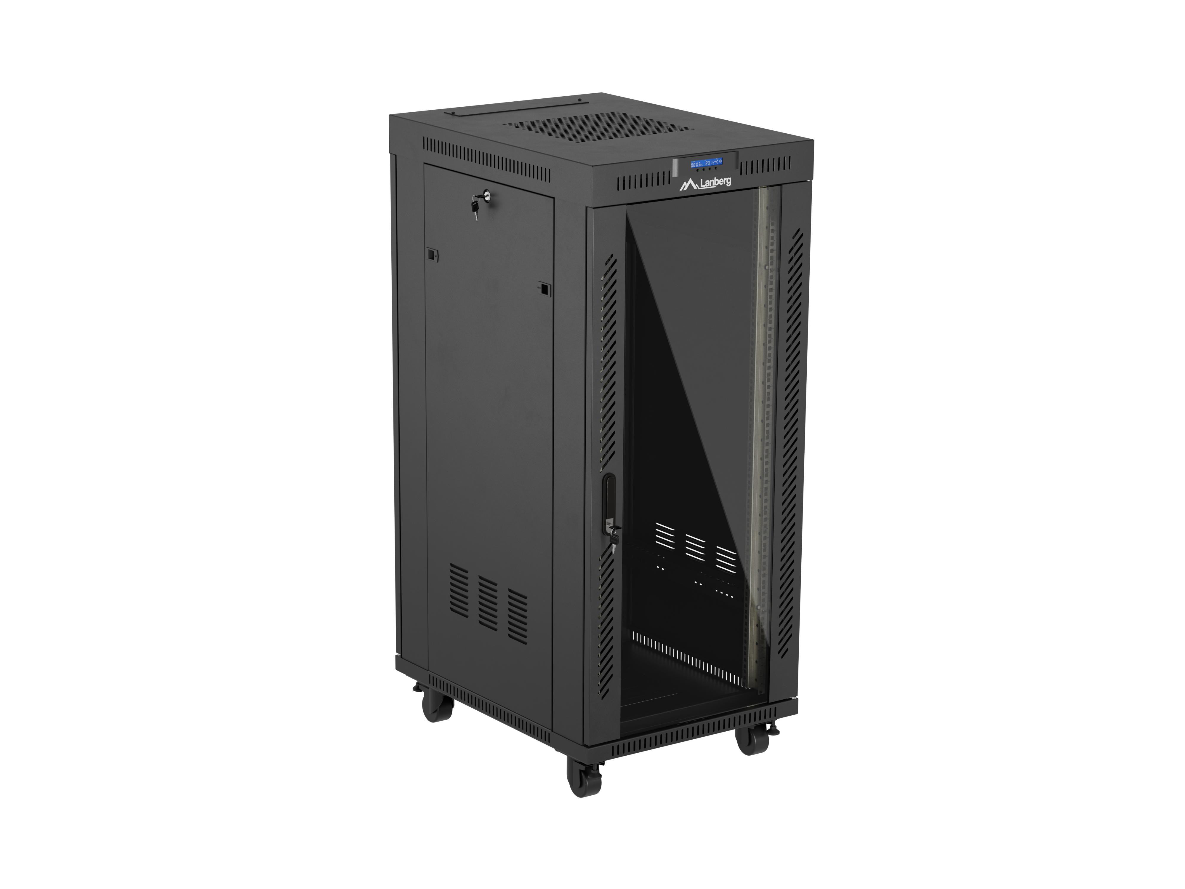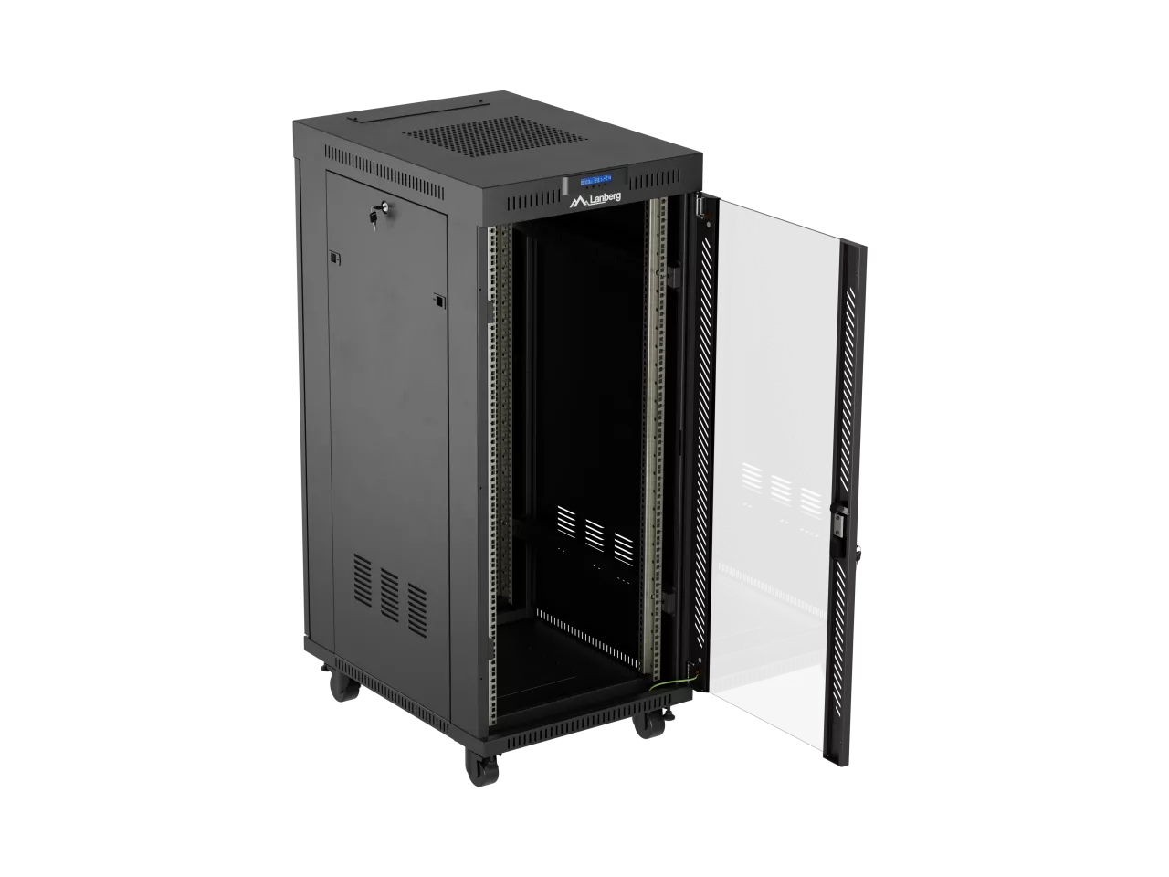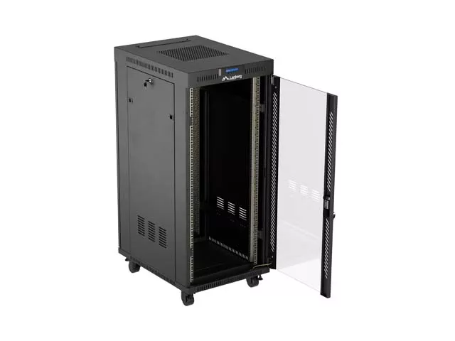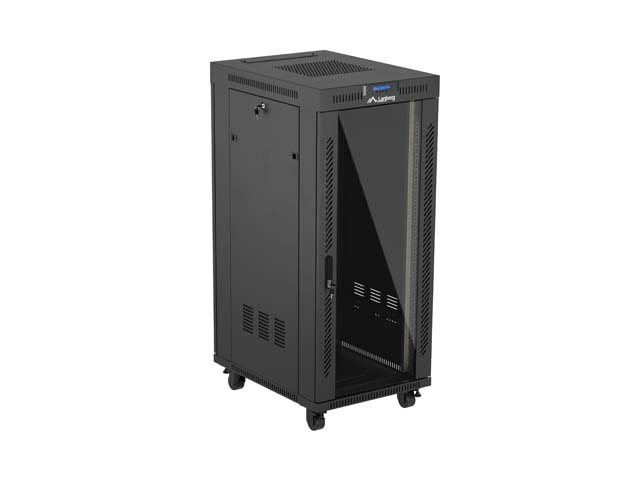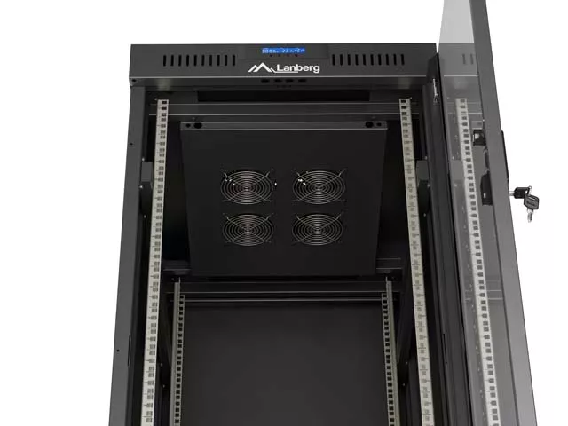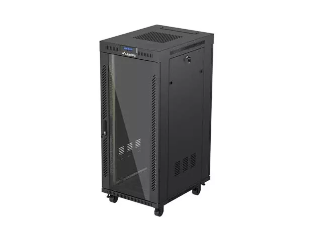 SZAFA INSTALACYJNA RACK STOJĄCA 19" 27U 600X800 CZARNA DRZWI PRZESZKLONE LCD LANBERG (FLAT PACK) V2
