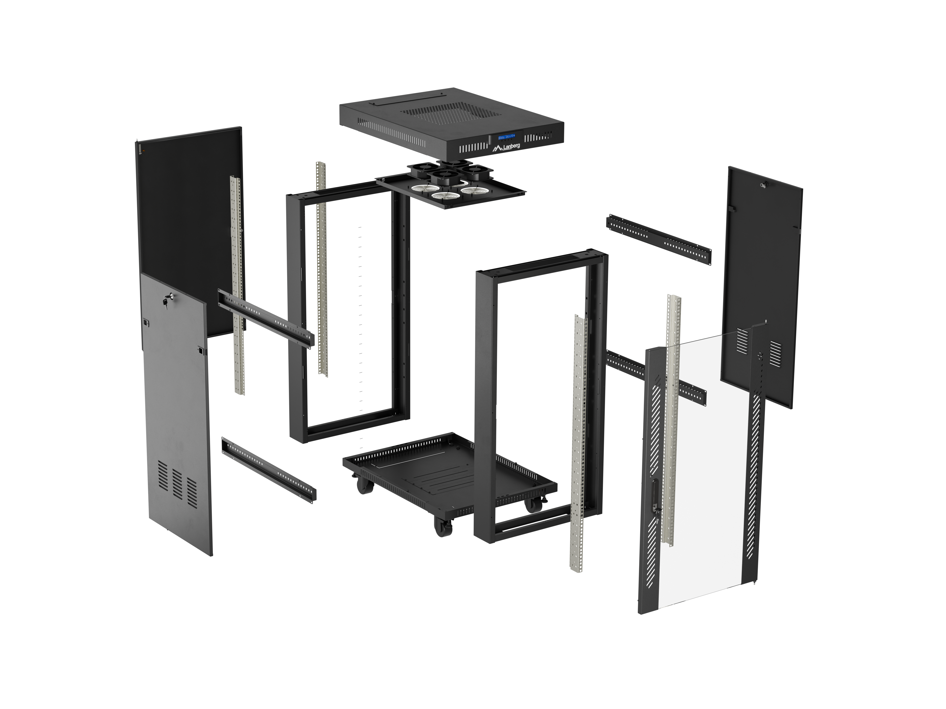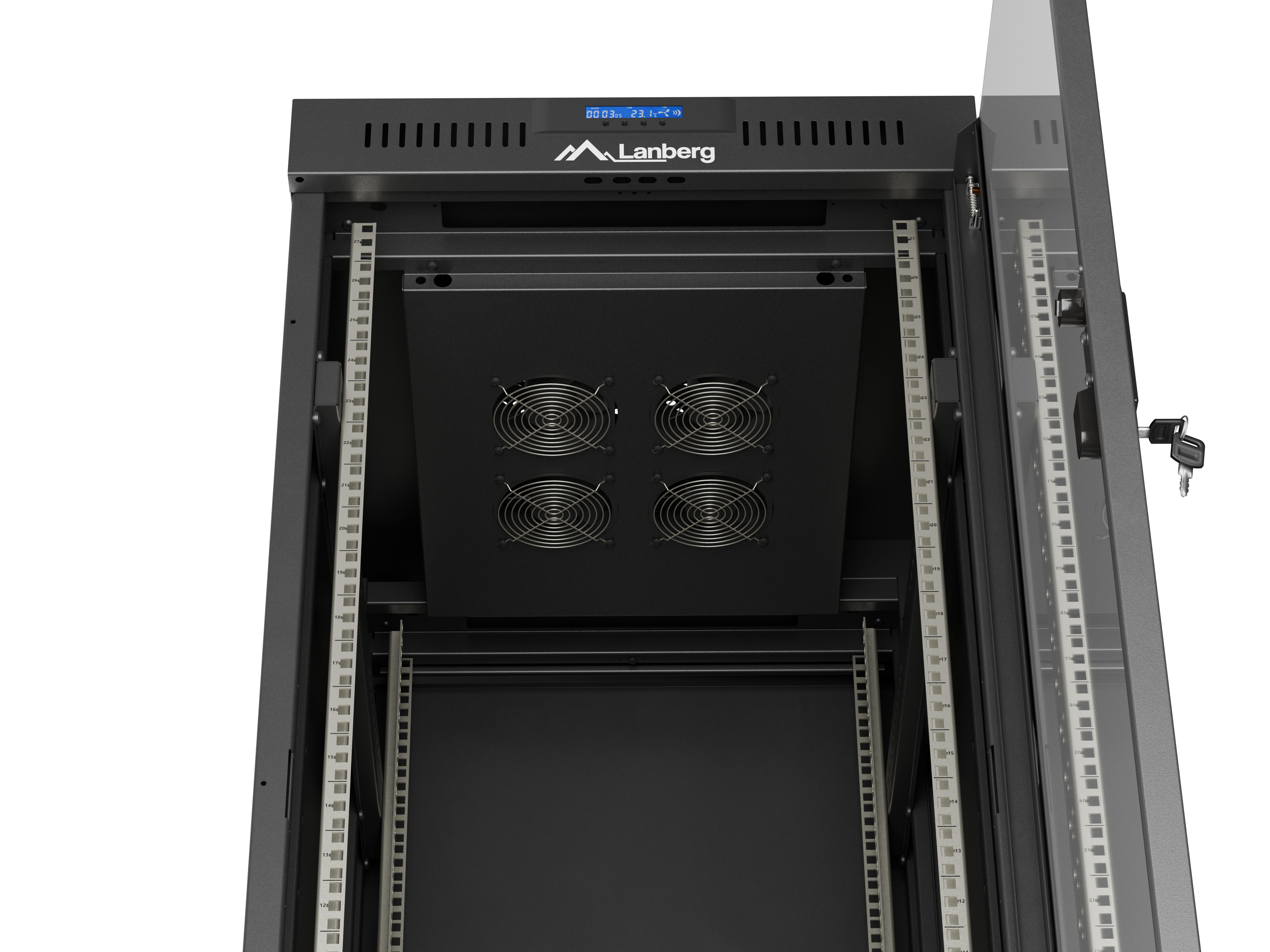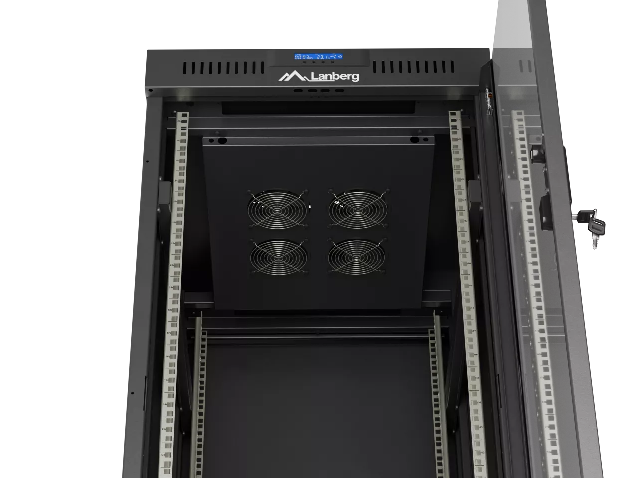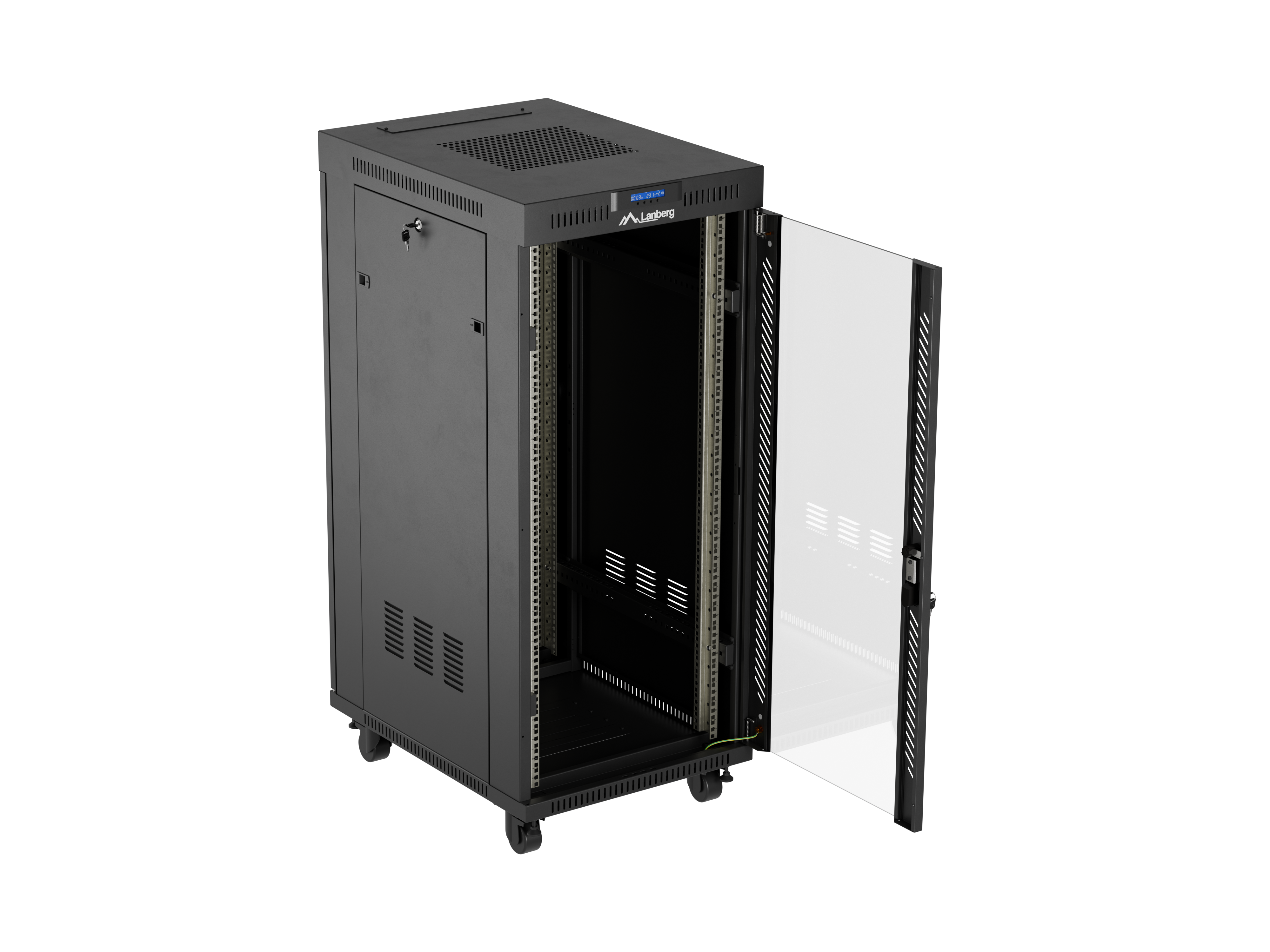 SZAFA INSTALACYJNA RACK STOJĄCA 19" 27U 600X800 CZARNA DRZWI PRZESZKLONE LCD LANBERG (FLAT PACK) V2