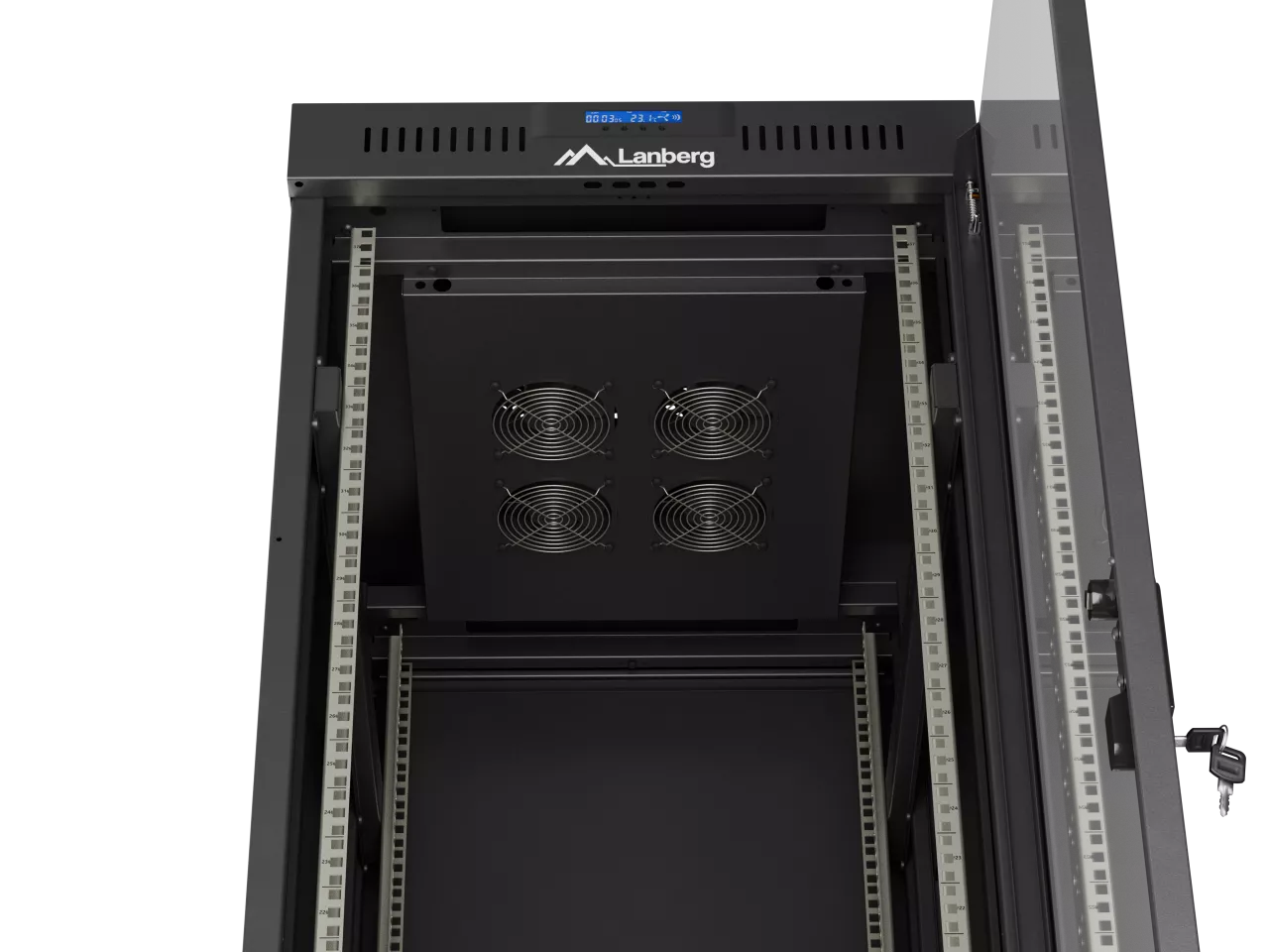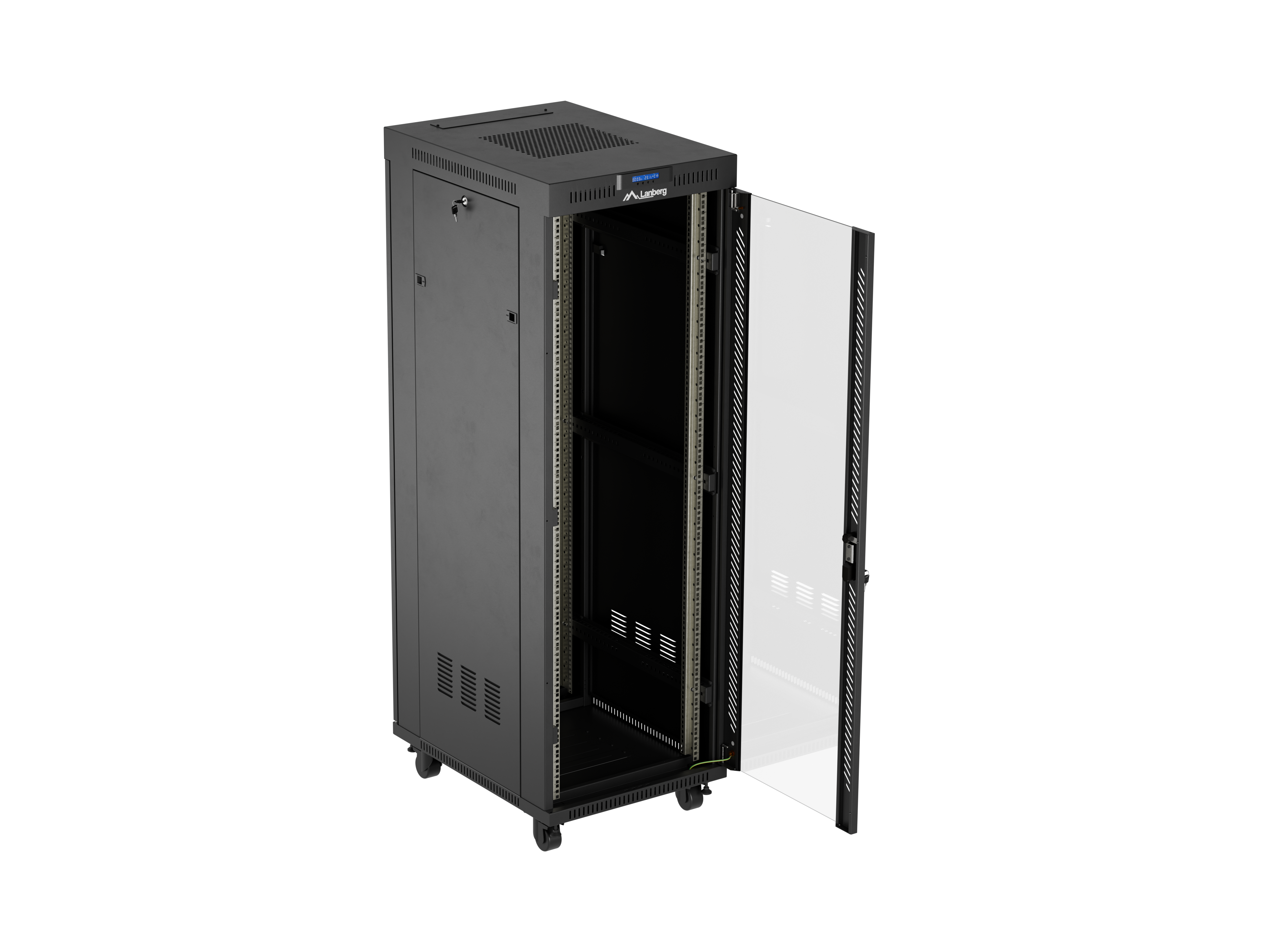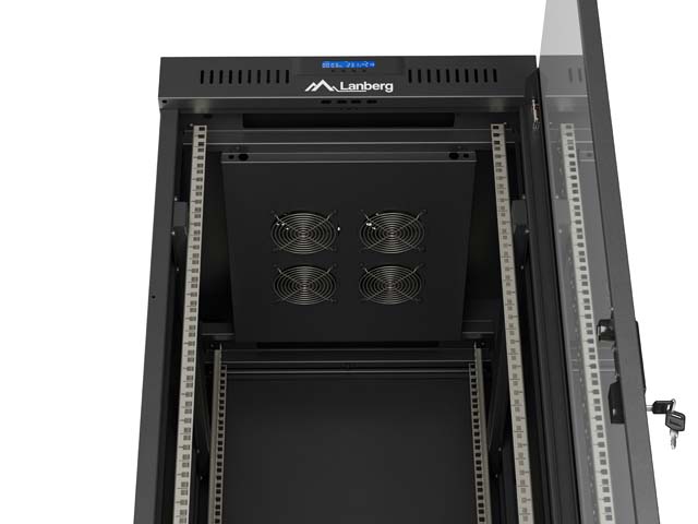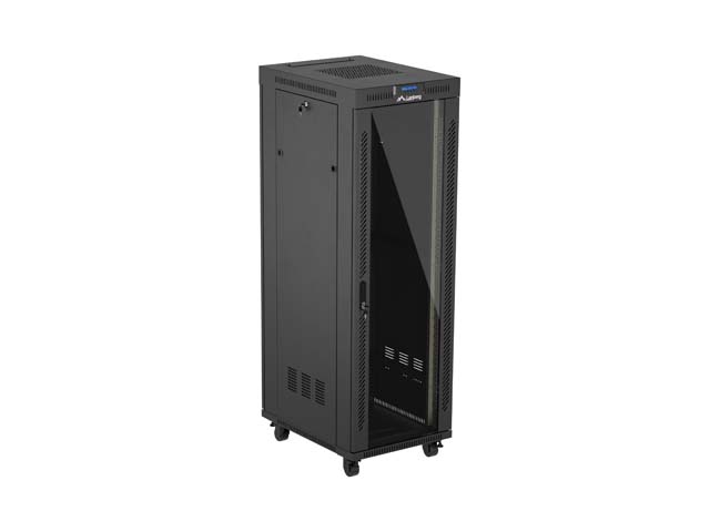 SZAFA INSTALACYJNA RACK STOJĄCA 19" 37U 600X800 CZARNA DRZWI PRZESZKLONE LCD LANBERG (FLAT PACK) V2