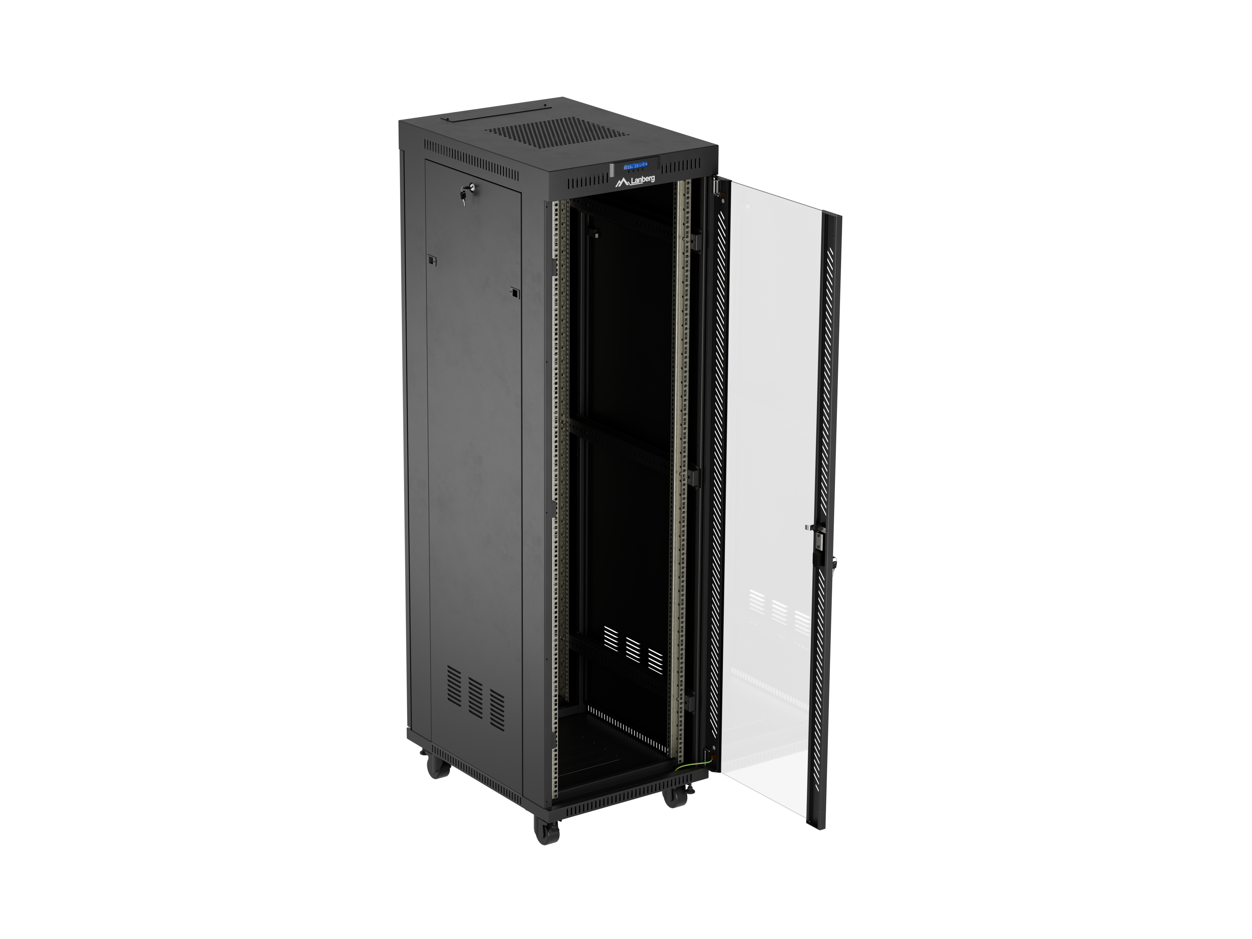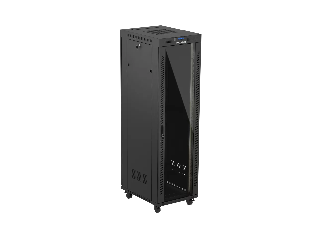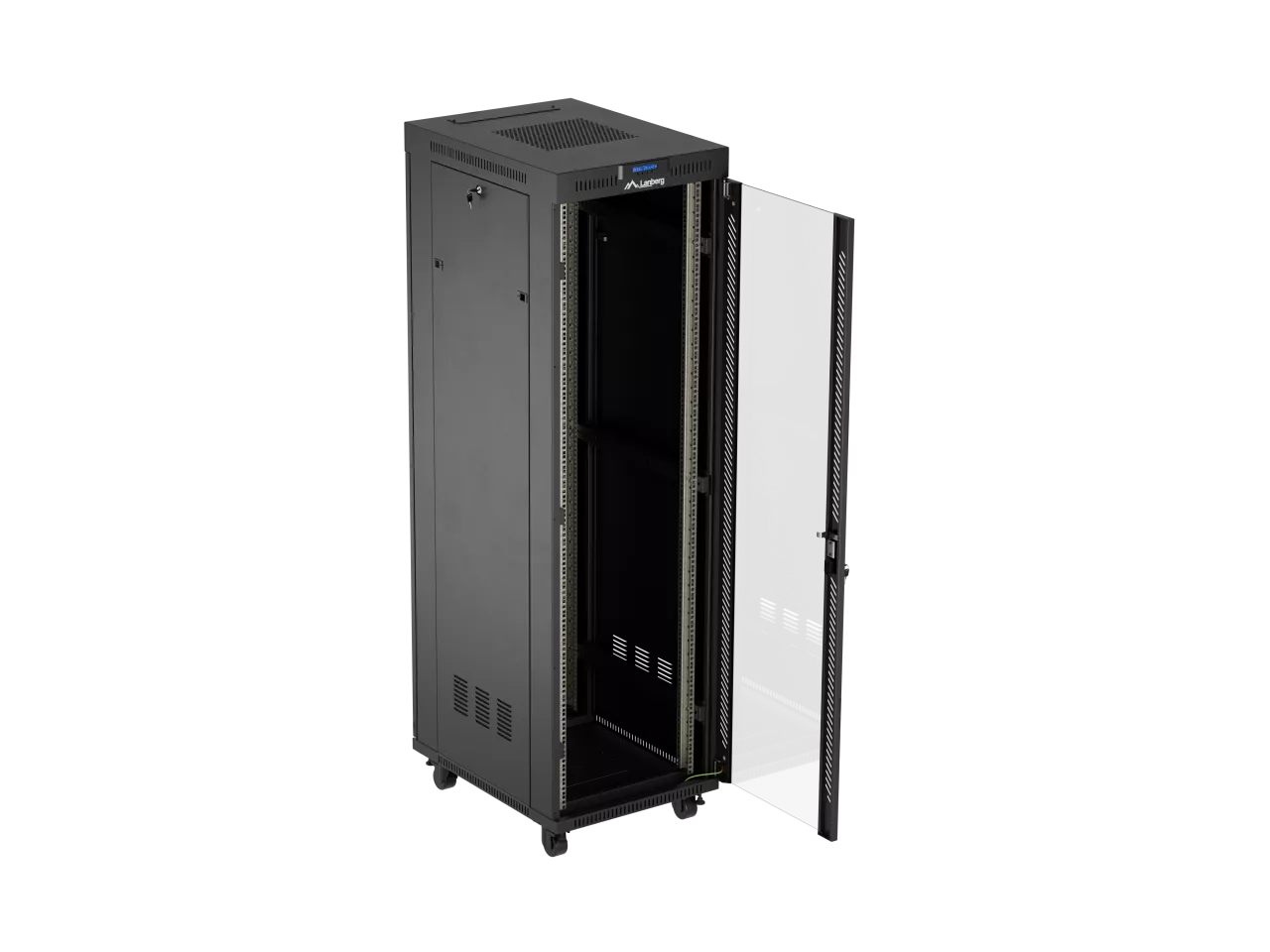 SZAFA INSTALACYJNA RACK STOJĄCA 19" 42U 600X800 CZARNA DRZWI PRZESZKLONE LCD LANBERG (FLAT PACK) V2