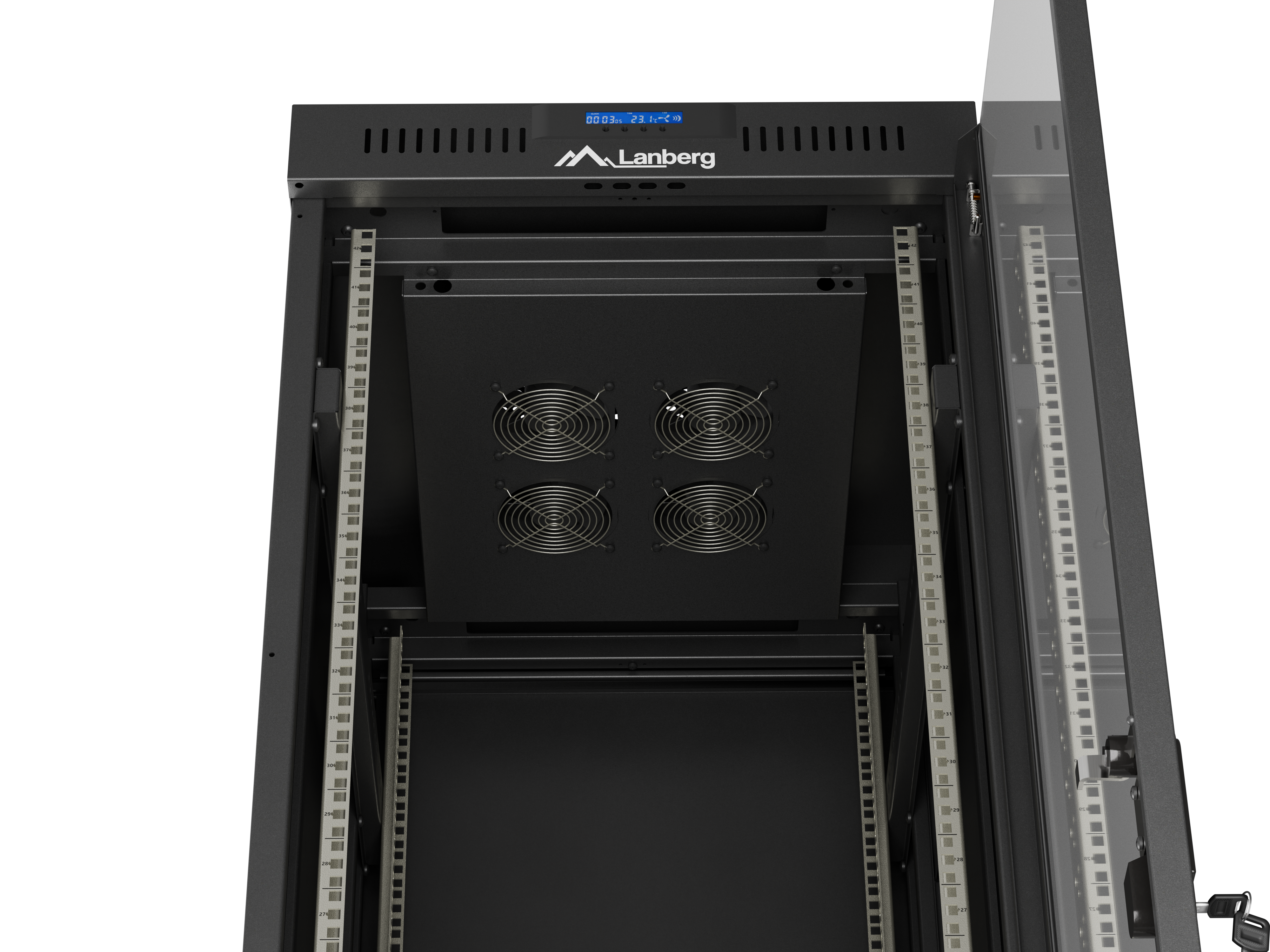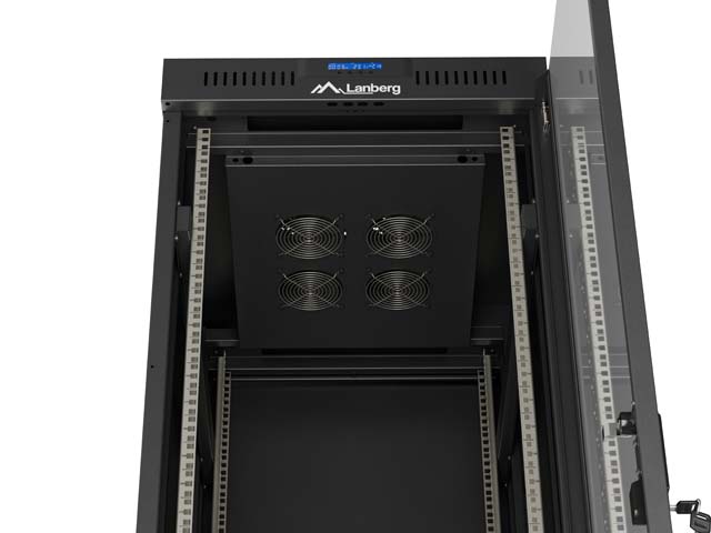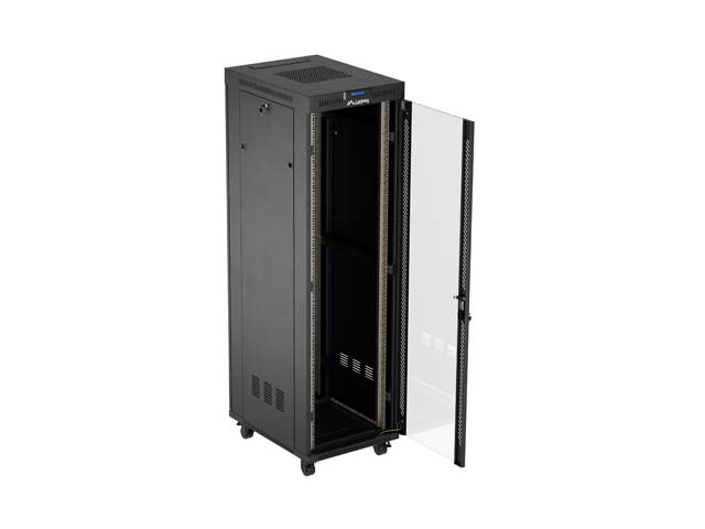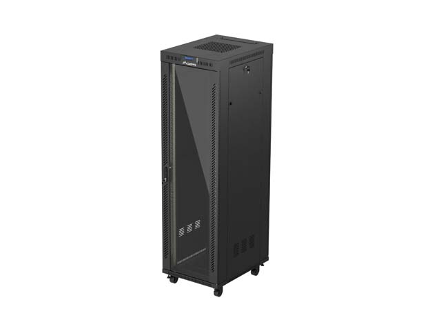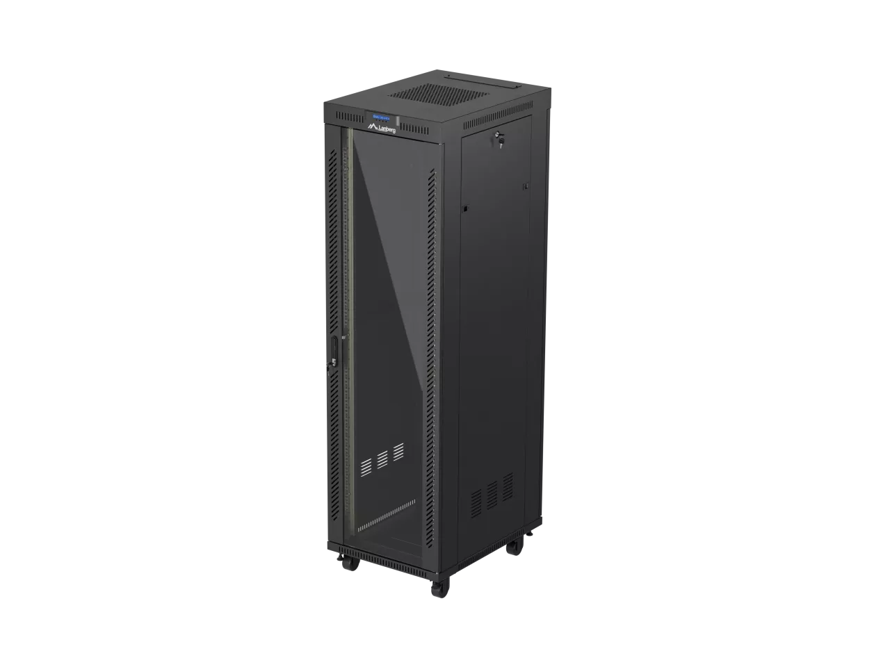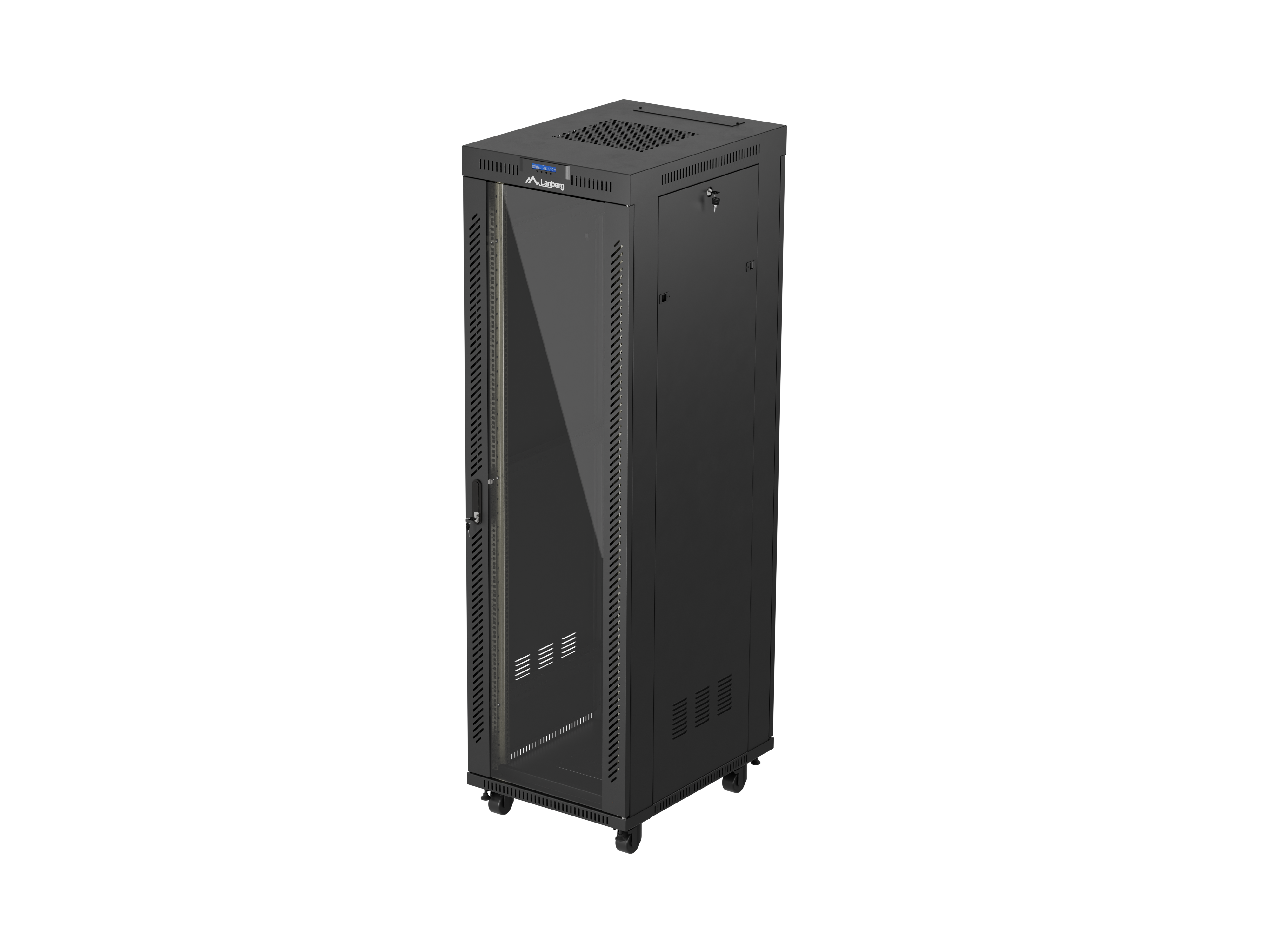 SZAFA INSTALACYJNA RACK STOJĄCA 19" 42U 600X800 CZARNA DRZWI PRZESZKLONE LCD LANBERG (FLAT PACK) V2