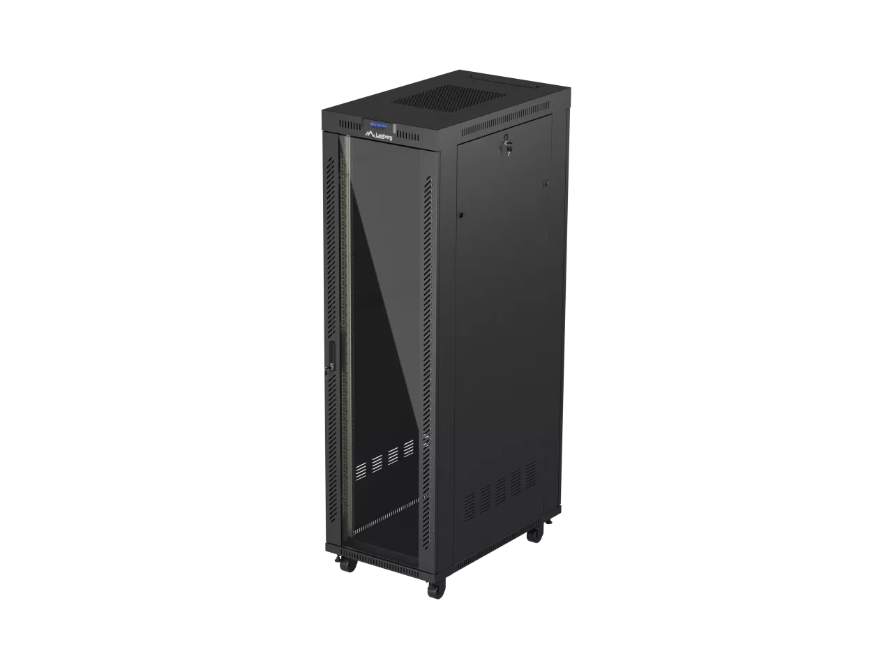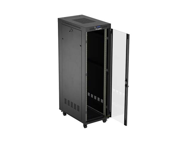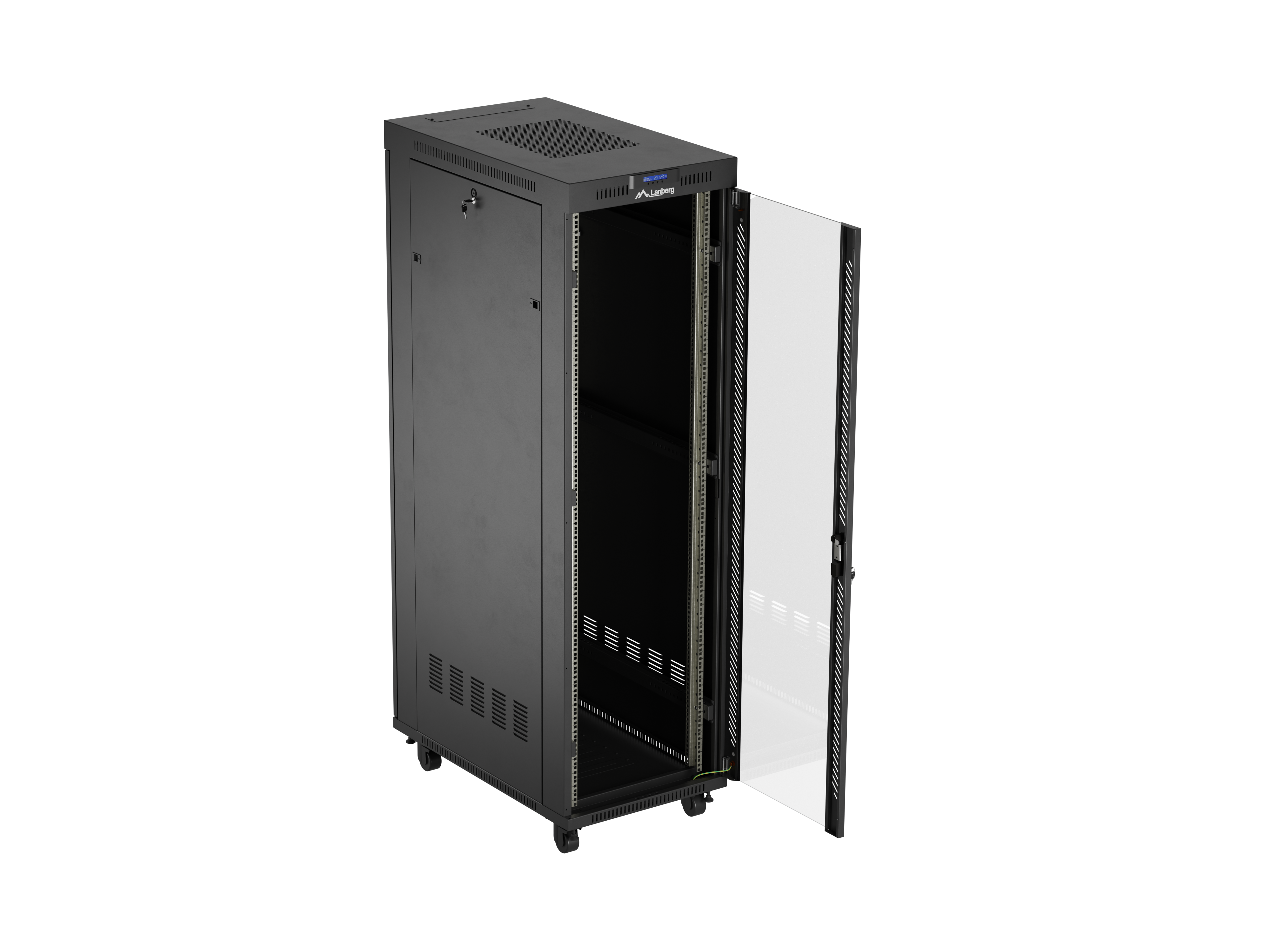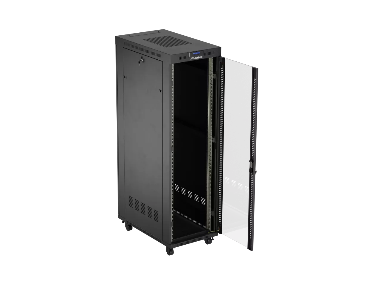 SZAFA INSTALACYJNA RACK STOJĄCA 19" 42U 600X1000 CZARNA DRZWI PRZESZKLONE LCD LANBERG (FLAT PACK) V2