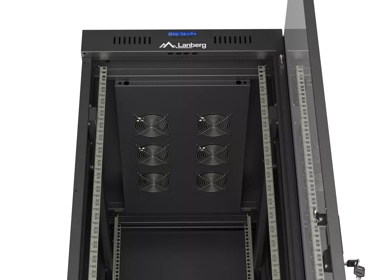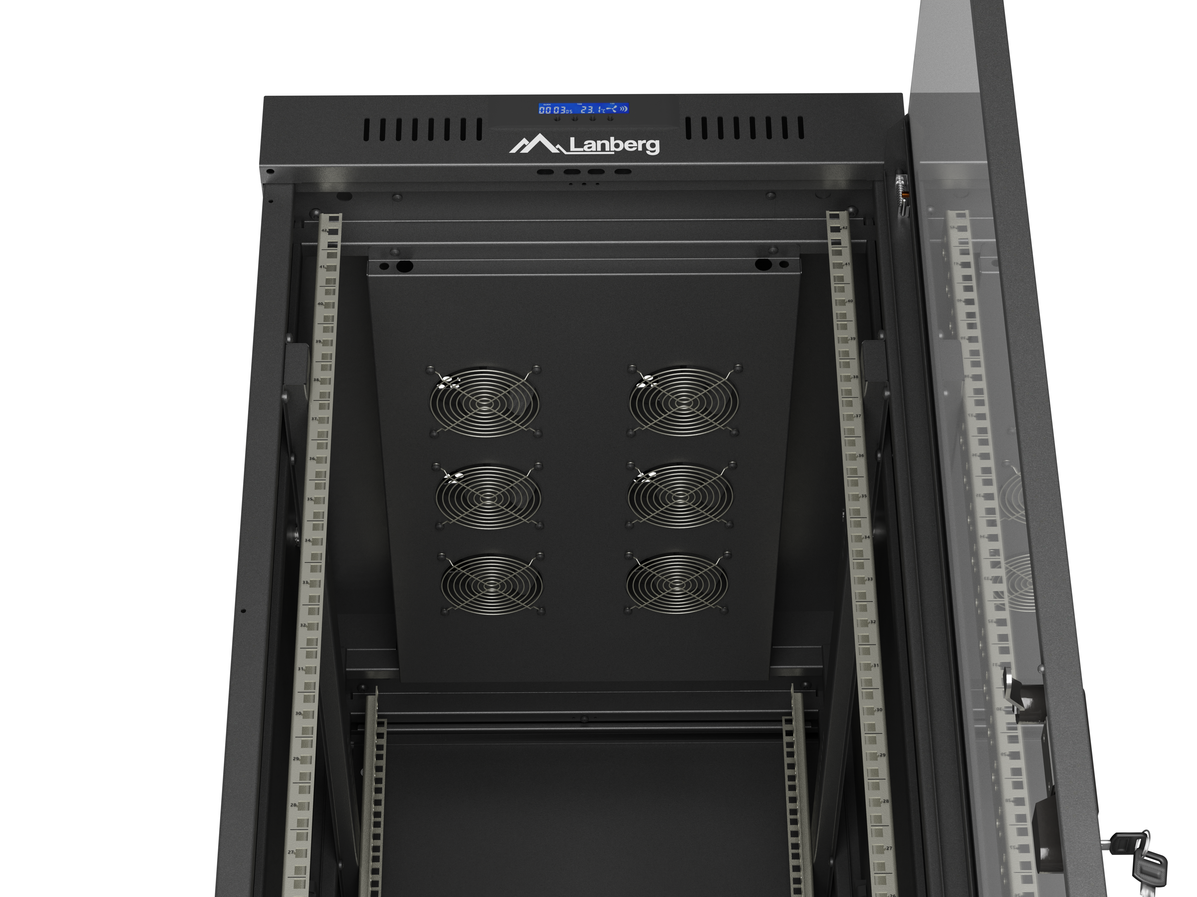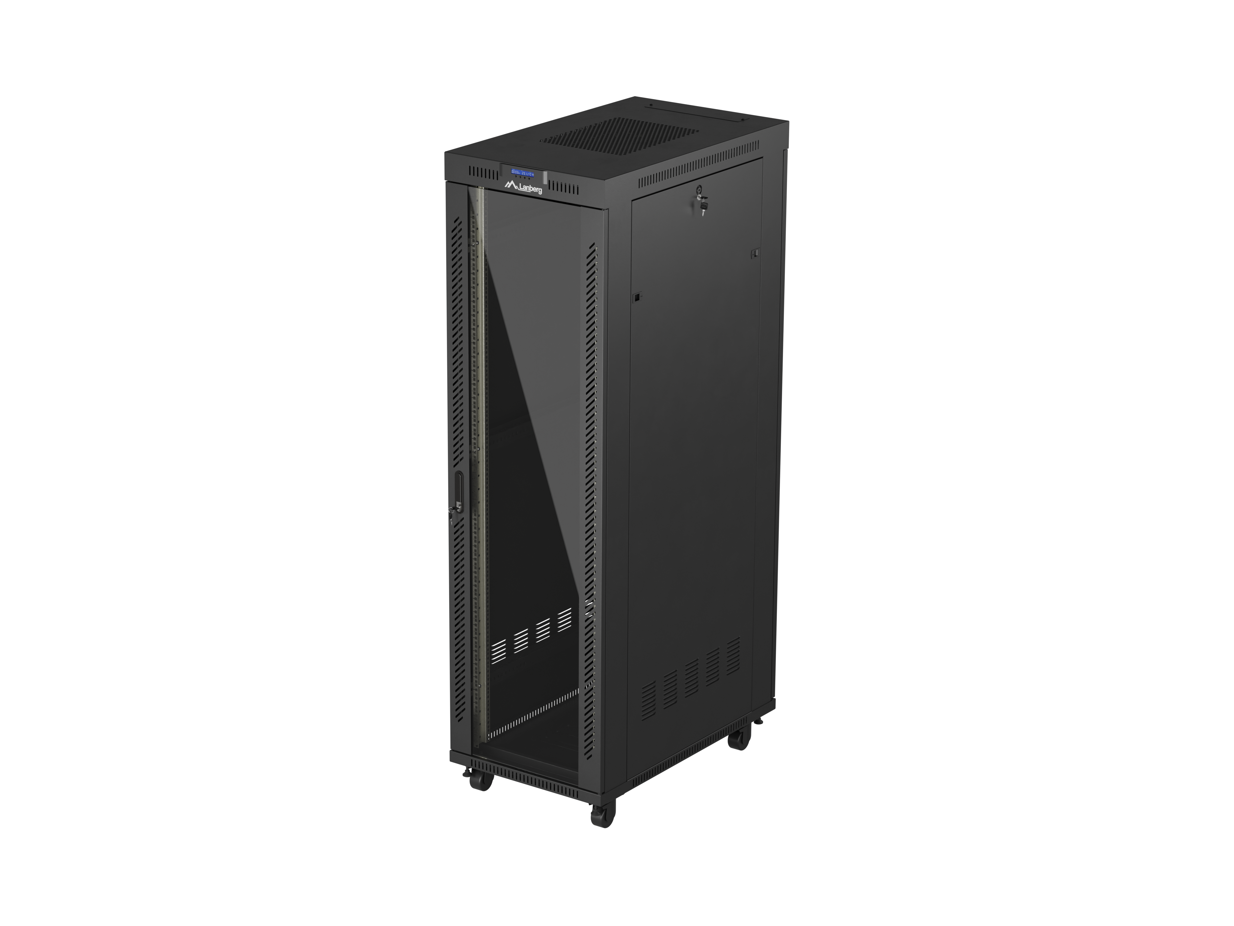 SZAFA INSTALACYJNA RACK STOJĄCA 19" 42U 600X1000 CZARNA DRZWI PRZESZKLONE LCD LANBERG (FLAT PACK) V2