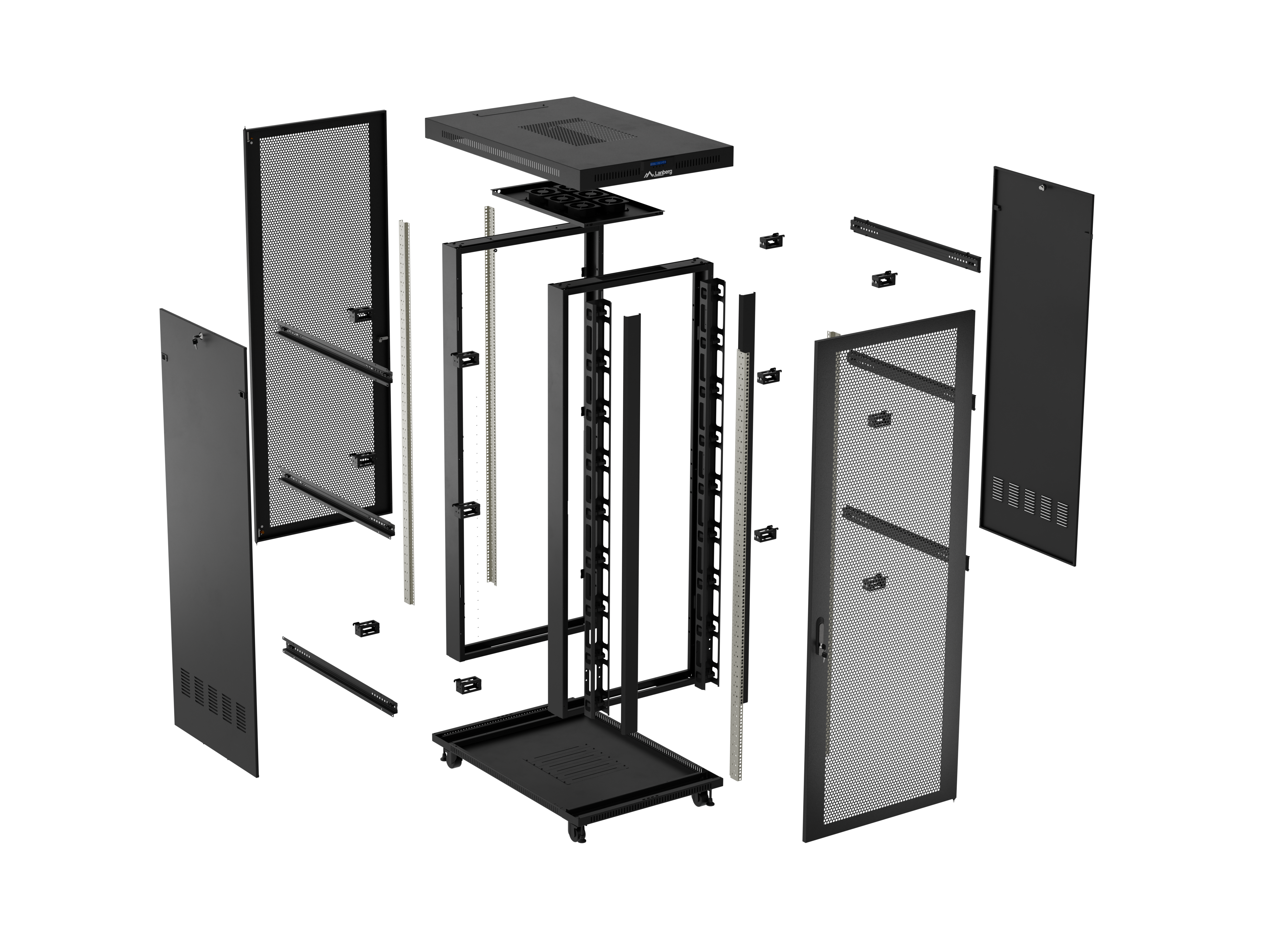 SZAFA INSTALACYJNA RACK STOJĄCA 19" 42U 800X1200 CZARNA DRZWI PERFOROWANE LCD LANBERG (FLAT PACK) V2