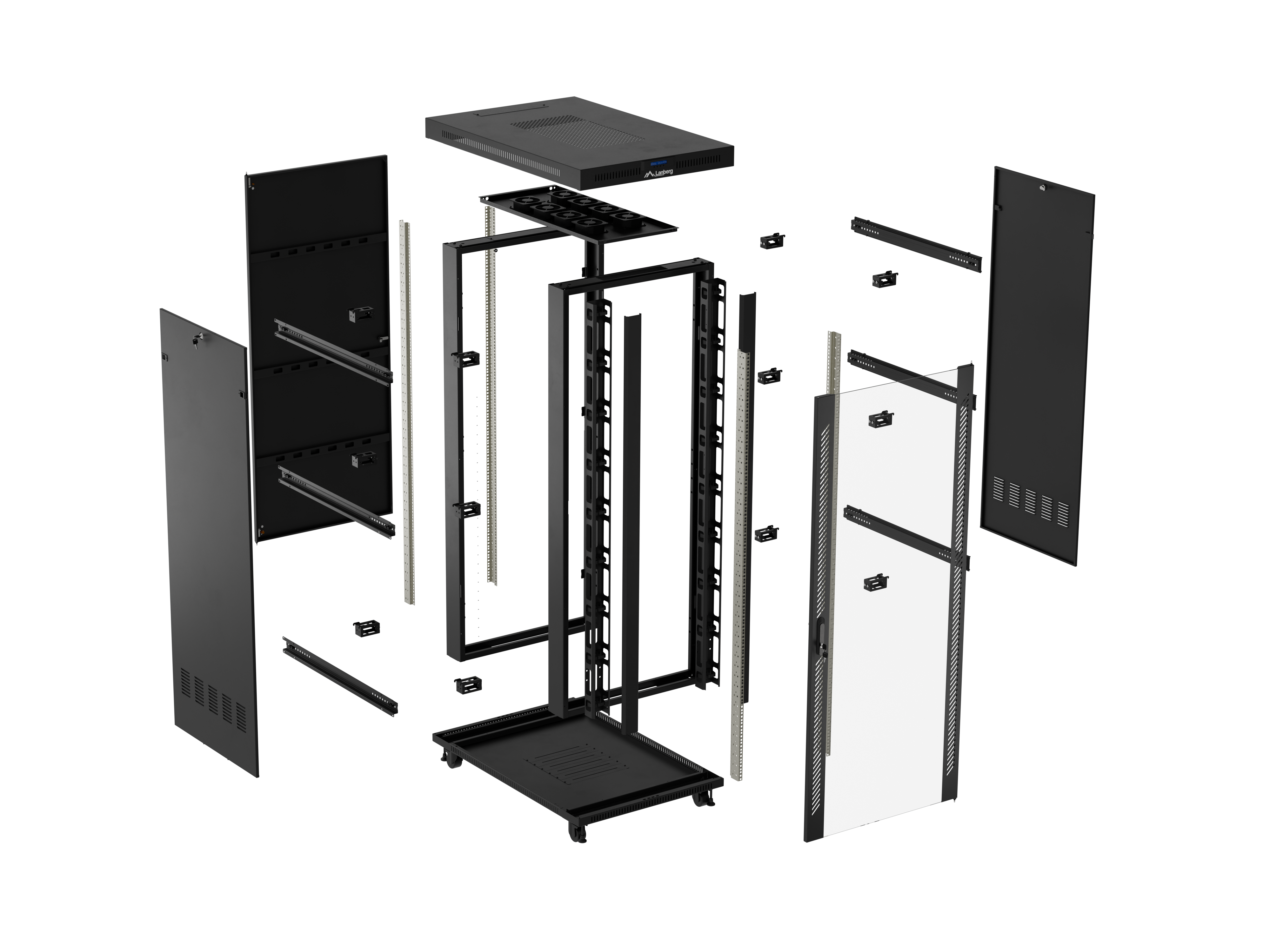 SZAFA INSTALACYJNA RACK STOJĄCA 19" 47U 800X1200 CZARNA DRZWI PRZESZKLONE LCD LANBERG (FLAT PACK) V2