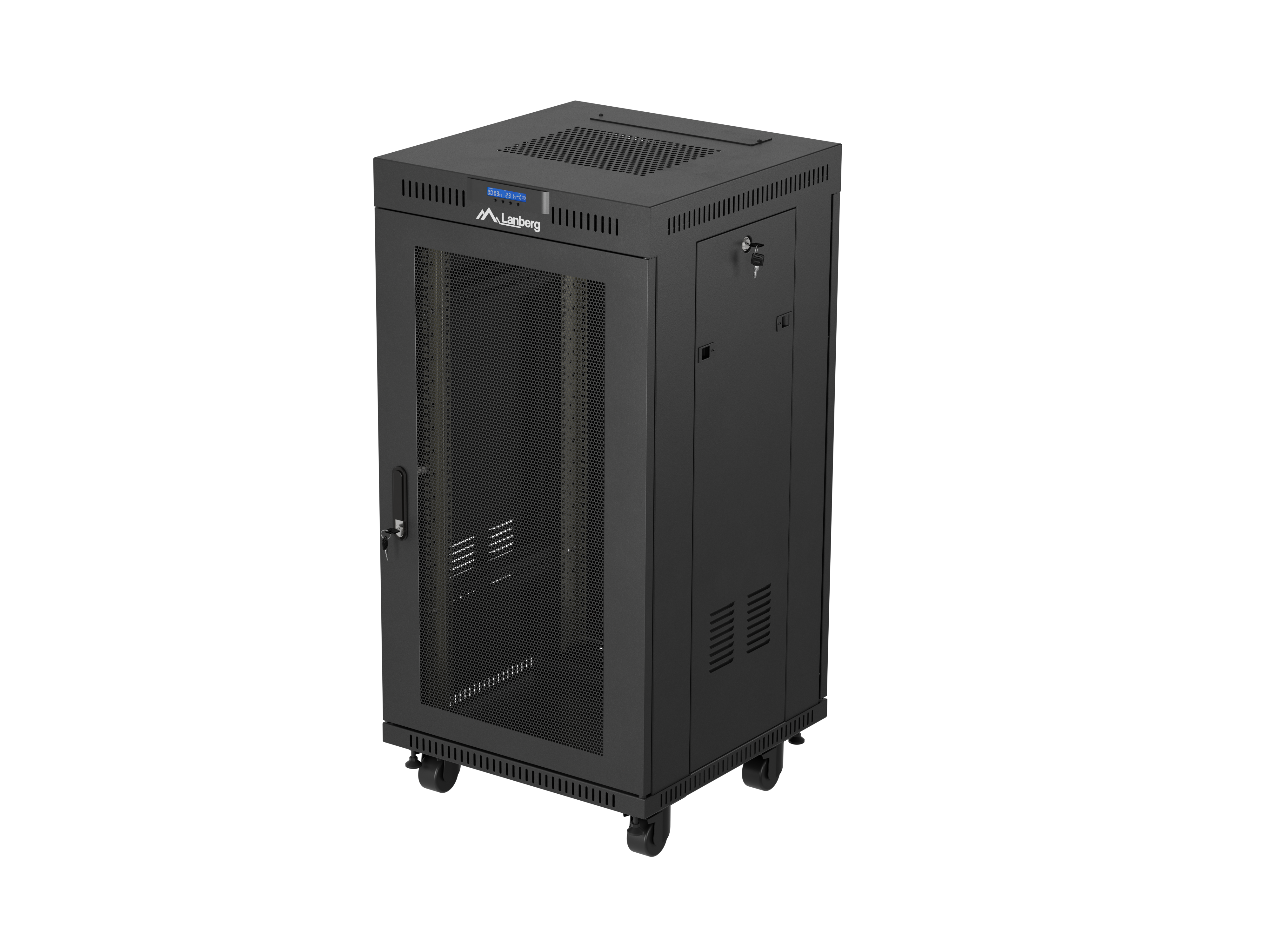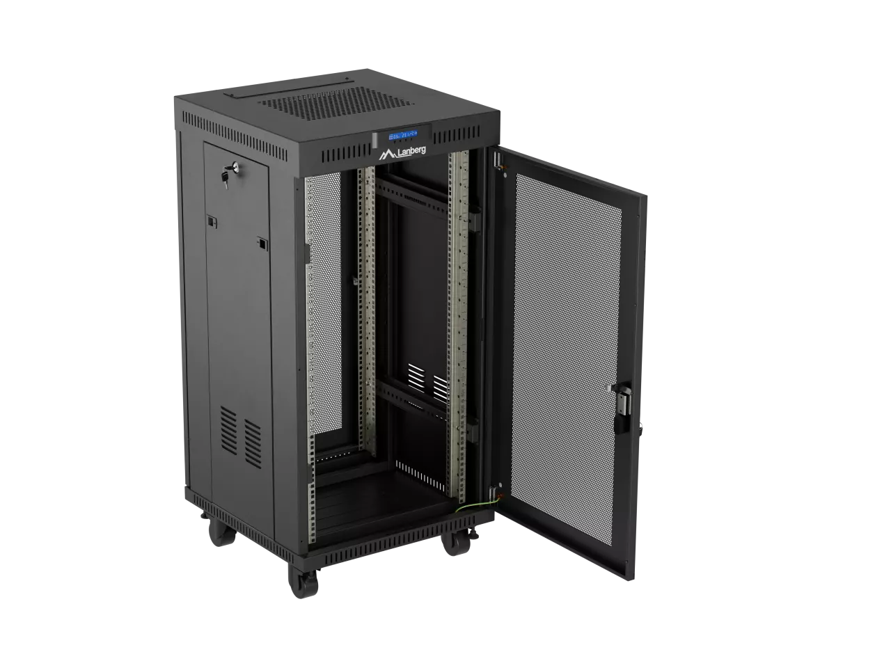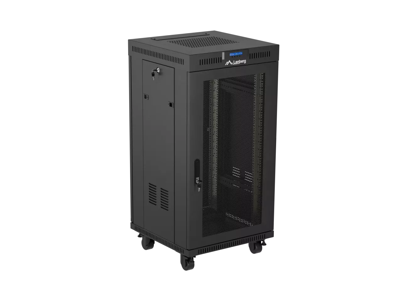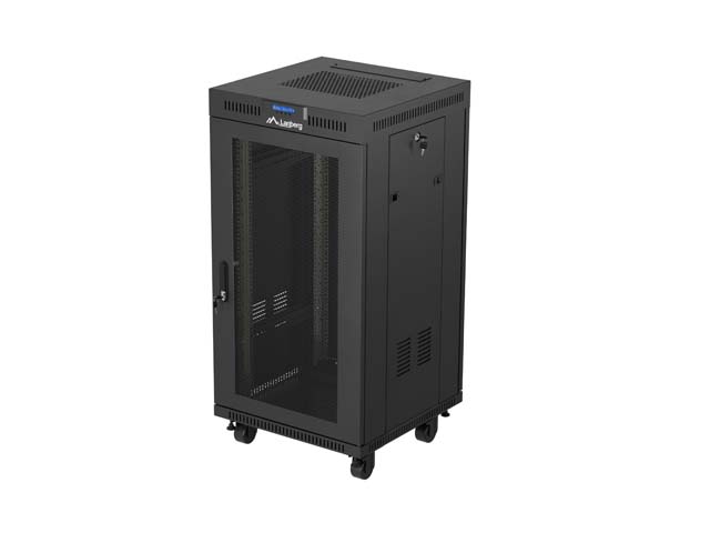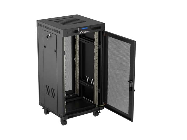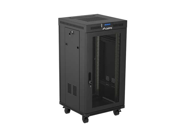 SZAFA INSTALACYJNA RACK STOJĄCA 19" 22U 600X600 CZARNA DRZWI PERFOROWANE LCD LANBERG (FLAT PACK) V2