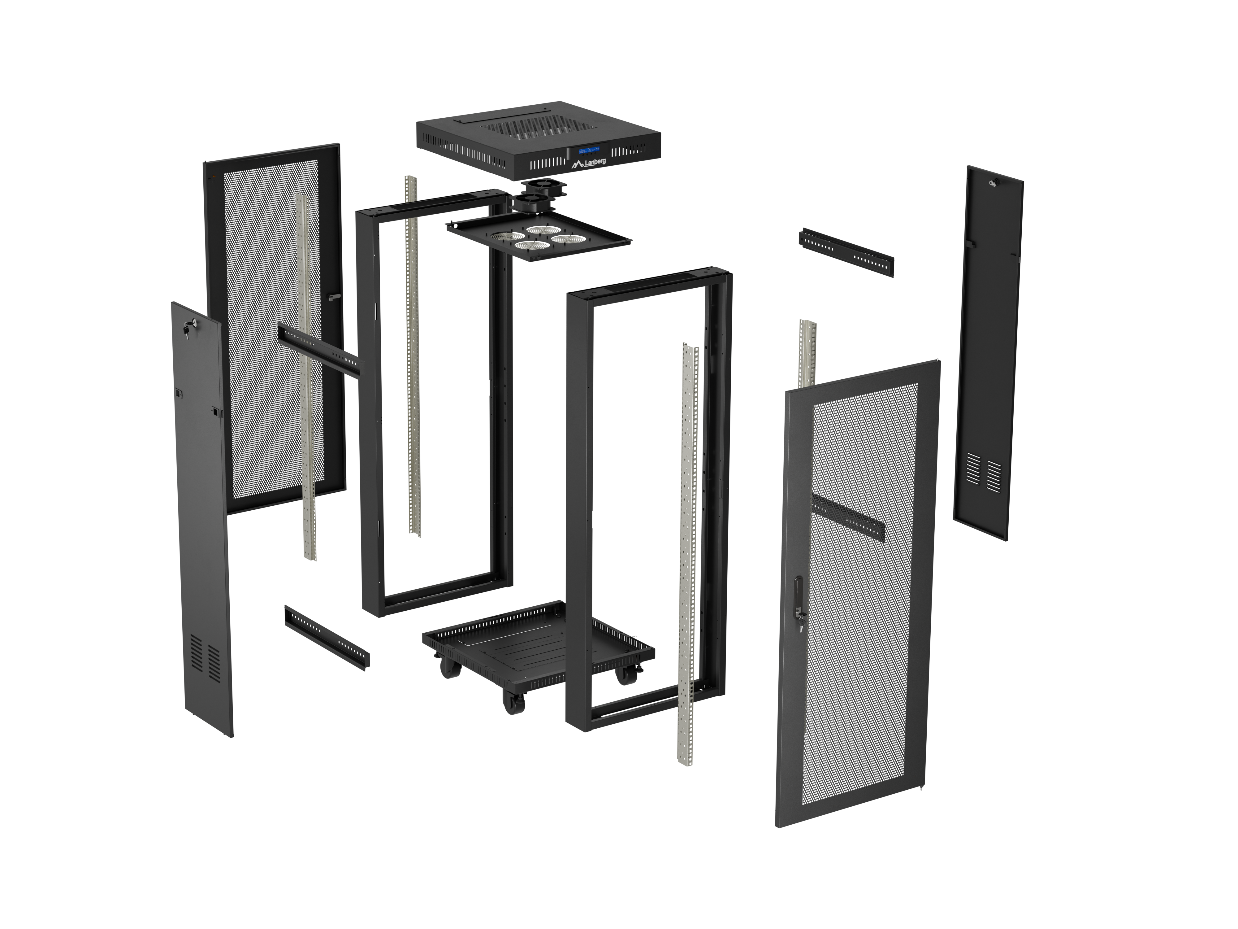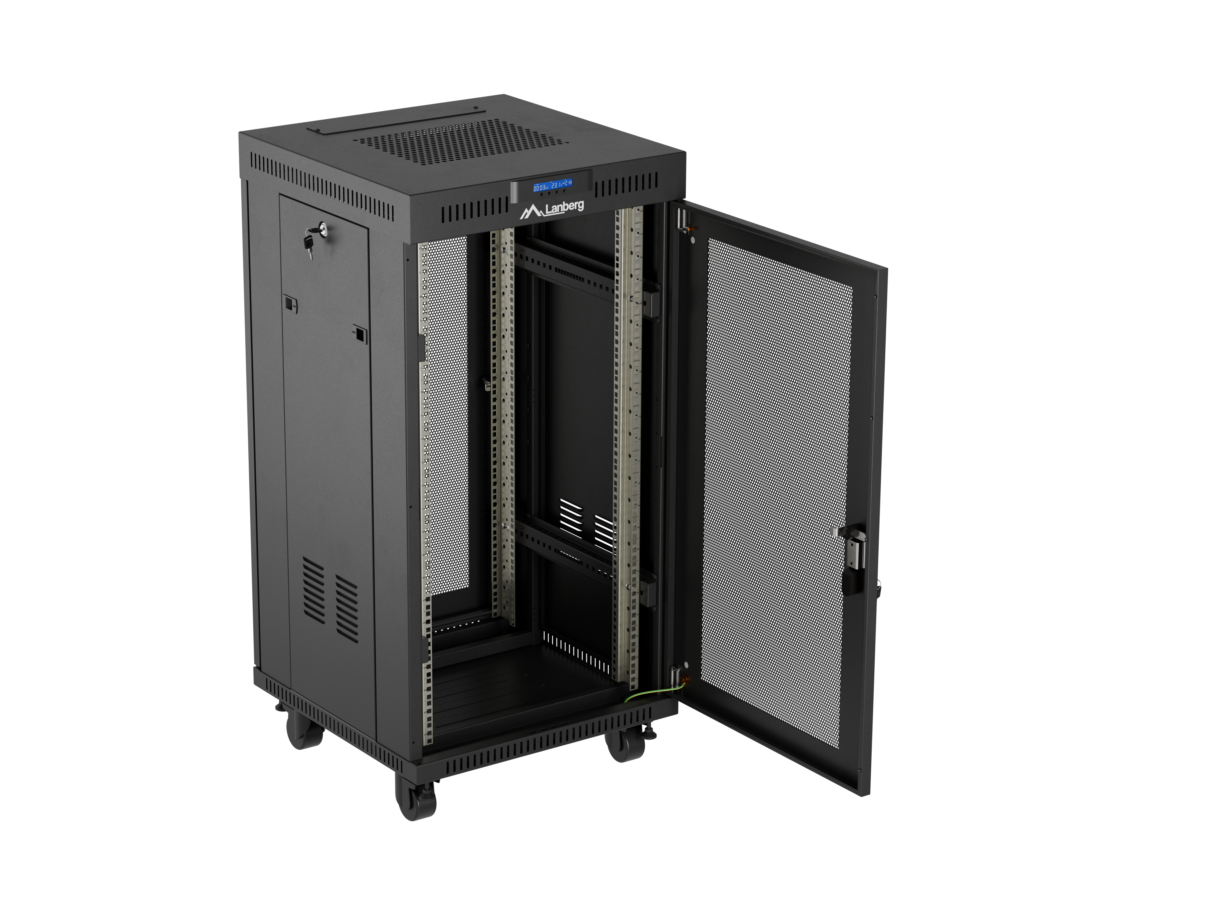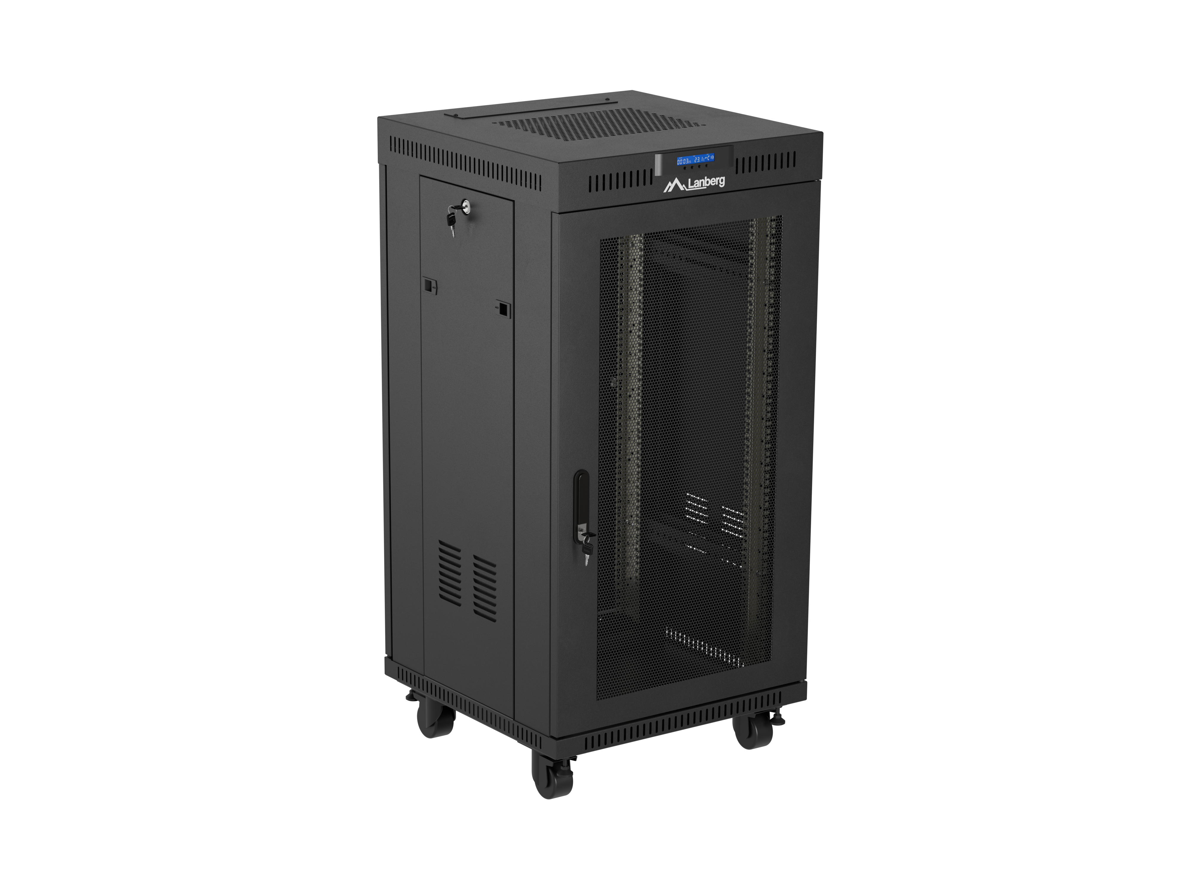 SZAFA INSTALACYJNA RACK STOJĄCA 19" 22U 600X600 CZARNA DRZWI PERFOROWANE LCD LANBERG (FLAT PACK) V2
