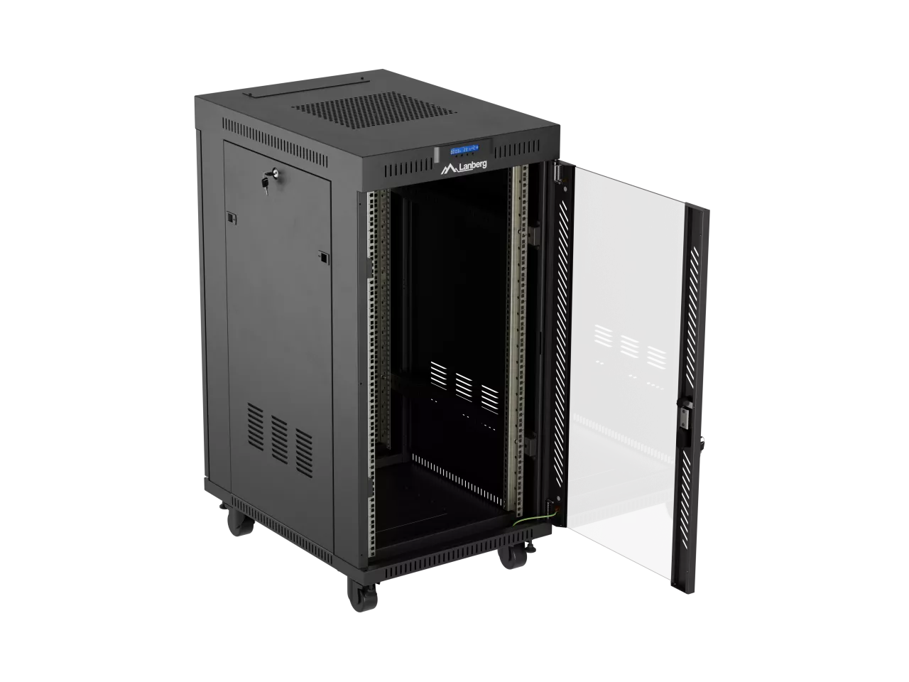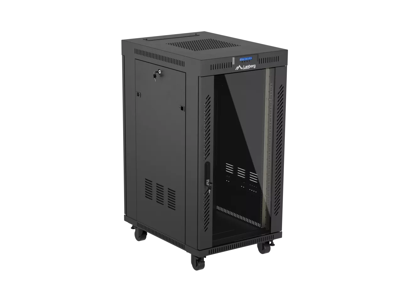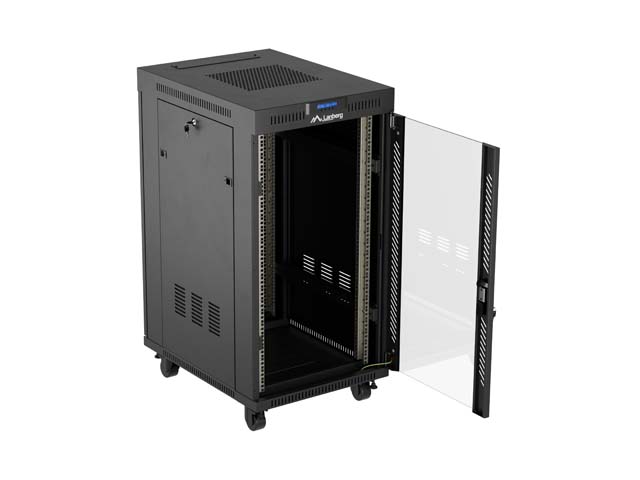 SZAFA INSTALACYJNA RACK STOJĄCA 19" 22U 600X800 CZARNA DRZWI PRZESZKLONE LCD LANBERG (FLAT PACK) V2