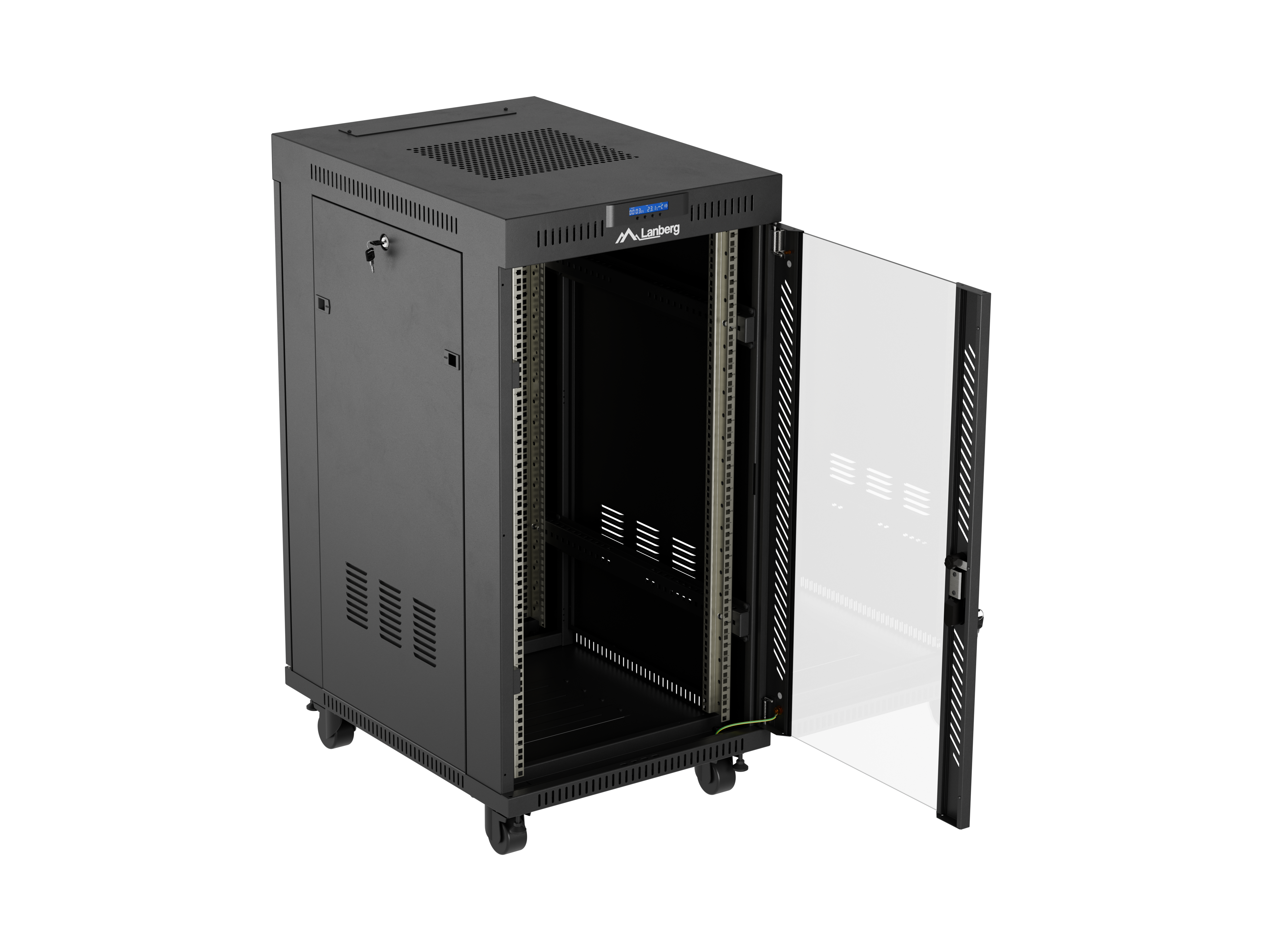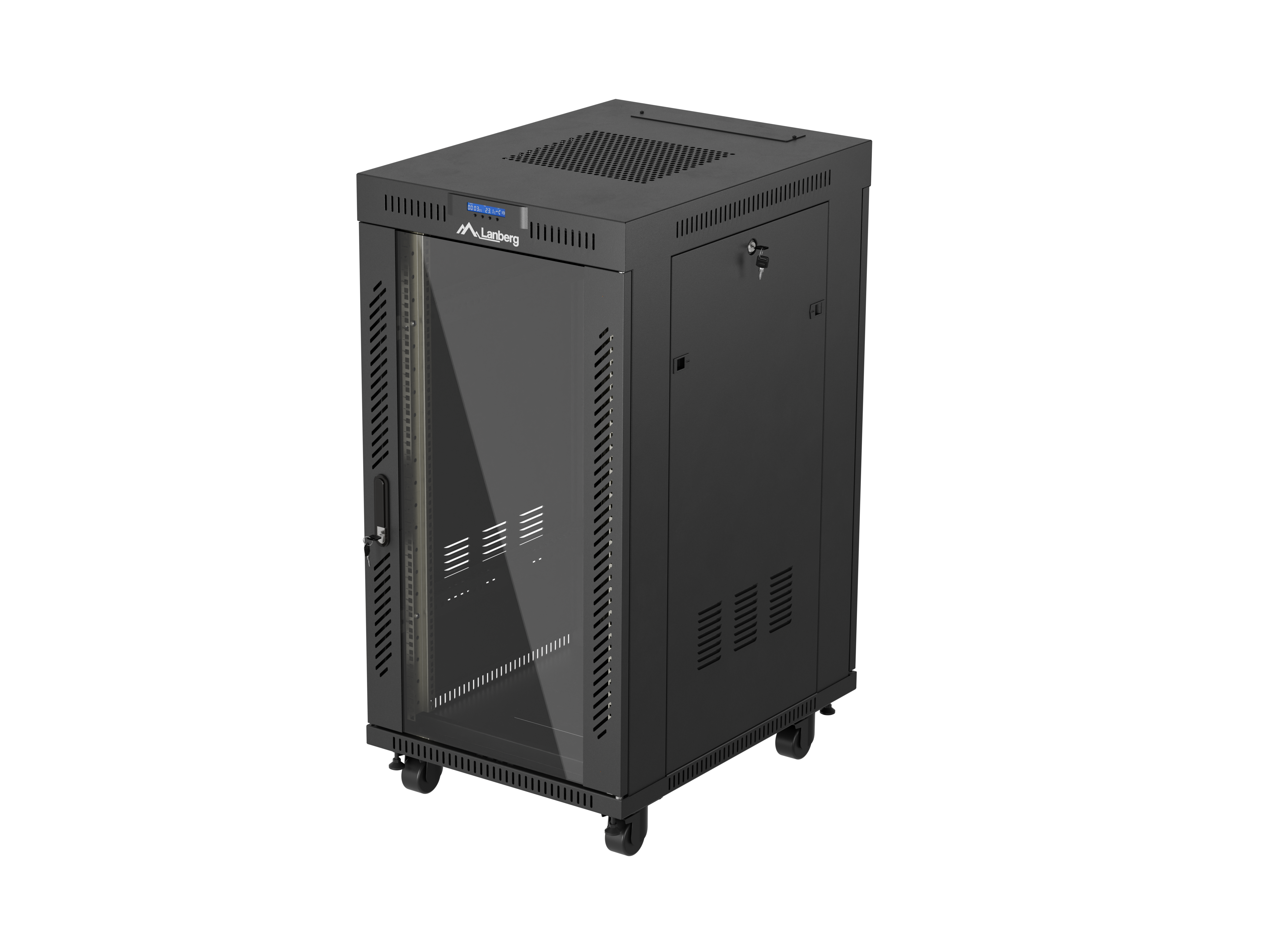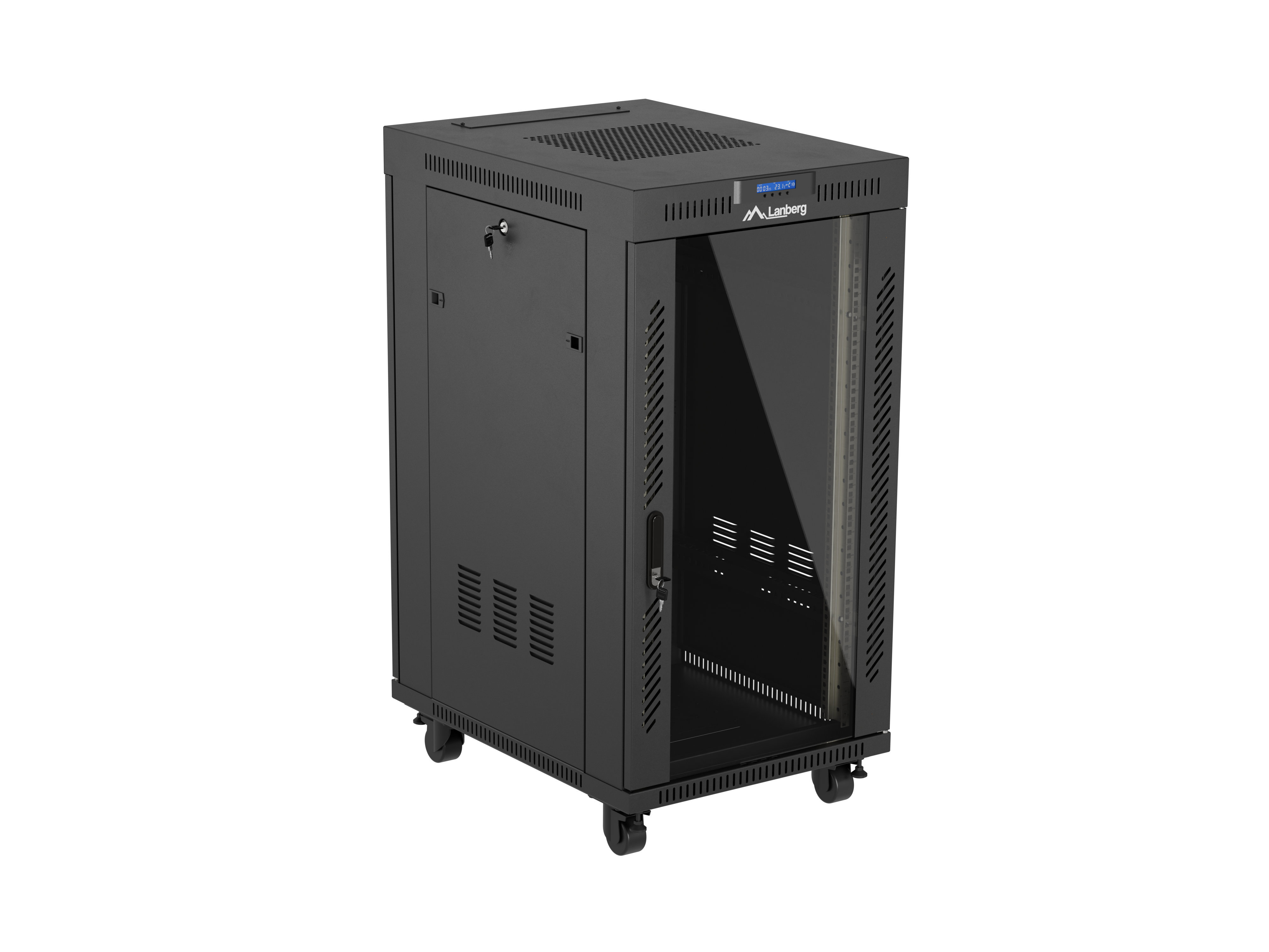 SZAFA INSTALACYJNA RACK STOJĄCA 19" 22U 600X800 CZARNA DRZWI PRZESZKLONE LCD LANBERG (FLAT PACK) V2