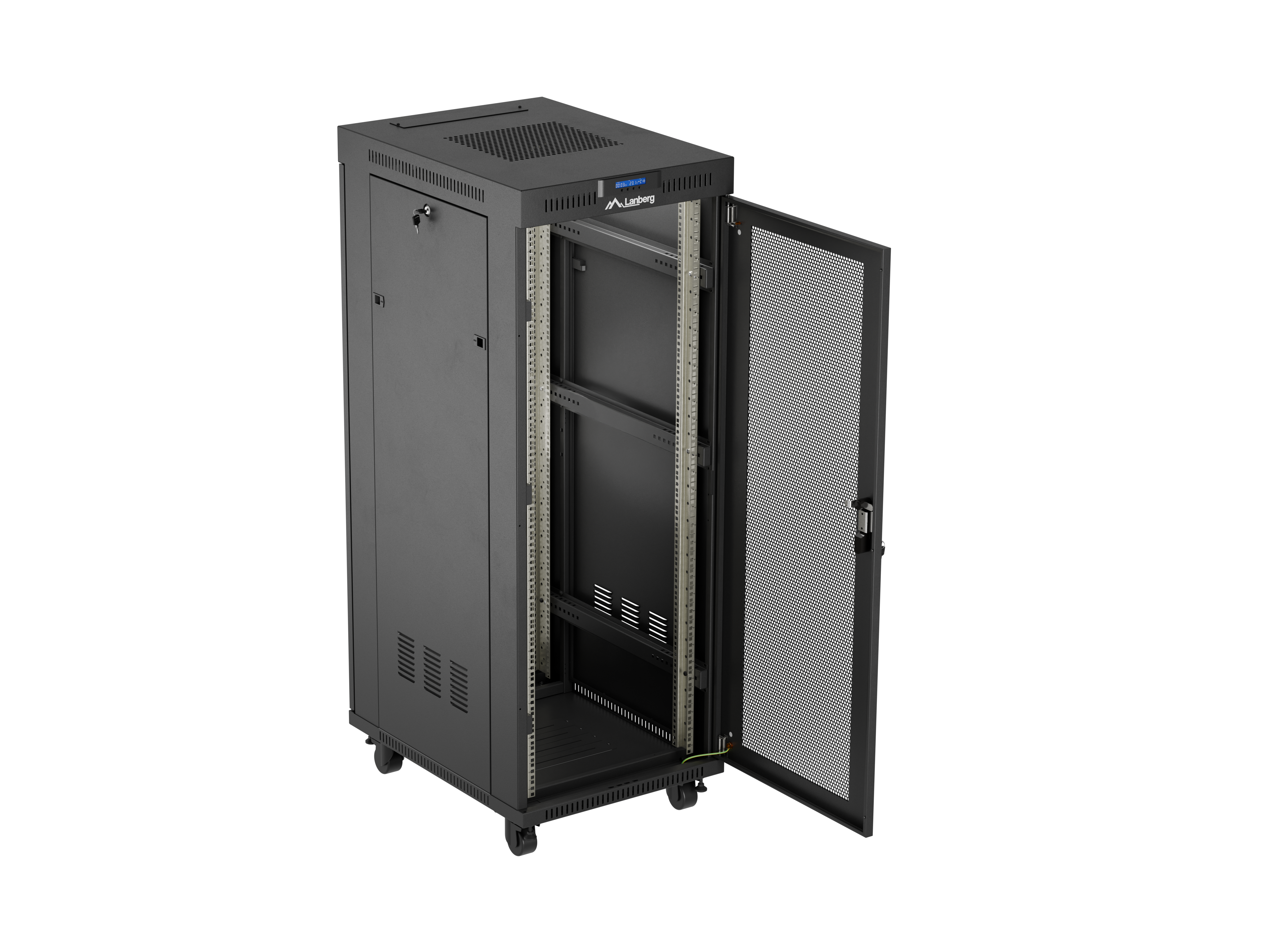 SZAFA INSTALACYJNA RACK STOJĄCA 19" 32U 600X800 CZARNA DRZWI PERFOROWANE LCD LANBERG (FLAT PACK)