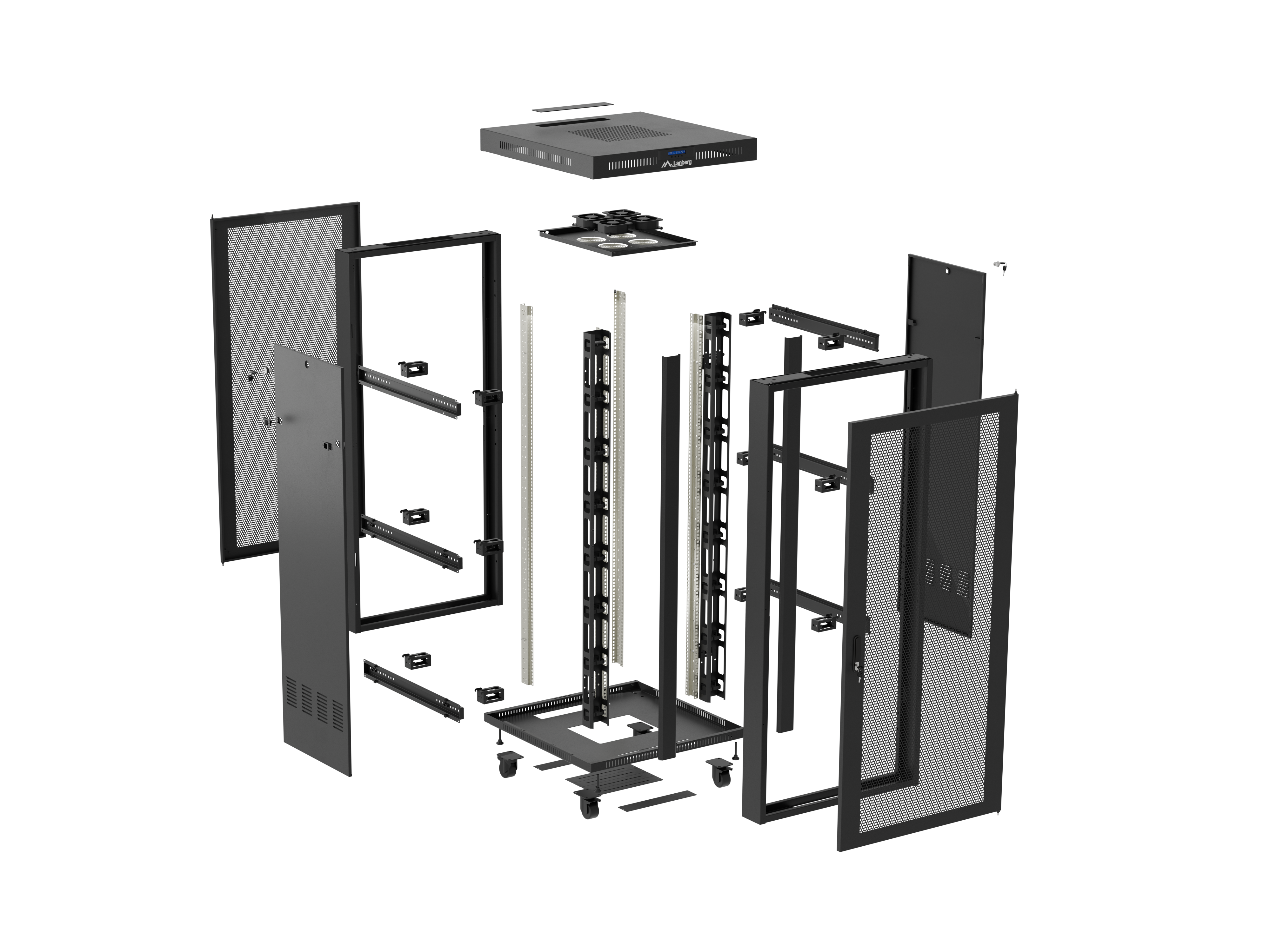 SZAFA INSTALACYJNA RACK STOJĄCA 19" 47U 800X800 CZARNA DRZWI PERFOROWANE LCD LANBERG (FLAT PACK)