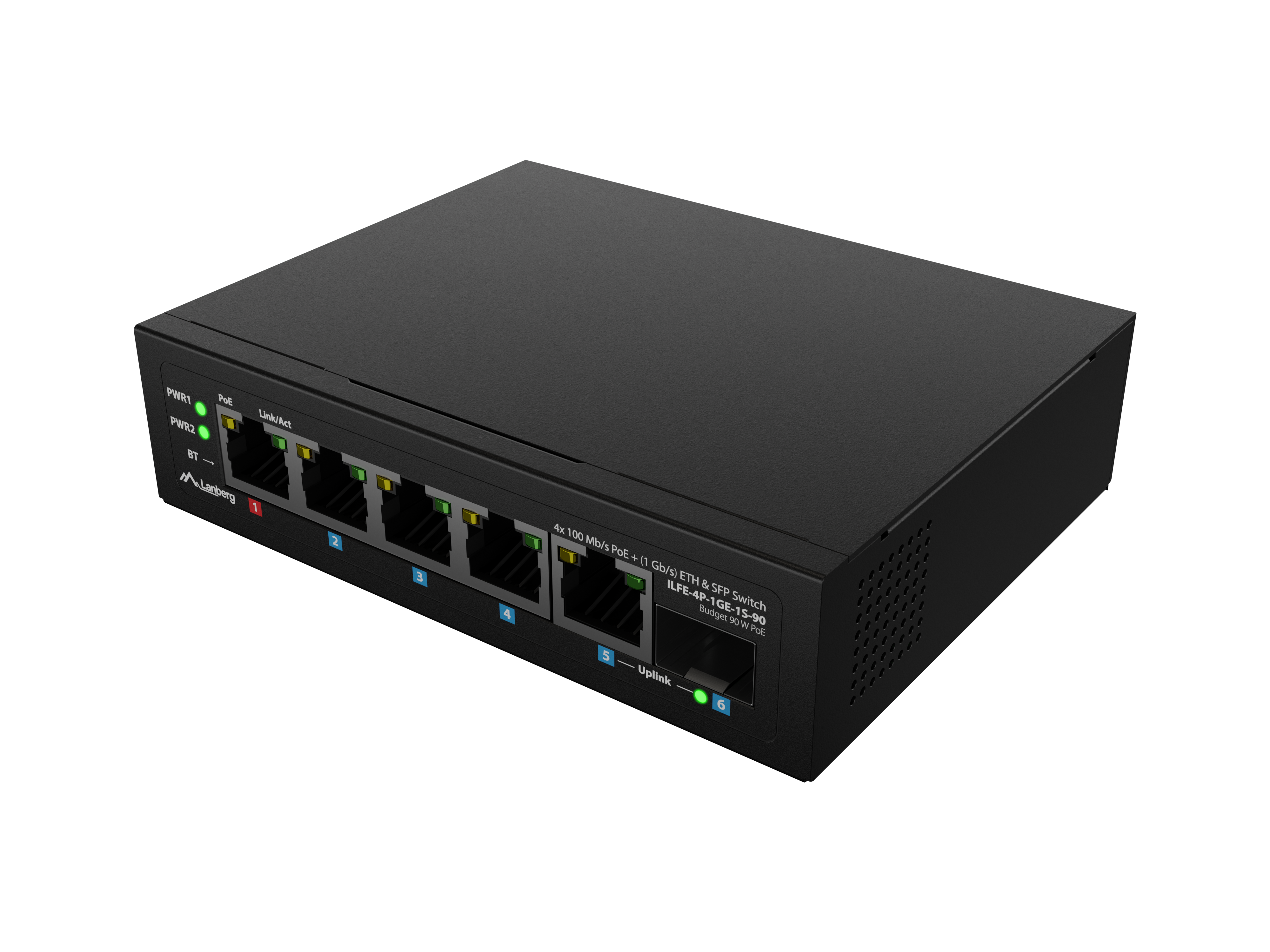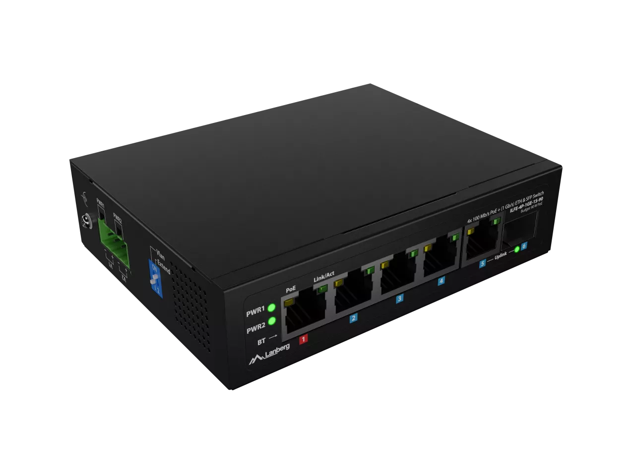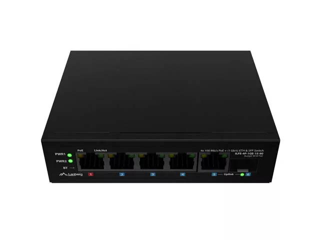 SWITCH LANBERG ILFE-4P-1GE-1S-90 LIGHT INDUSTRIAL POE 1XBT 3XAT SFP+ETH DIN FAST ETHERNET