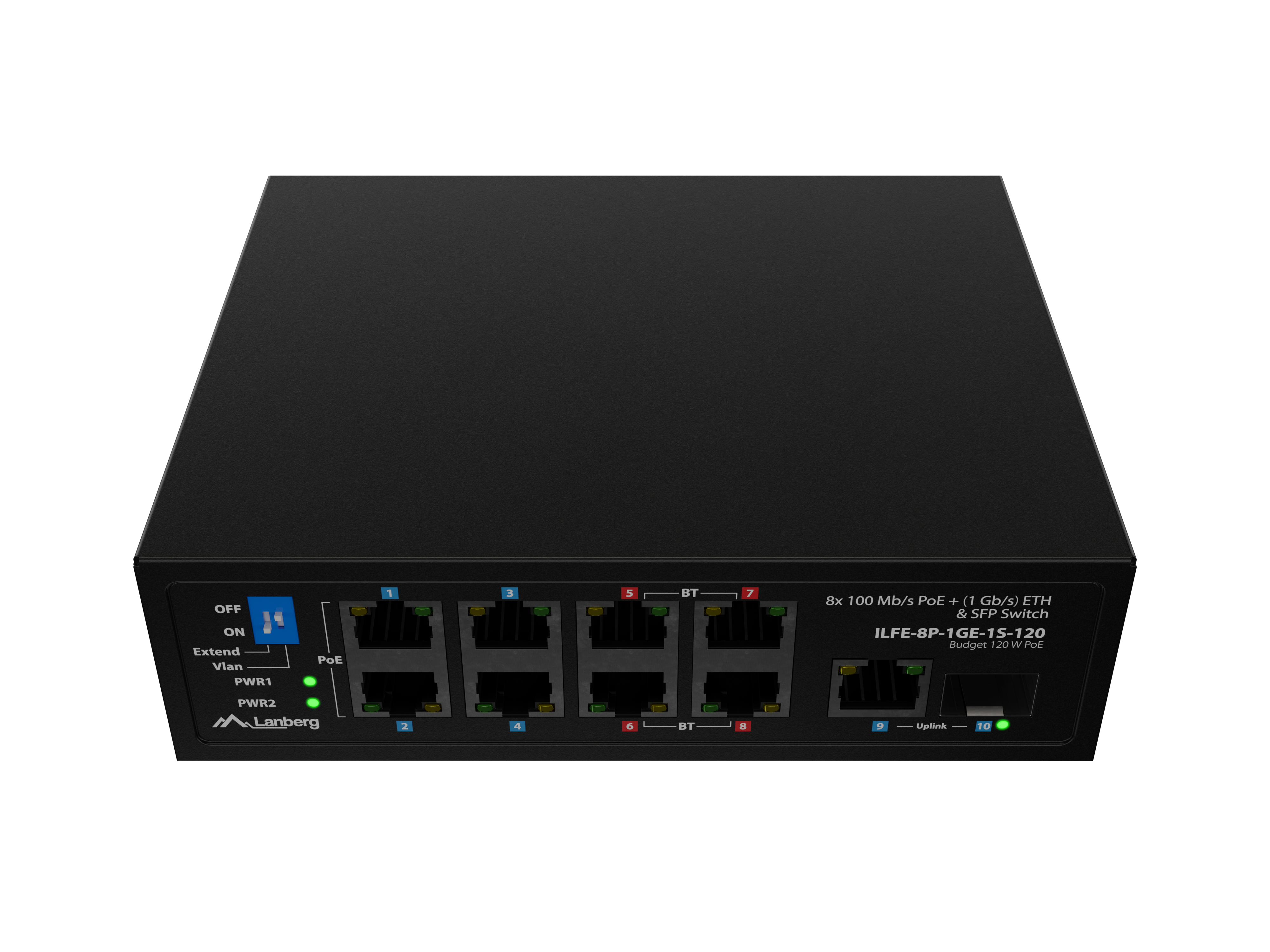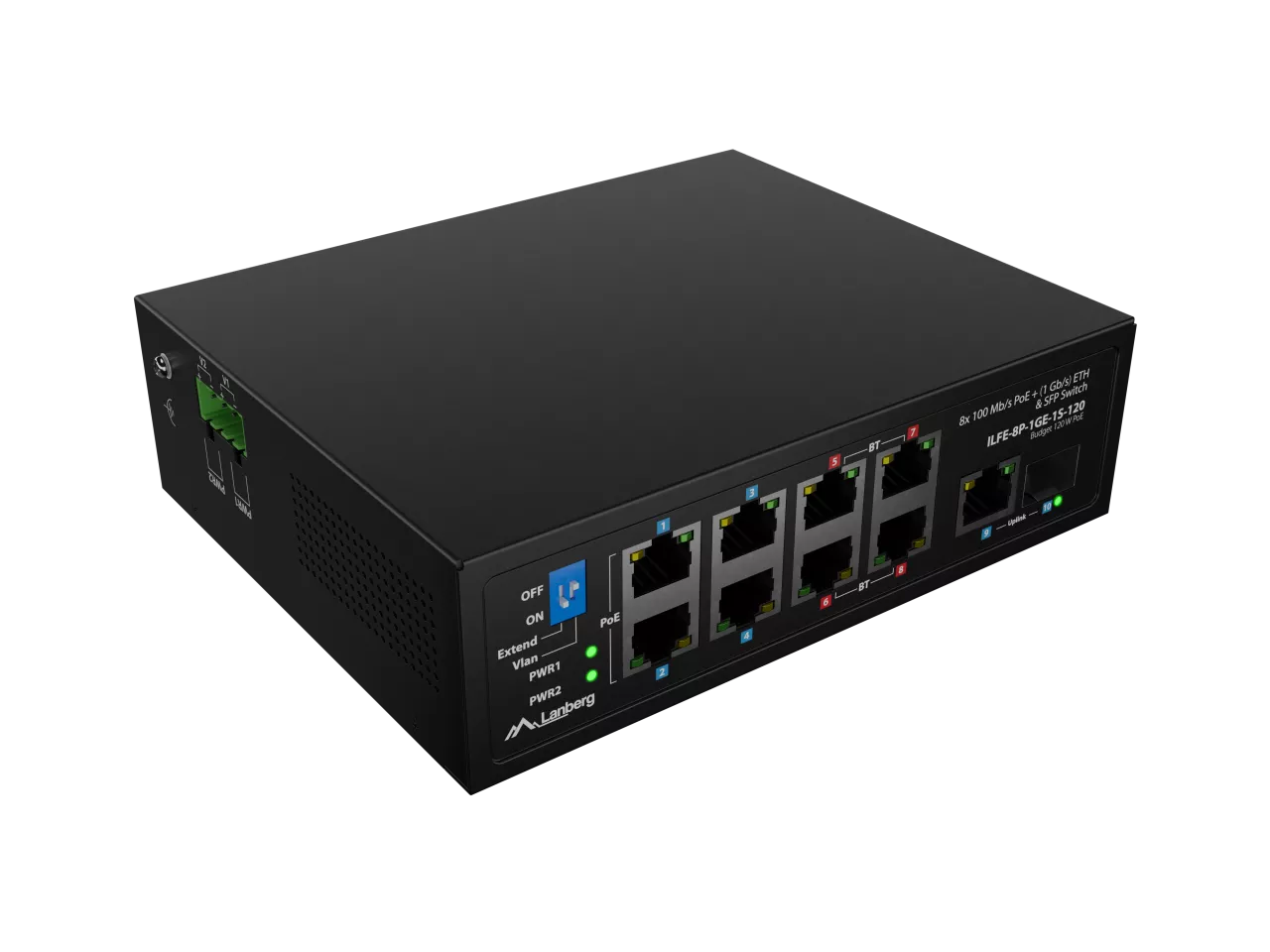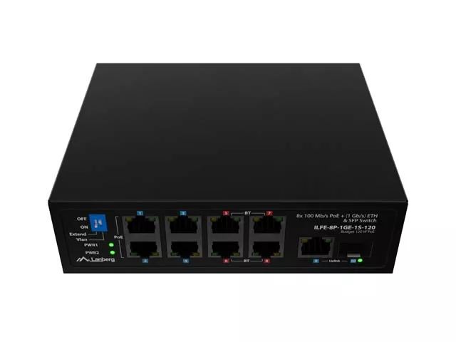 SWITCH LANBERG ILFE-8P-1GE-1S-120 LIGHT INDUSTRIAL POE 4XBT 4XAT SFP+ETH DIN FAST ETHERNET