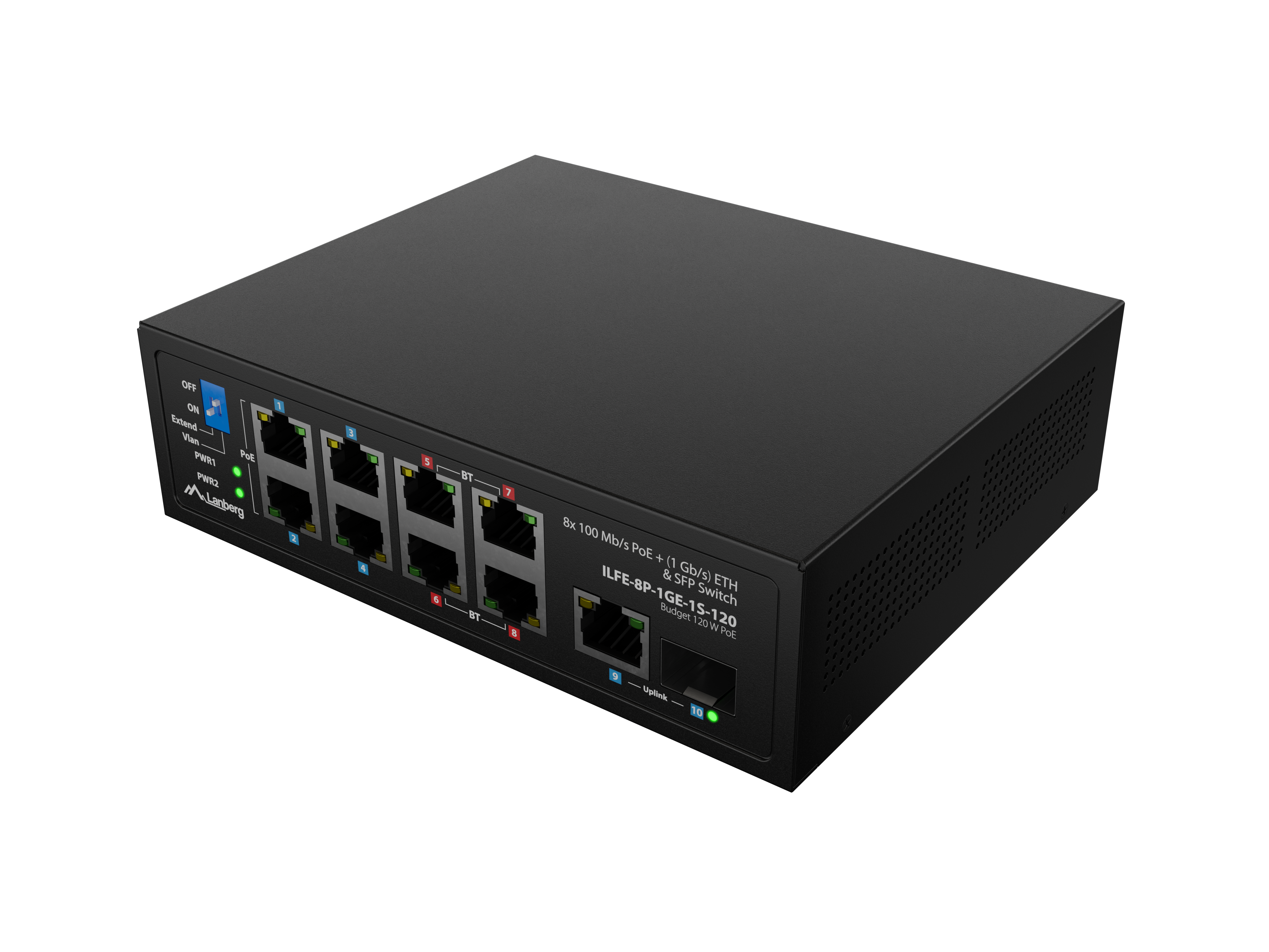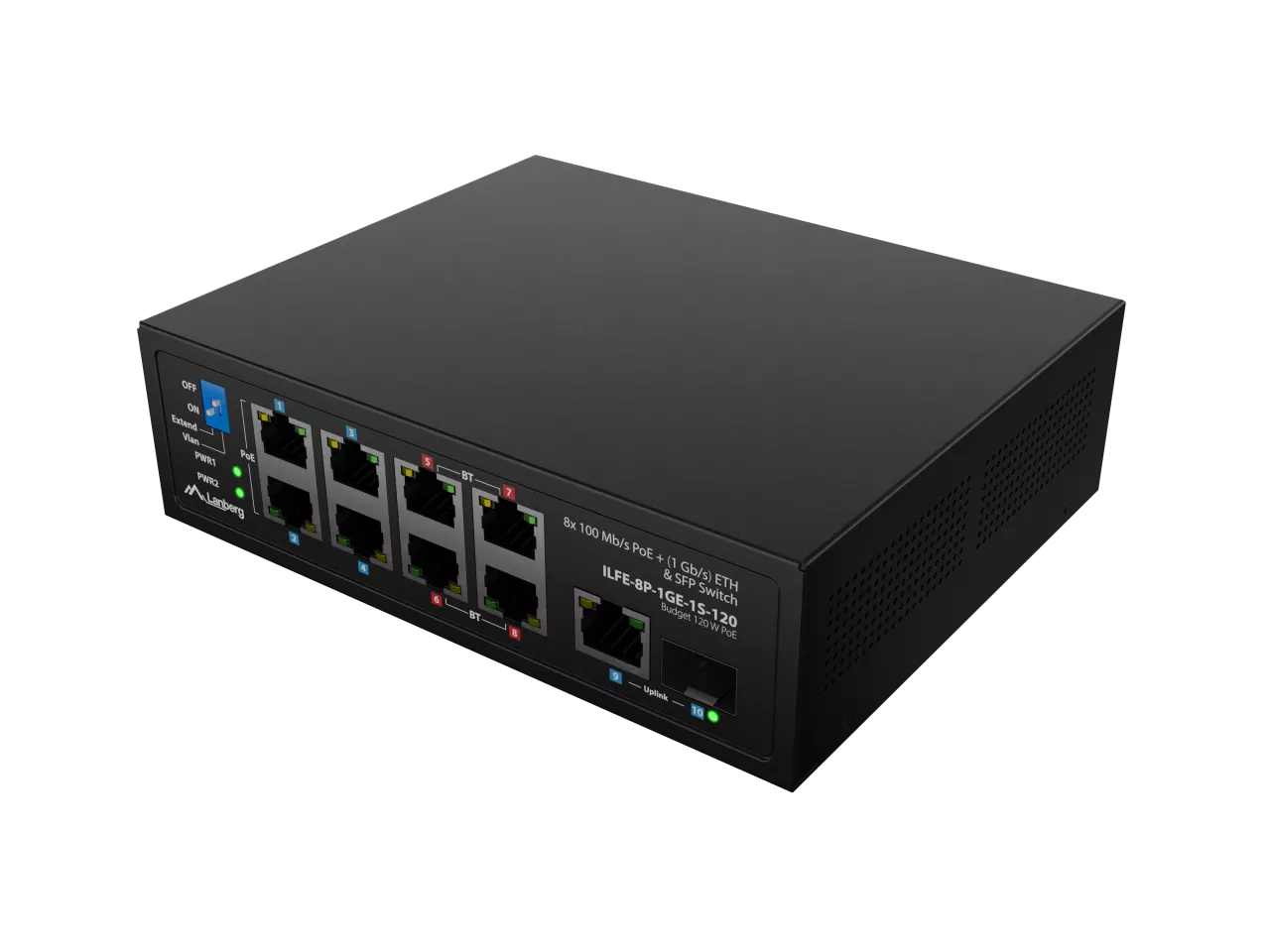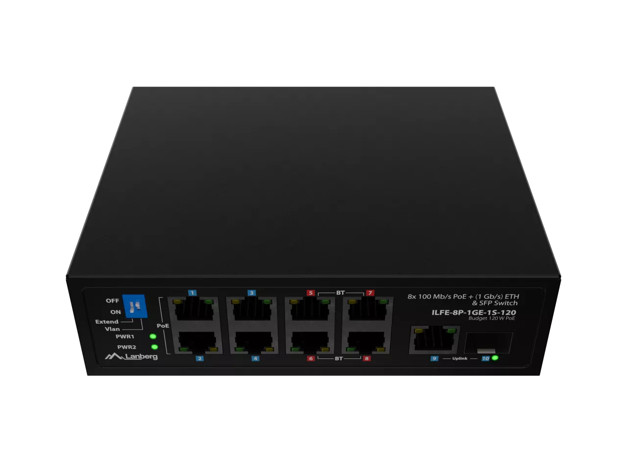 SWITCH LANBERG ILFE-8P-1GE-1S-120 LIGHT INDUSTRIAL POE 4XBT 4XAT SFP+ETH DIN FAST ETHERNET