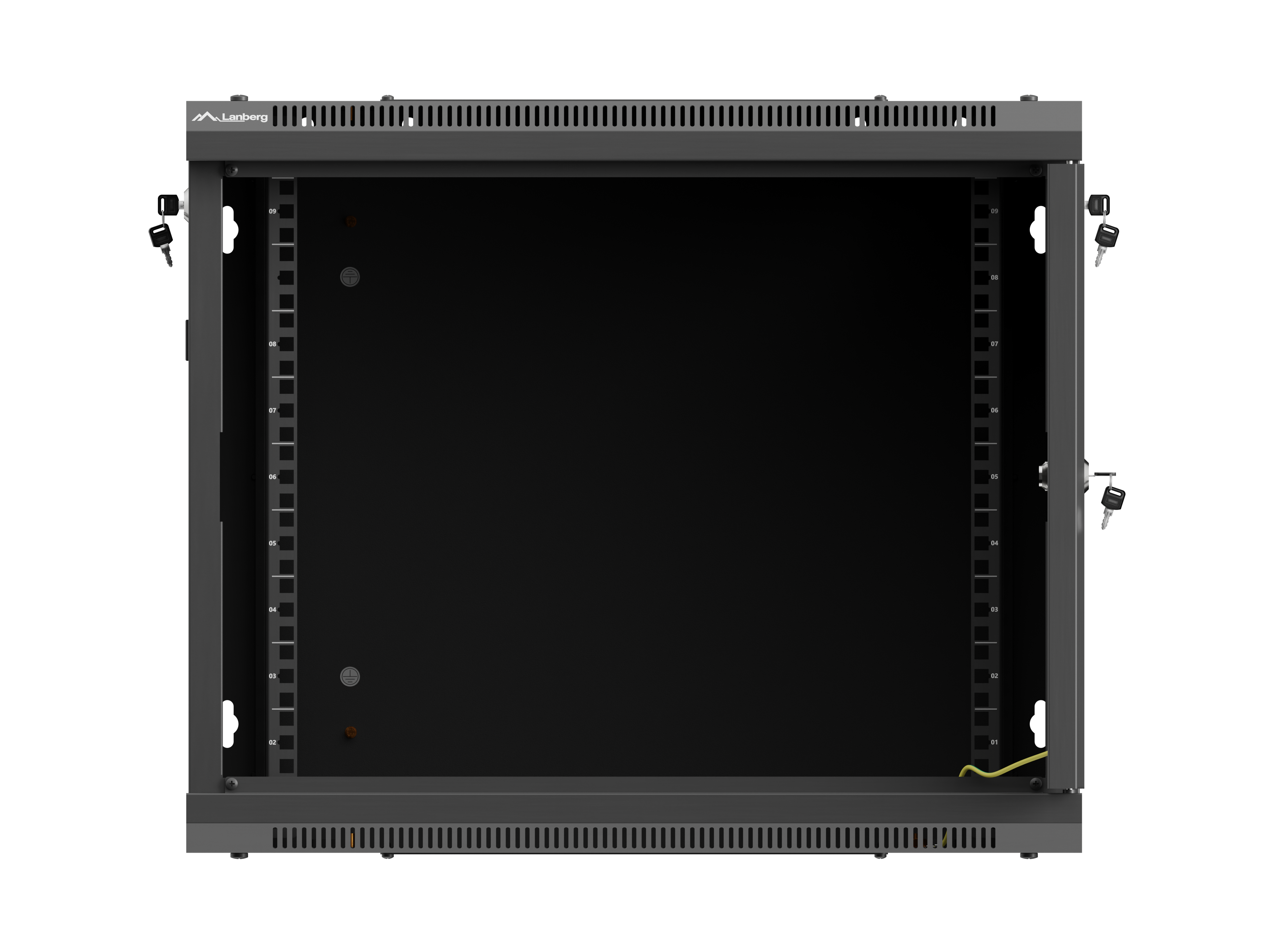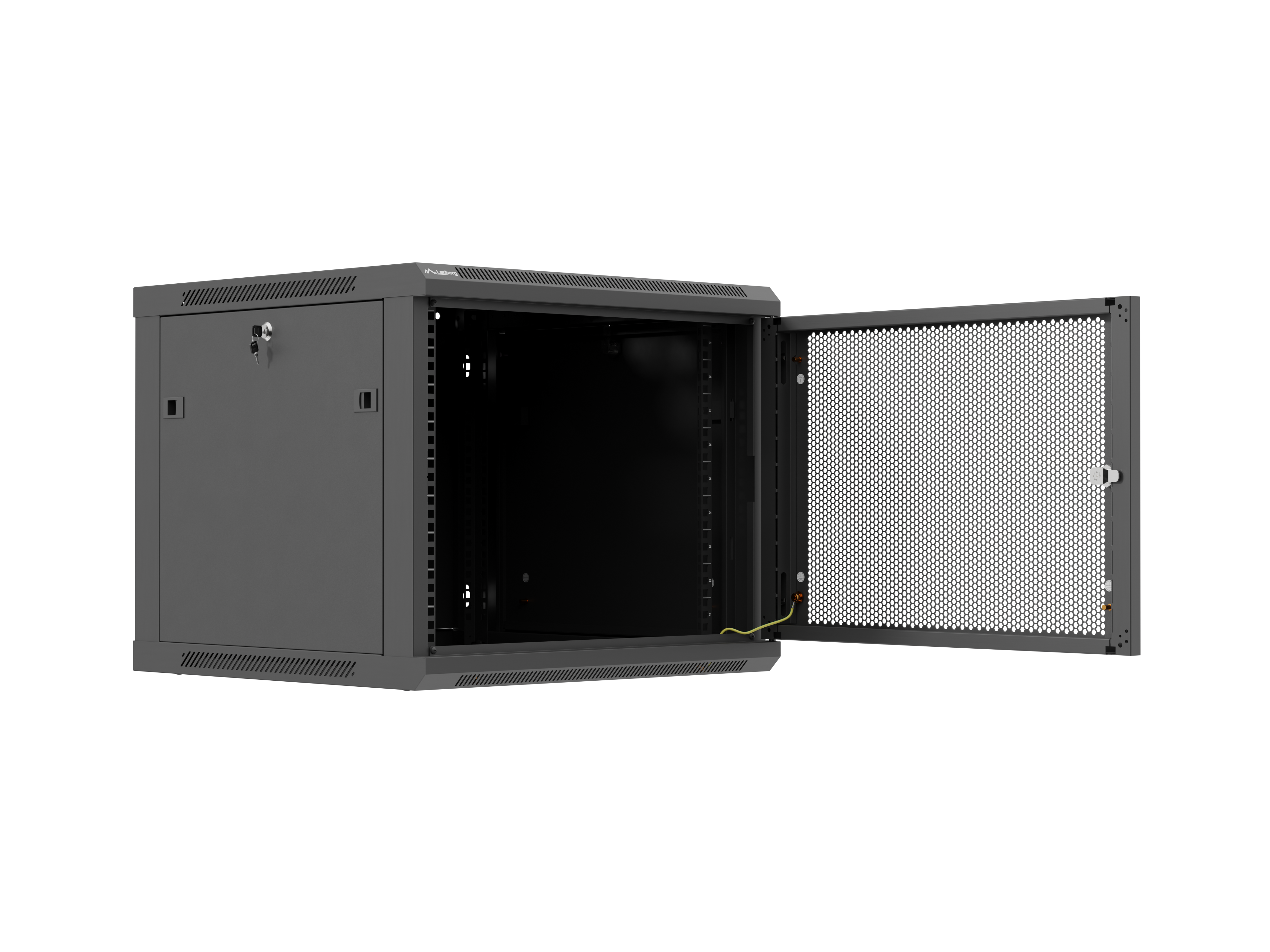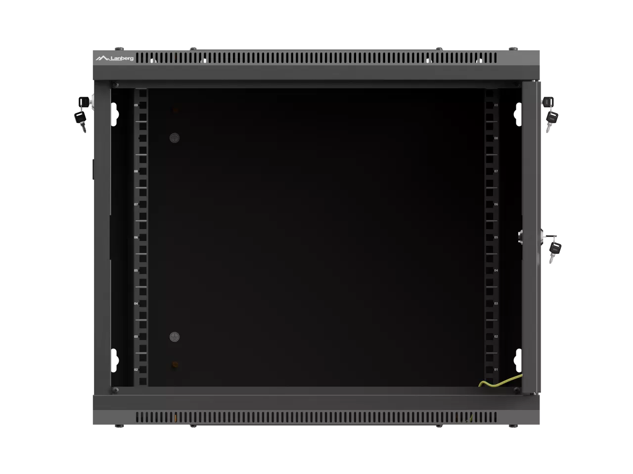 SZAFA INSTALACYJNA RACK WISZĄCA 19" 9U 600X600 CZARNA DRZWI PERFOROWANE LANBERG (FLAT PACK)