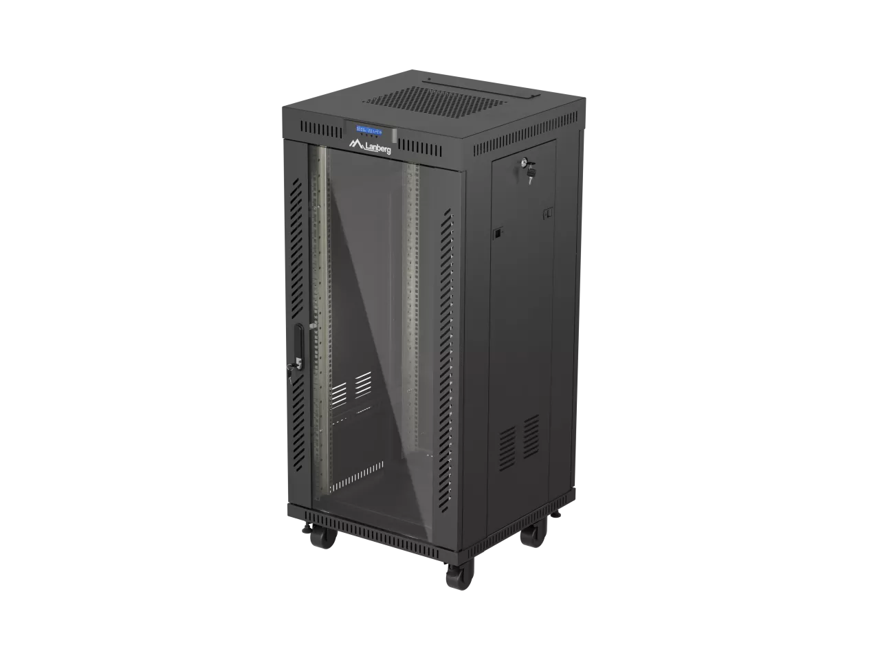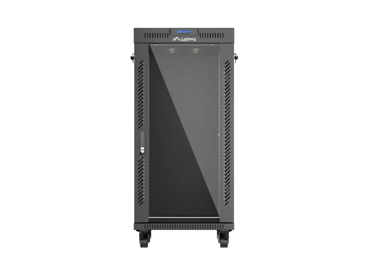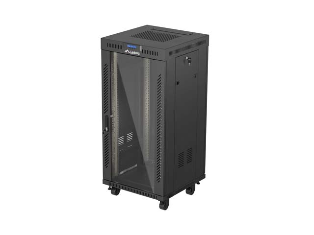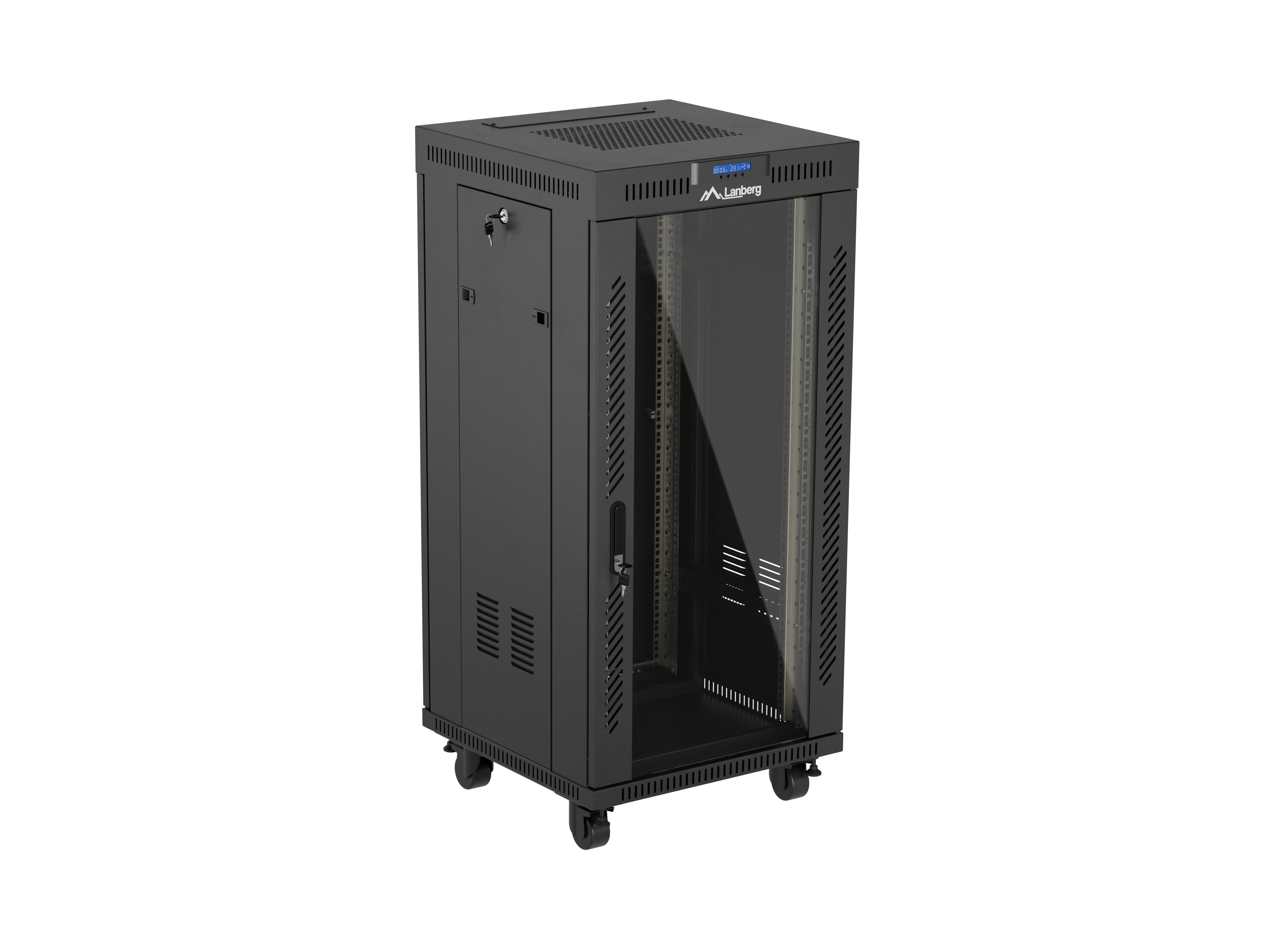 SZAFA INSTALACYJNA RACK STOJĄCA 19" 24U 600X600 CZARNA DRZWI PRZESZKLONE LCD LANBERG (FLAT PACK) V2