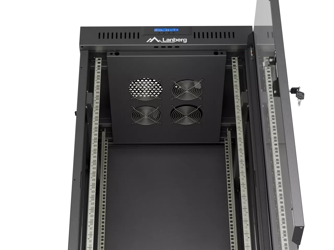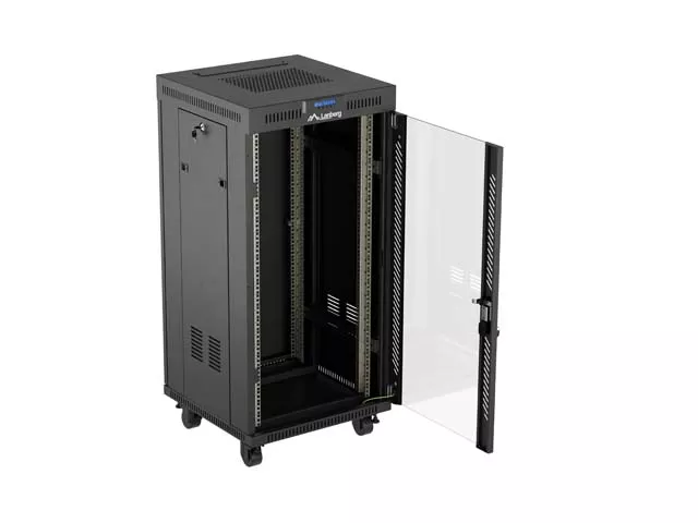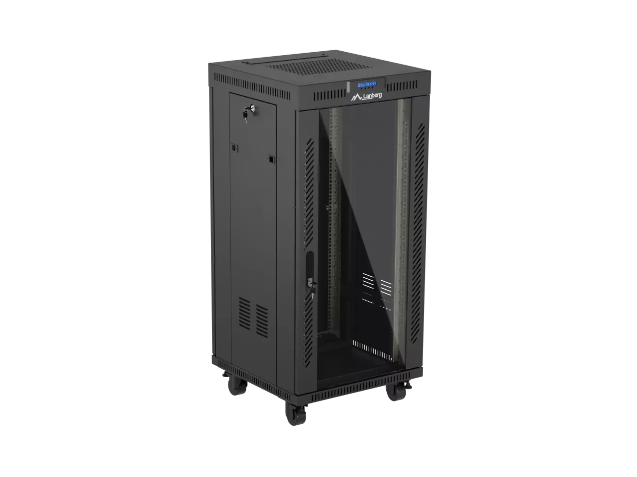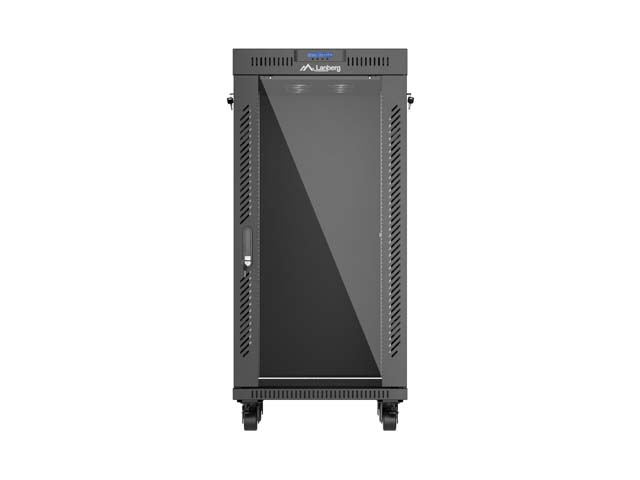 SZAFA INSTALACYJNA RACK STOJĄCA 19" 24U 600X600 CZARNA DRZWI PRZESZKLONE LCD LANBERG (FLAT PACK) V2