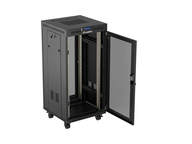 SZAFA INSTALACYJNA RACK STOJĄCA 19" 24U 600X600 CZARNA DRZWI PERFOROWANE LCD LANBERG (FLAT PACK) V2