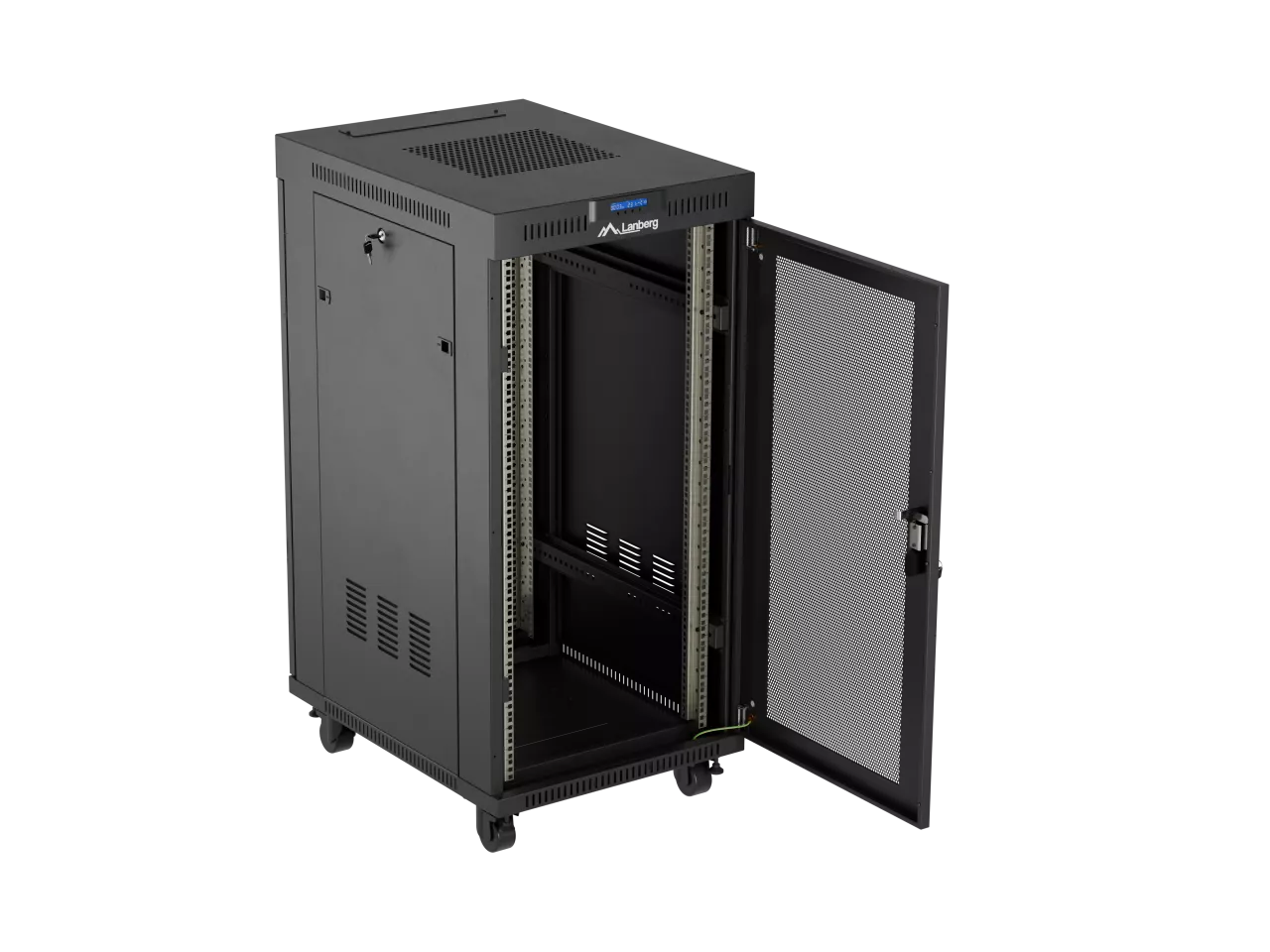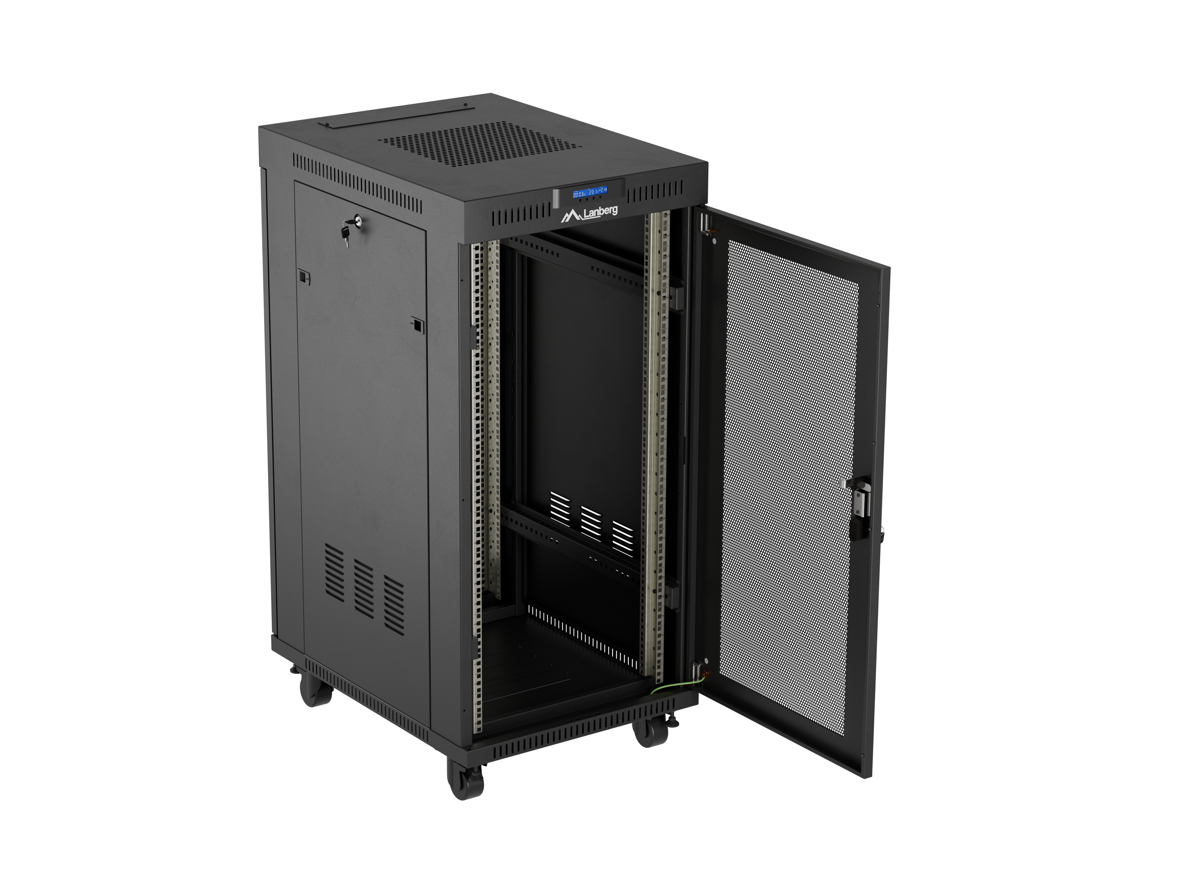SZAFA INSTALACYJNA RACK STOJĄCA 19" 24U 600X800 CZARNA DRZWI PERFOROWANE LCD LANBERG (FLAT PACK) V2