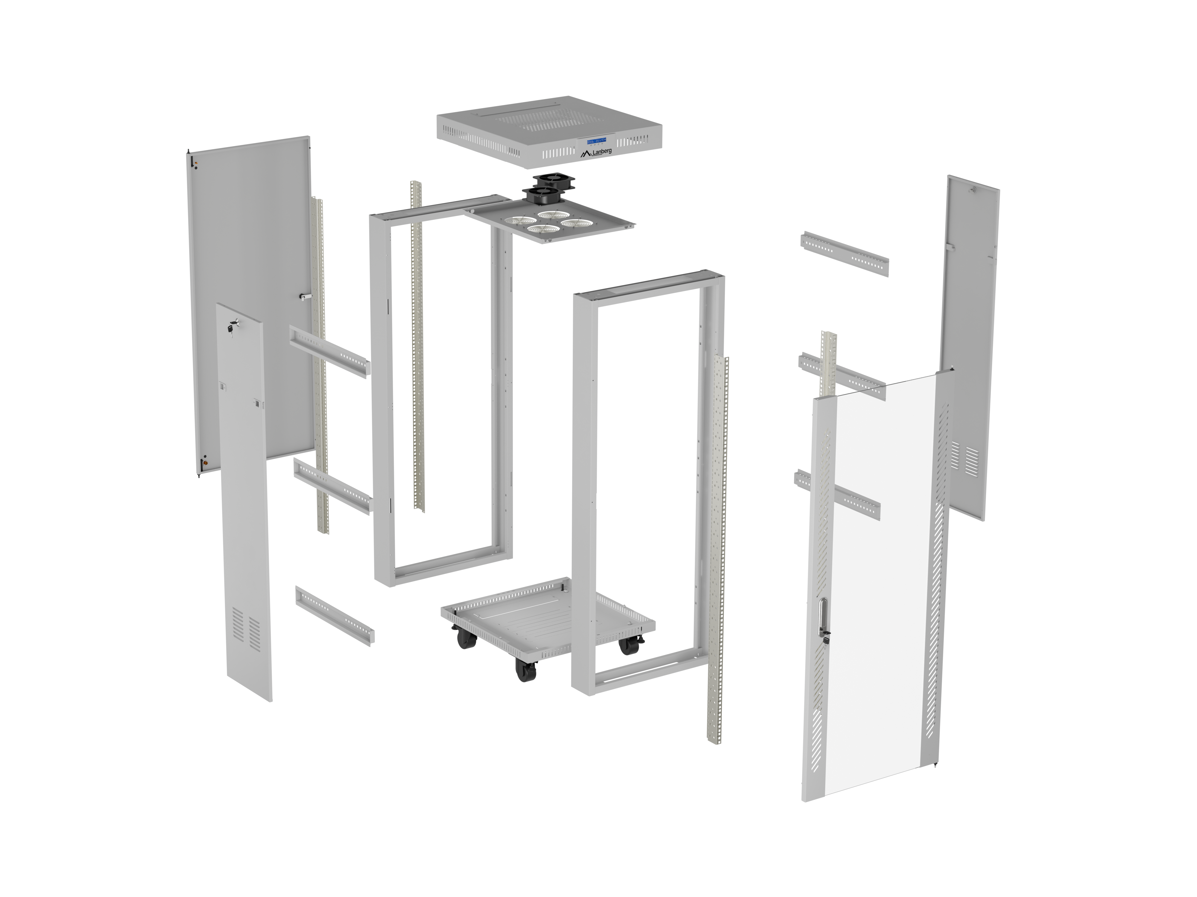 SZAFA INSTALACYJNA RACK STOJĄCA 19" 42U 600X600 SZARA DRZWI PRZESZKLONE LCD LANBERG (FLAT PACK) V2